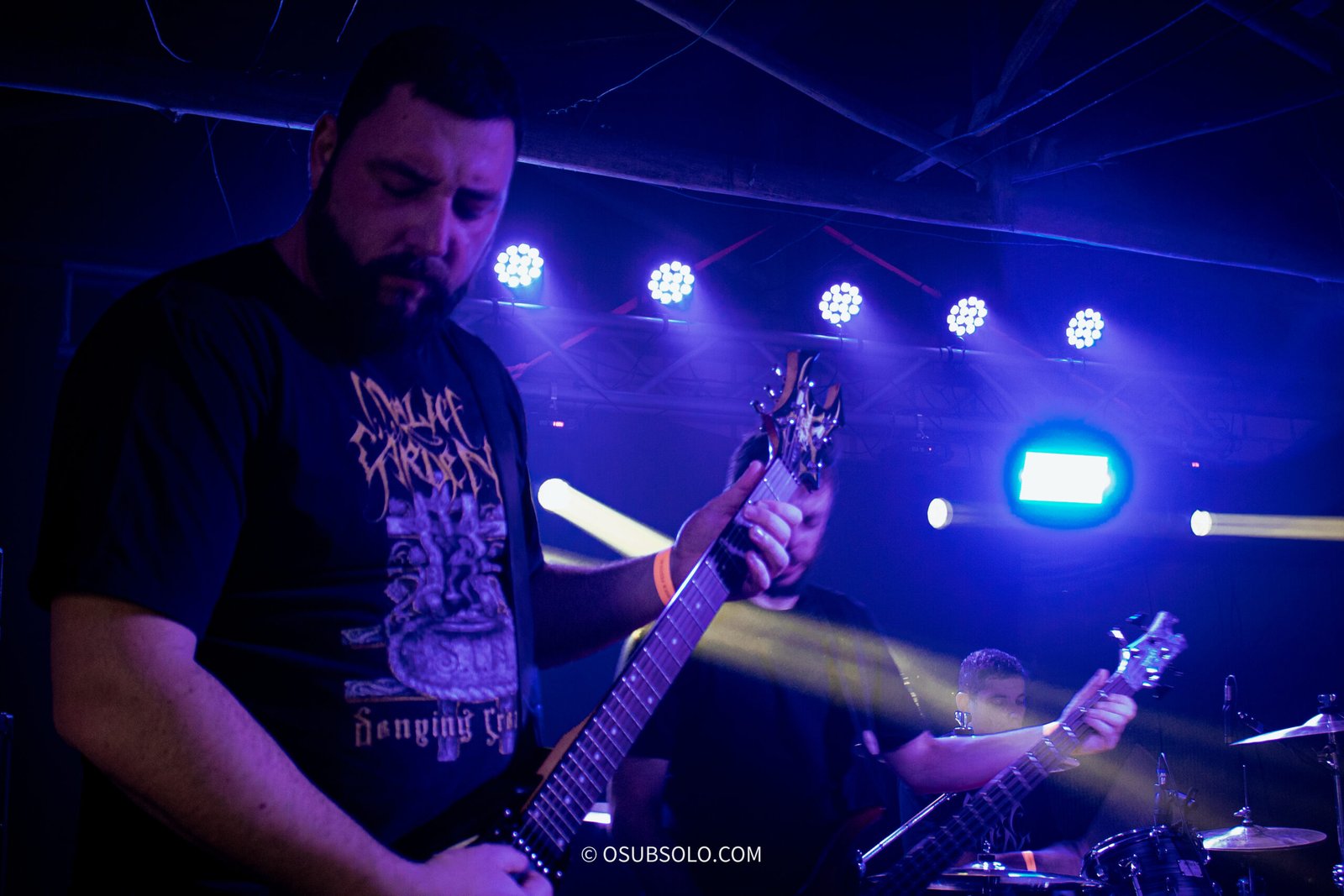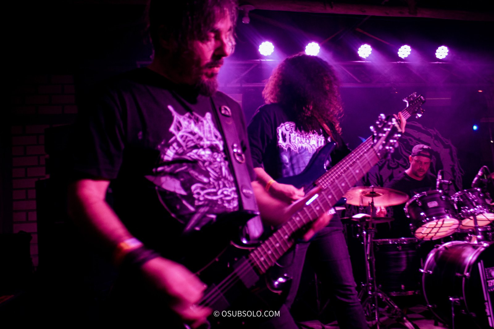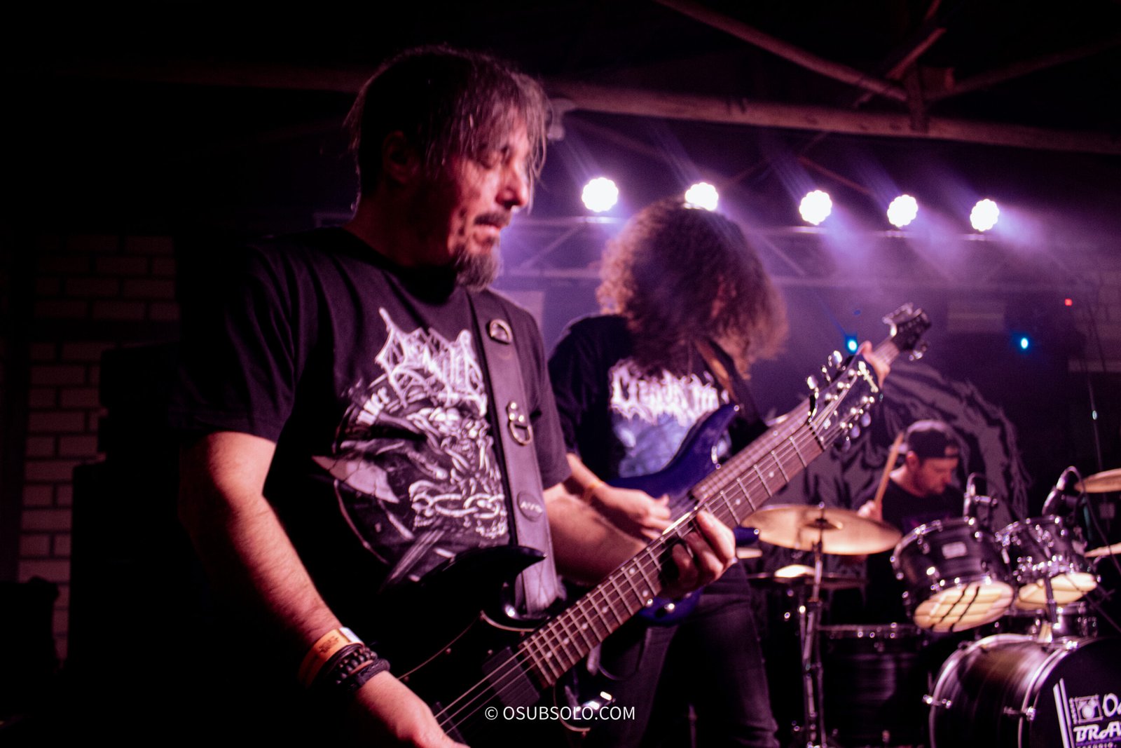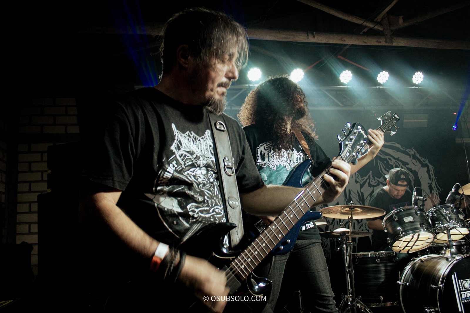 A banda que não era tão conhecida e o povo começou a sair do galpão, logo nas primeiras músicas fez todos voltarem correndo. Passaram por Megadeth, Metallica e fecharam com um Slayer e sua faixa ícone Raining Blood, o que fez a galera abrir o primeiro mosh do evento e aquecer naquela friaça que estava. O restante dos membros apesar de rostos novos, trouxeram uma presença sólida no palco, guitarras ácidas, baixo forte e marcante, bateria solta, pesada e visceral.