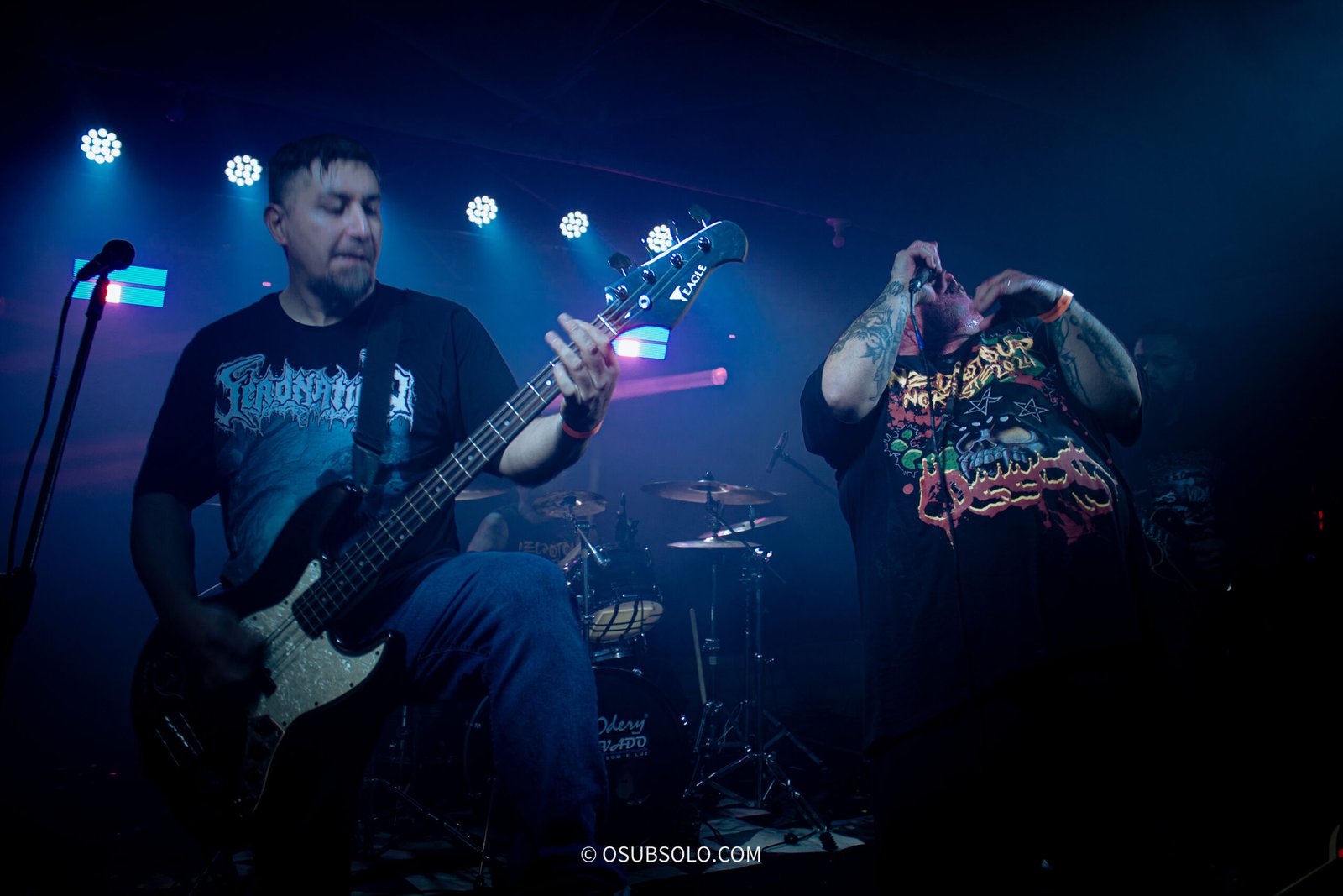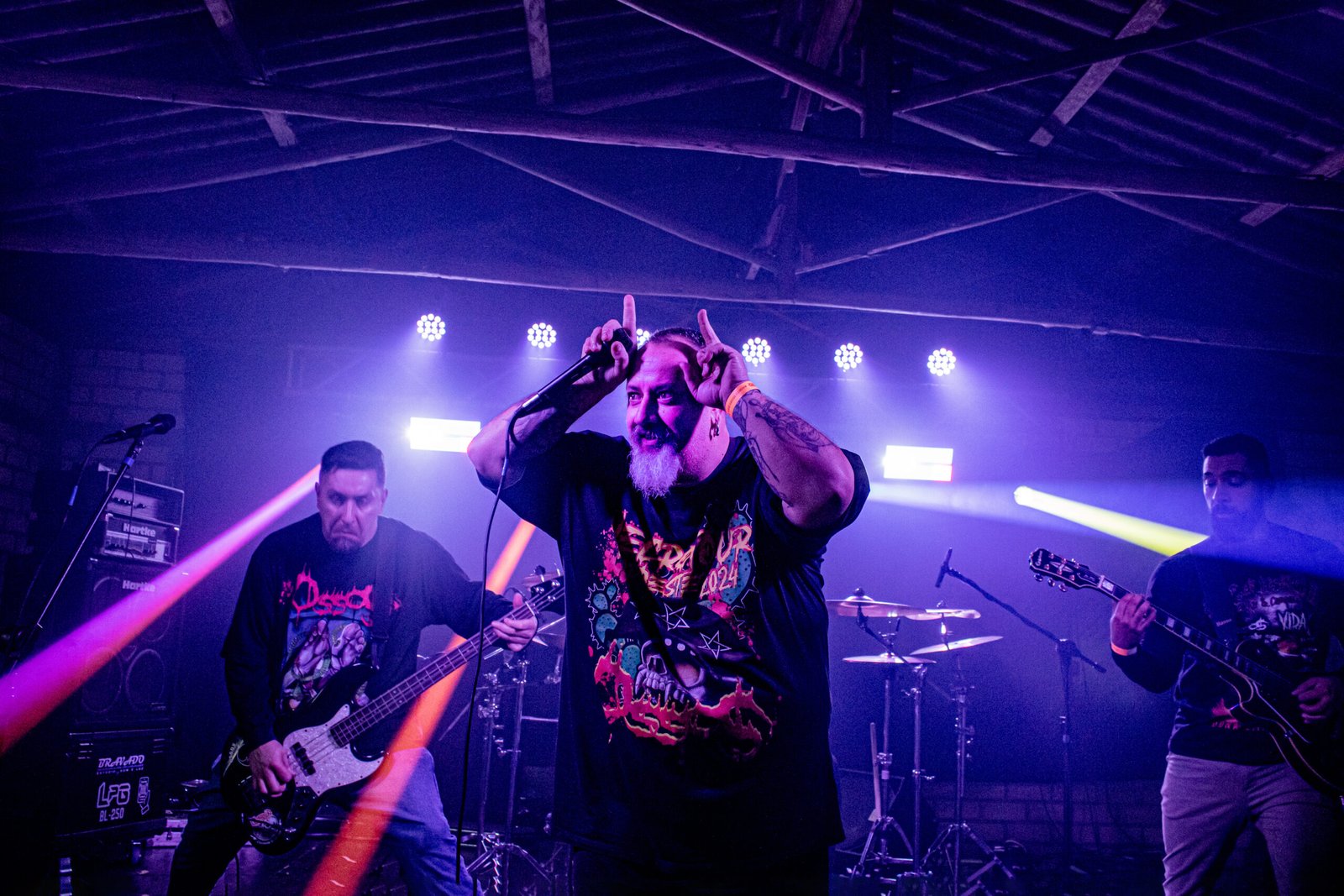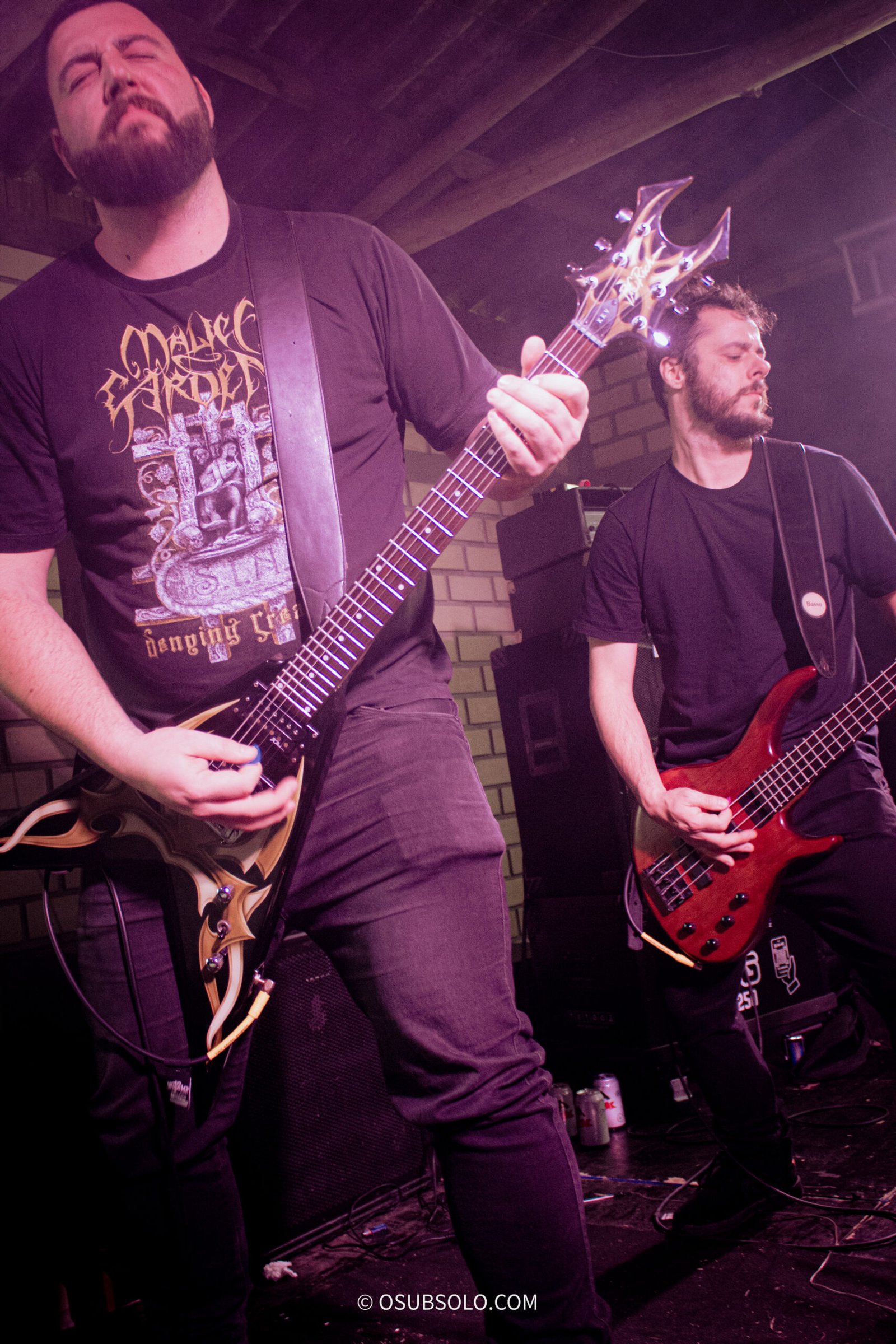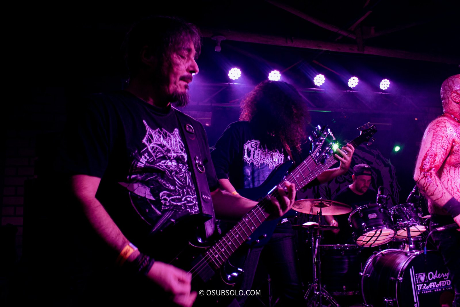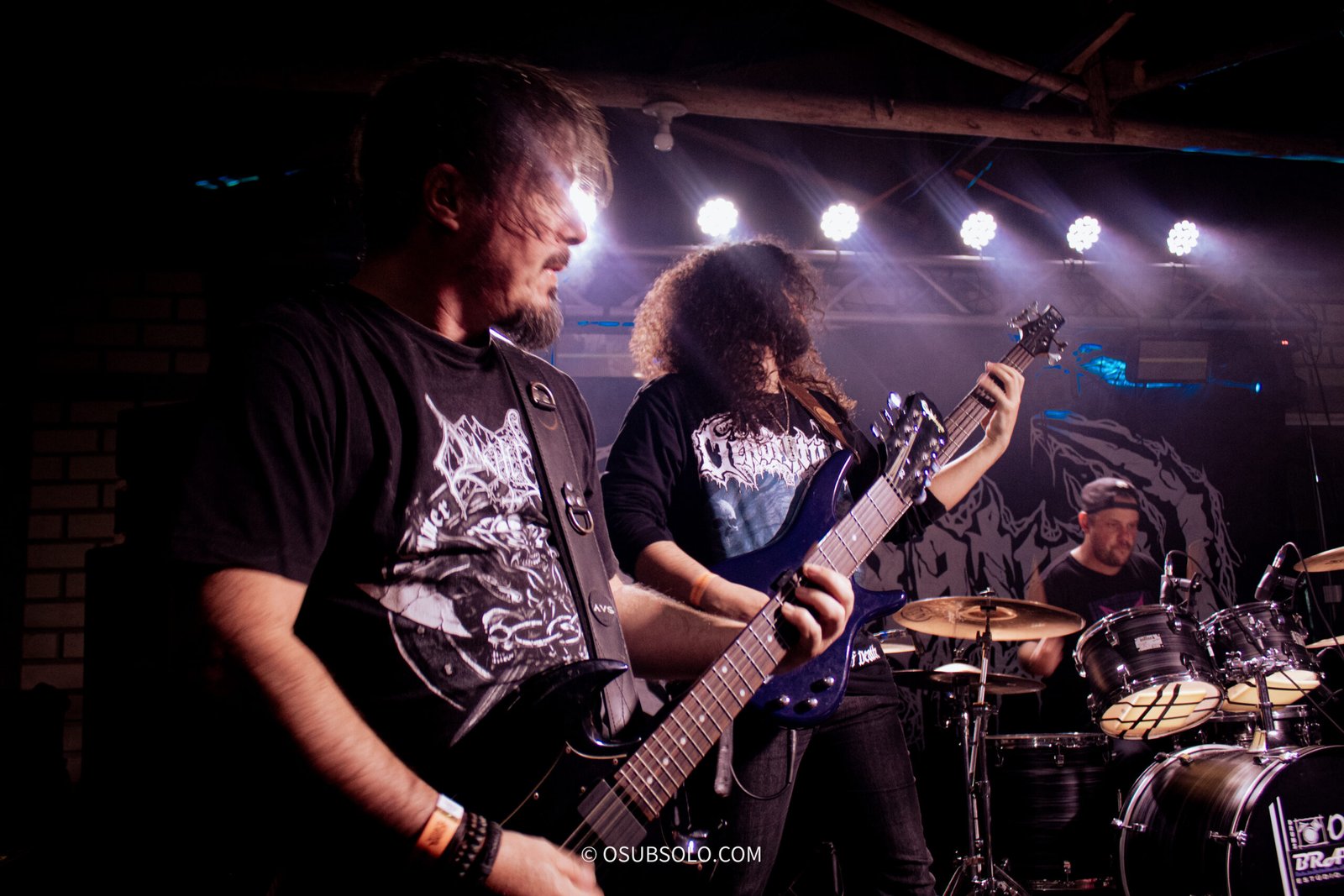 A banda que não era tão conhecida e o povo começou a sair do galpão, logo nas primeiras músicas fez todos voltarem correndo. Passaram por Megadeth, Metallica e fecharam com um Slayer e sua faixa ícone Raining Blood, o que fez a galera abrir o primeiro mosh do evento e aquecer naquela friaça que estava. O restante dos membros apesar de rostos novos, trouxeram uma presença sólida no palco, guitarras ácidas, baixo forte e marcante, bateria solta, pesada e visceral.