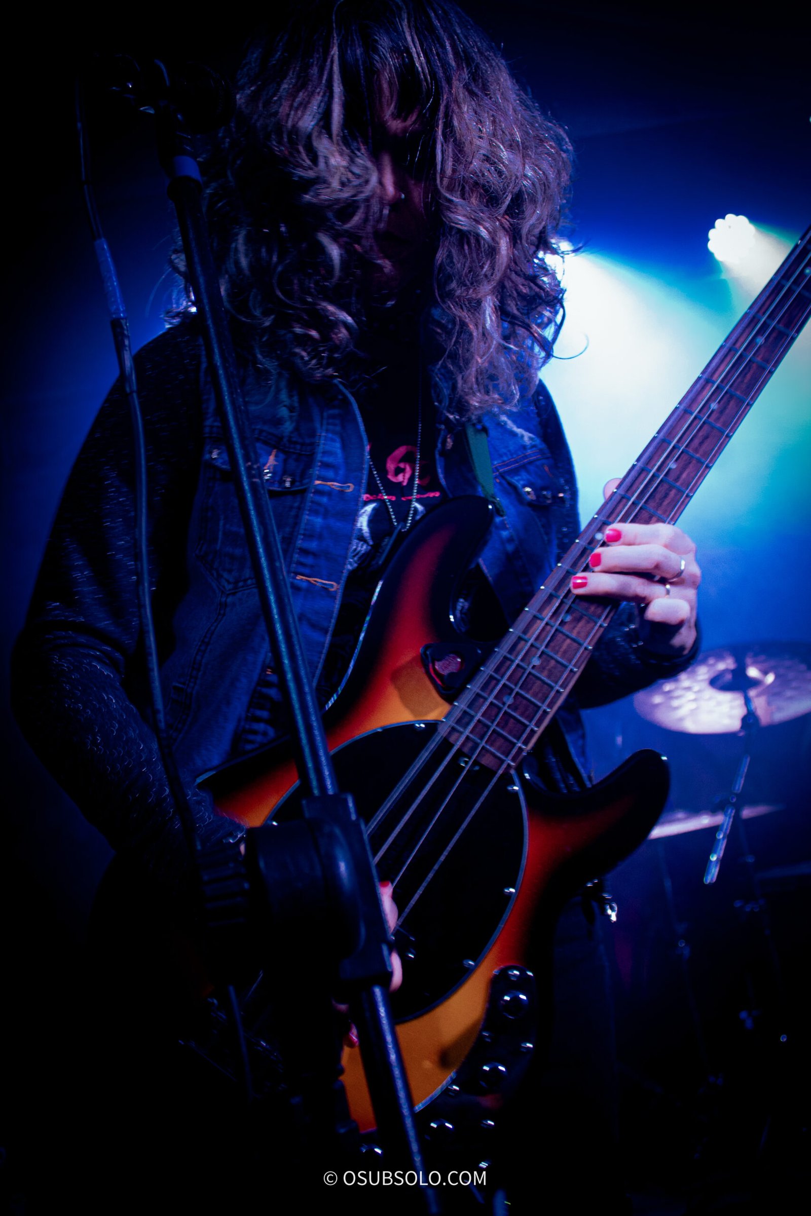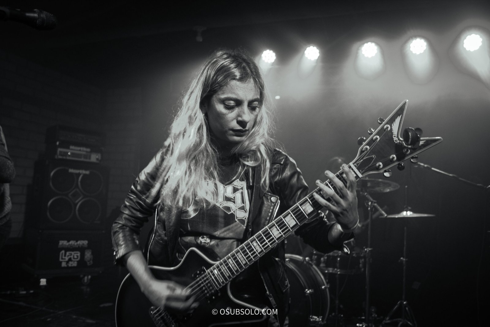 O power trio possui linhas melódicas muito bem desenhadas e performadas por Renata Petrelli, que, mesmo na ausência de uma guitarra base, não perde o seu peso devido à marcante presença do baixo de Aline Dutchi (o terror dos fotógrafos, por não parar quieta por nenhum instante), e fechando a fórmula com Leonora Mölka nas baterias, adicionando ainda mais peso e agressividade. Quer saber do que estou falando? Ouça Grief of Death.