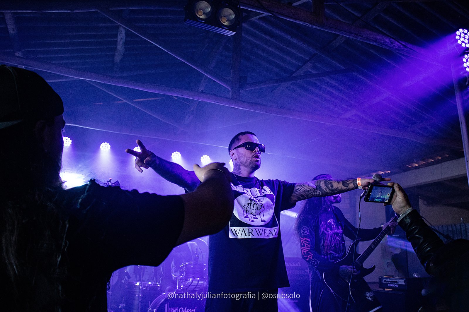 A atmosfera do evento foi simplesmente sombria. Tanto dentro quanto fora do pavilhão, o público parecia imerso em uma espécie de ritual macabro, com o som avassalador ecoando e os vocais demoníacos dominando o ambiente. A intensidade e a presença sonora faziam com que cada instante se tornasse um mergulho nas profundezas do metal extremo, transformando o local em um verdadeiro portal para o submundo.