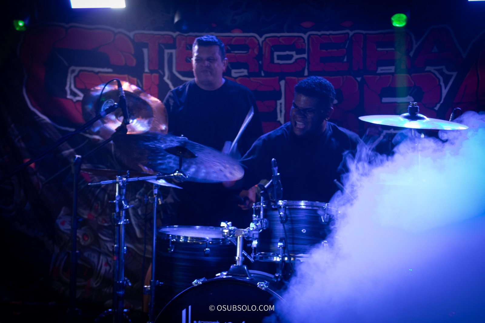 Tivemos também a estreia do mais novo membro da banda, Daniel Costa, que quebrou tudo na bateria e mostrou que ser novo membro não é sinônimo de novo músico, pois a porradaria comeu solta, juntamente com os colegas Liniker Moura no baixo e Thiago Tom na guitarra.