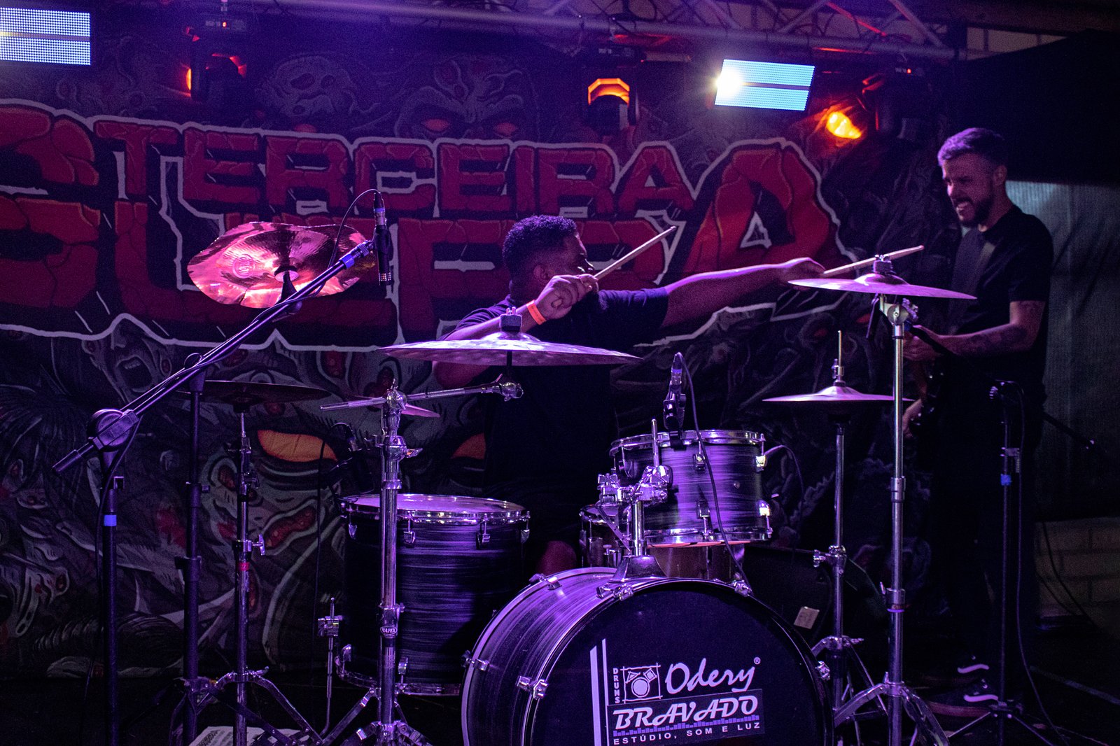 Tivemos também a estreia do mais novo membro da banda, Daniel Costa, que quebrou tudo na bateria e mostrou que ser novo membro não é sinônimo de novo músico, pois a porradaria comeu solta, juntamente com os colegas Liniker Moura no baixo e Thiago Tom na guitarra.