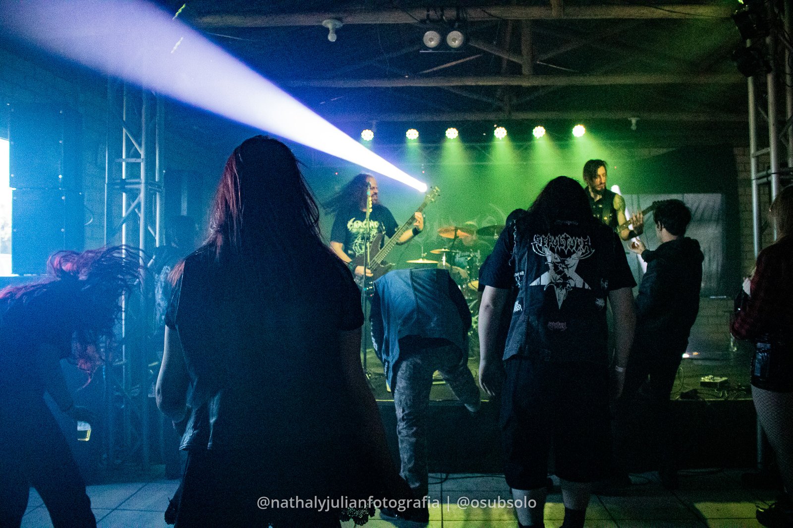 A atmosfera do evento foi simplesmente sombria. Tanto dentro quanto fora do pavilhão, o público parecia imerso em uma espécie de ritual macabro, com o som avassalador ecoando e os vocais demoníacos dominando o ambiente. A intensidade e a presença sonora faziam com que cada instante se tornasse um mergulho nas profundezas do metal extremo, transformando o local em um verdadeiro portal para o submundo.
