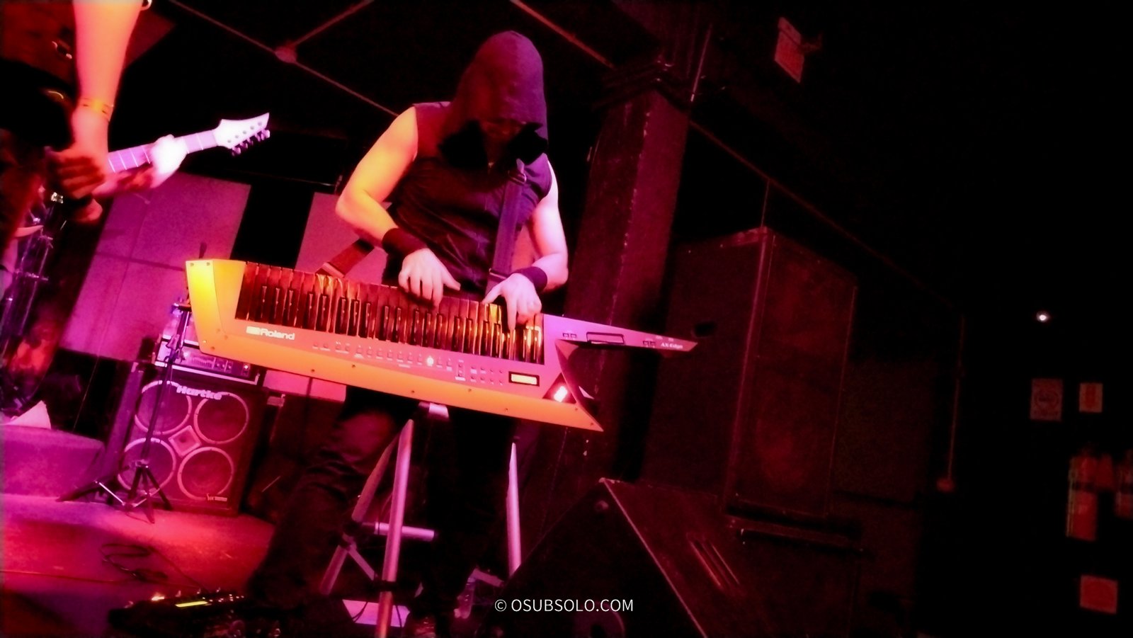 Não bastasse o tecladista em palco, (criatura raramente vista nos palcos de festivais), o miserável aparece com um (instrumento popularmente conhecido como) keytar, dando mais liberdade performática executar seus solos na frente do palco.