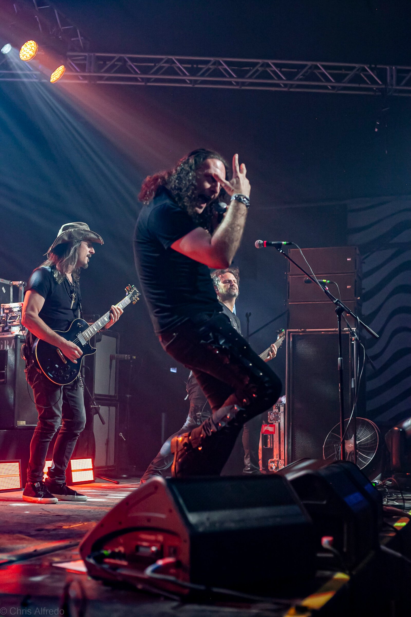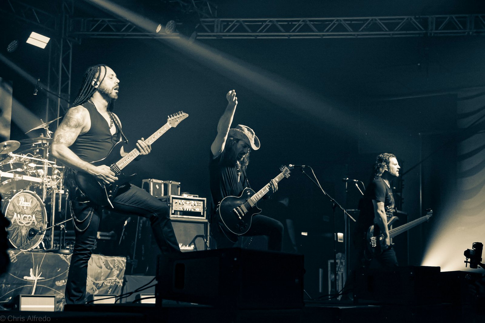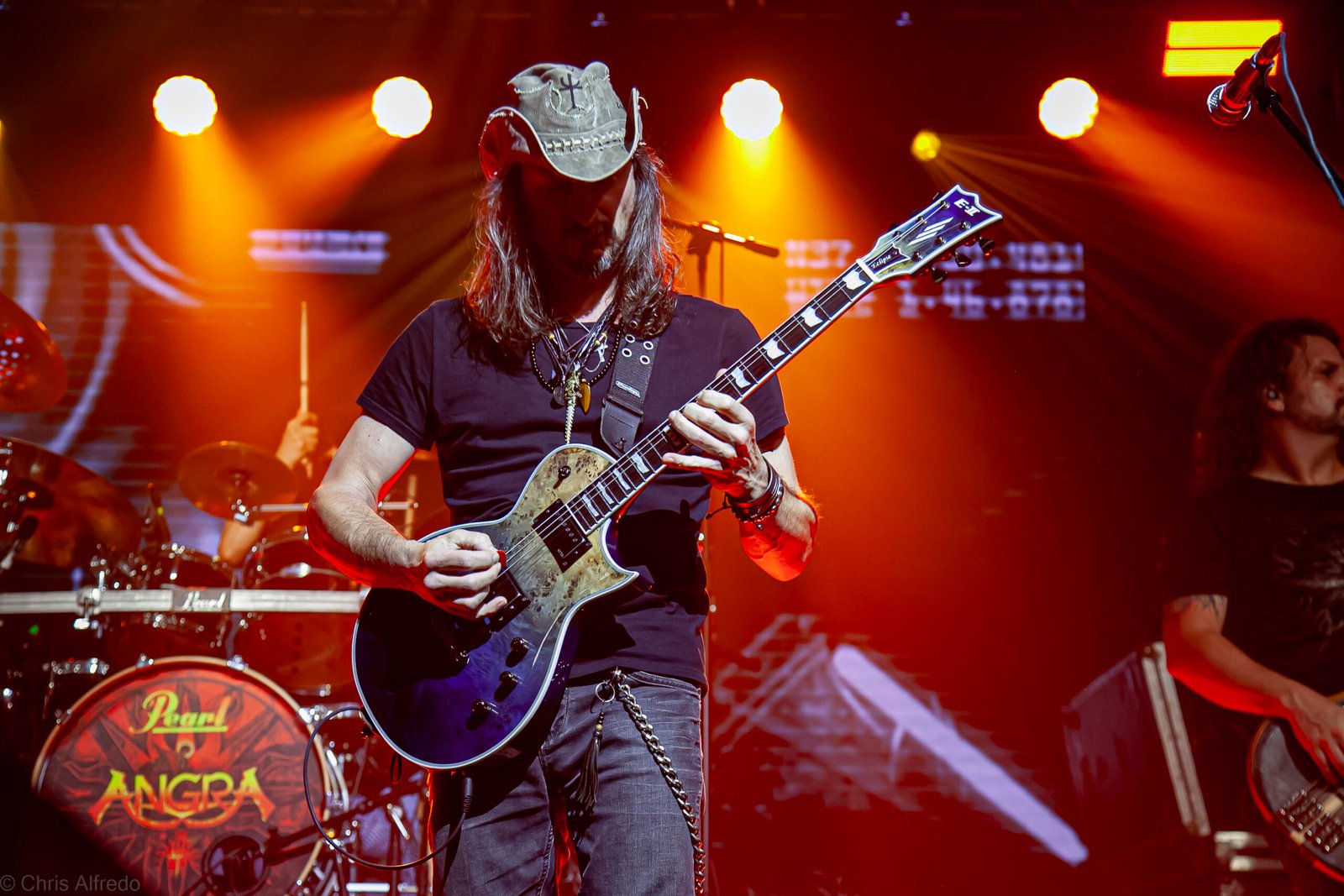 Spread Your Fire, segunda faixa do disco, foi responsável por iniciar a quebradeira na pista, enquanto os fãs não adeptos do mosh se esmagavam no canto do espaço aberto na pista para admirar as técnicas impecáveis das guitarras do veterano da banda Rafael Bittencourt e de Marcelo Barbosa, que está na banda desde 2015. Fabio aproveitou cada intervalo de música para conversar com o público com seu esforçado conhecimento do português, mostrando que o cantor lírico italiano está cada vez mais brasileiro. Com uma postura agressiva, Felipe Andreolli atacou ferozmente as cordas de seu baixo durante o show inteiro e, por vezes, ficava de costas para a plateia para interagir com o baterista Bruno Valverde, que também fez uma apresentação impecável, se mostrando mais um grande expoente do metal brasileiro no comando deste instrumento. Bruno também se mostrou muito animado, usando a posição mais alta do palco de onde se apresentava para provocar gritos e aplausos do público sempre que possível. Outro ponto da apresentação que me chamou a atenção foram as caretas feitas por Rafa Bittencourt para os fotógrafos, confesso que perdi alguns cliques pois tinha dado uma pausa para rir, é engraçado como de frente a nossos ídolos, por vezes agimos como criança.
