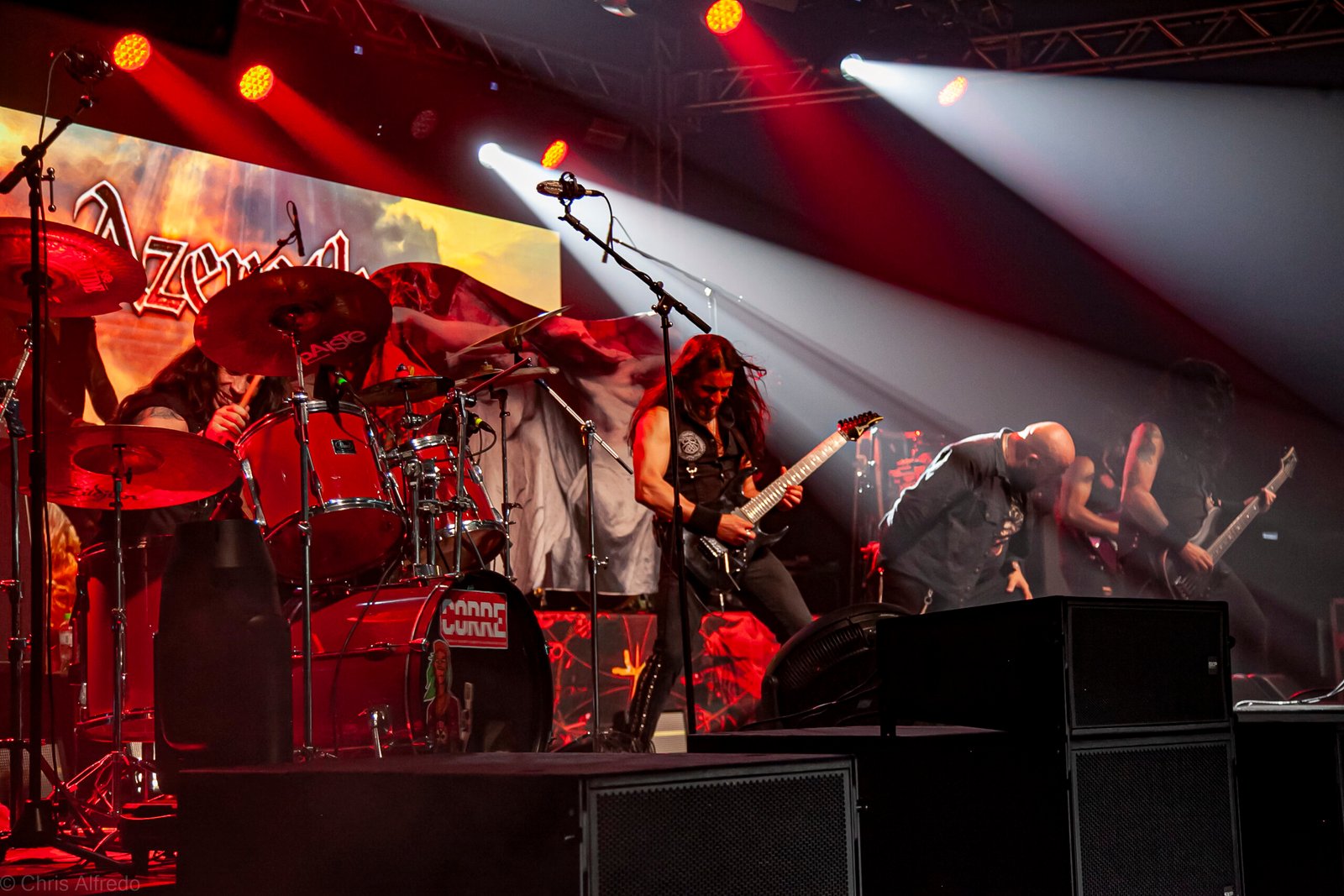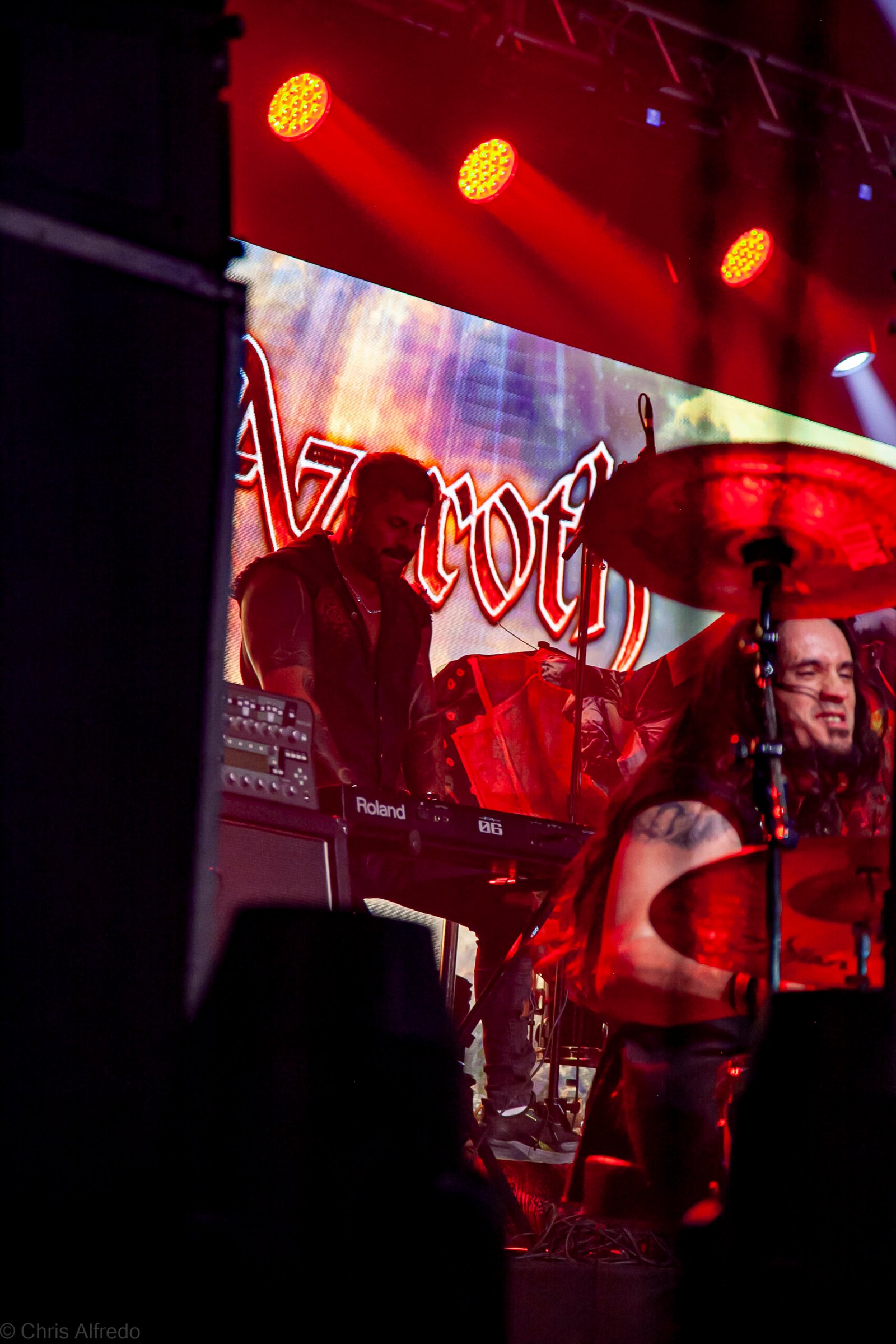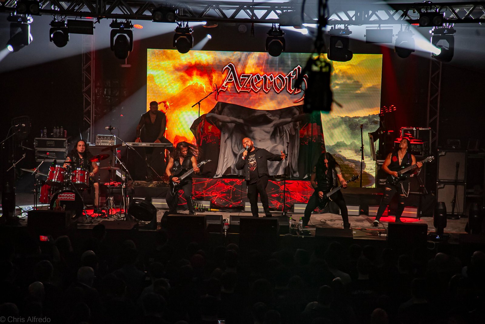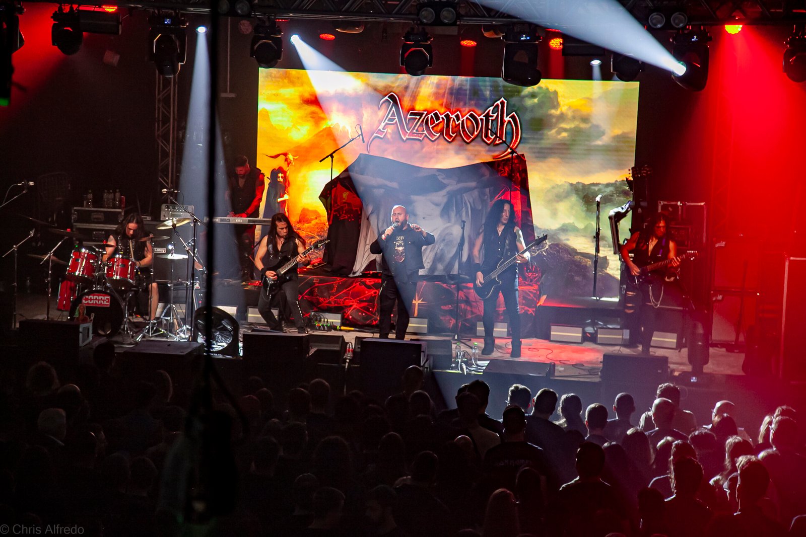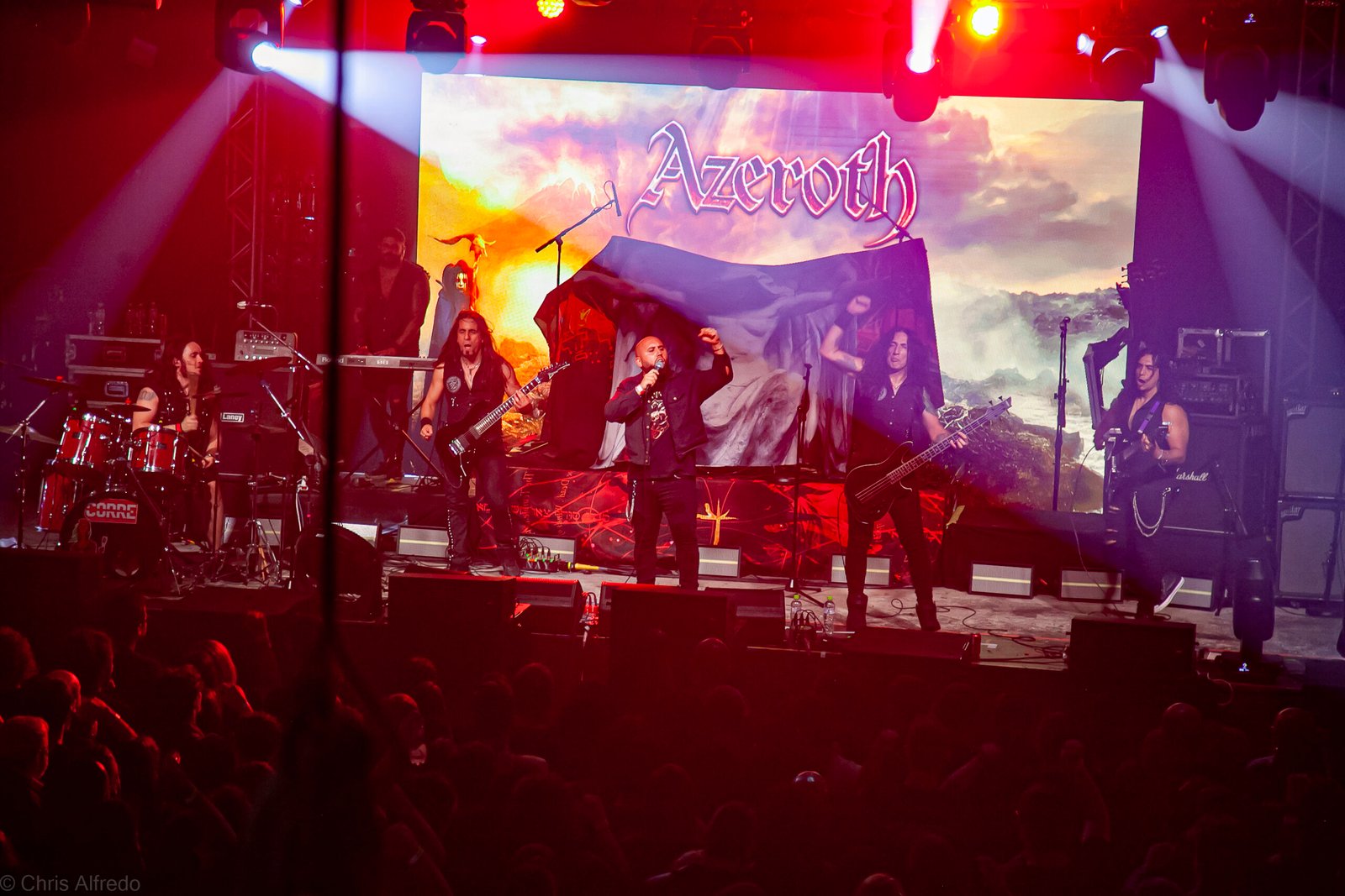 Infelizmente, devido a uma mudança no cronograma do evento e uma falha na comunicação, acabei chegando pela metade do show de abertura. Porém, ainda tive tempo de ter a grata surpresa de ver a banda Azeroth no palco. Surpresa, pois na divulgação oficial do evento não foi citada nenhuma banda para a ocasião, o que deixou a noite ainda melhor. A banda se apresentou com seus integrantes lado a lado devido ao grande espaço ocupado pelo aparato da apresentação que viria a seguir, mas isso não afetou nem um pouco a performance dos argentinos, que inclusive têm ótimas faixas cantadas em espanhol.