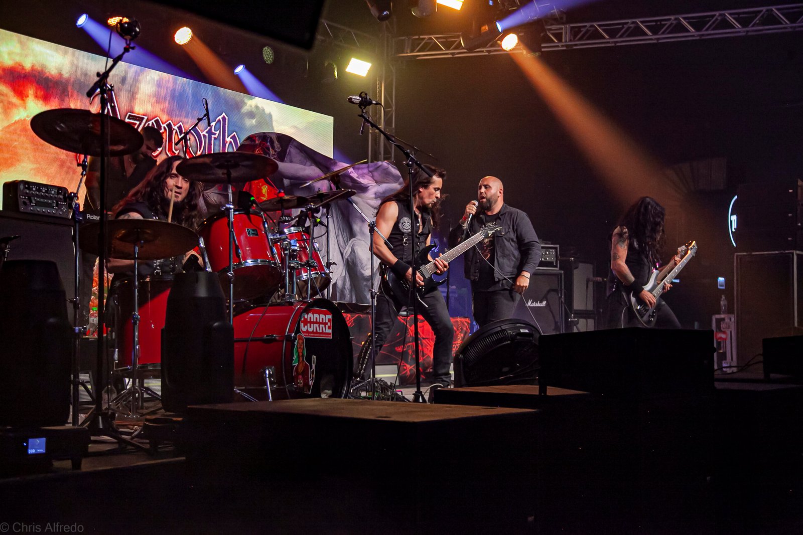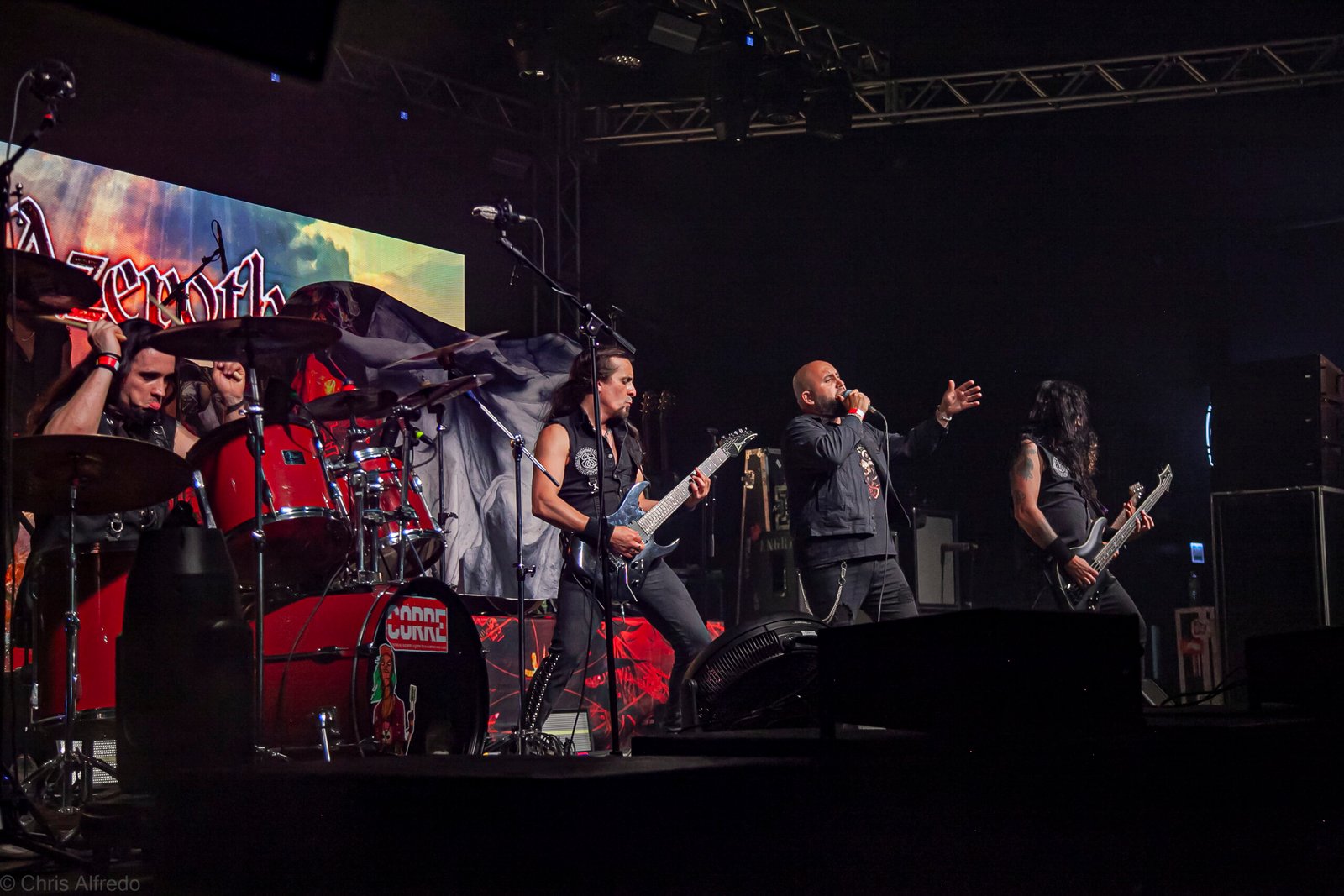 Felizmente, ao chegar, pude testemunhar a execução da excelente La Salida, a única cantada em espanhol neste dia. O ponto mais emocionante da apresentação foi a homenagem feita pela banda a dois grandes nomes da música sul-americana que já não estão mais em nosso plano: o baixista Pit Passarel e o maestro André Matos. A música escolhida foi Prelude to Oblivion da Viper, banda em que os dois tocaram juntos. Após o término de sua apresentação, nossos hermanos vieram ao lado do palco, onde pude trocar algumas palavras com eles. Com muita simpatia e gratos pela oportunidade, expressaram sua admiração pela música brasileira e, principalmente, ao público, prometendo voltar em breve para divulgar novos trabalhos.