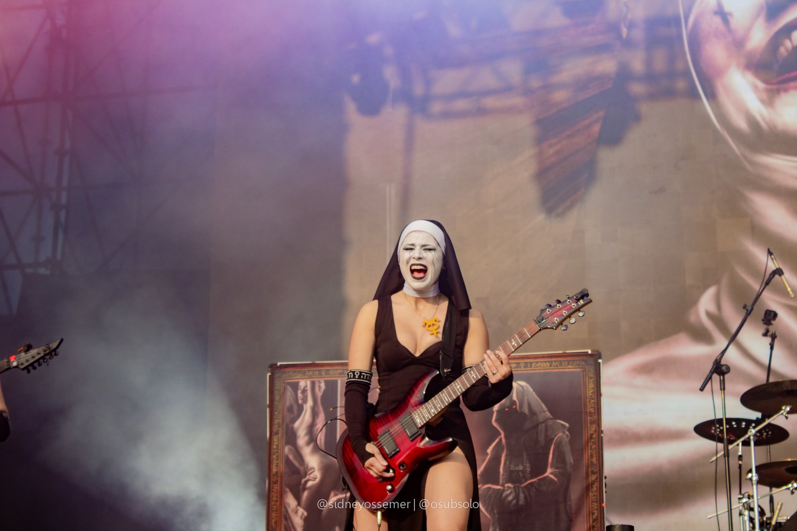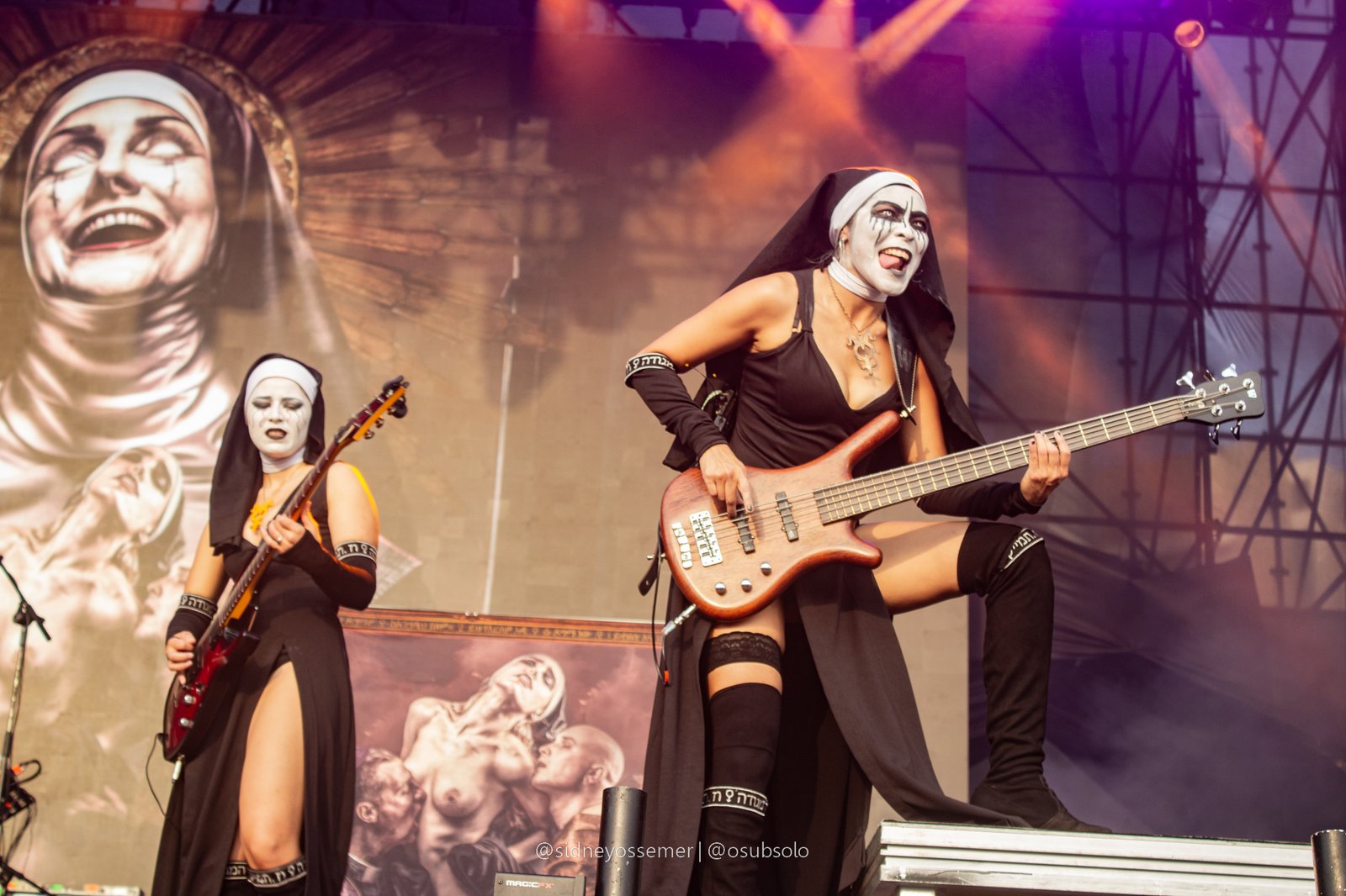 A banda, que fez sua estreia nos solos brasileiros no último ano no Odin’s Krieger Fest e que já havia gerado um clamor suficiente para a demanda de um show solo no dia seguinte, parece fazer da América Latina sua segunda casa (seja lá qual for sua primeira, e reza a lenda que, para algumas, até seja…). Mas fato é que o conceito poderia ser apenas forçado, não fosse a qualidade musical e de presença de palco que realmente prende a atenção e não necessariamente por um elemento de apelo sexual, but pelo carisma e trabalho de palco, onde, neste quesito, não tem como não dar destaque para Nixe, uma versão feminina de Trujillo, in sic., ao famoso crítico musical e colega da página, Daniel Agapito.