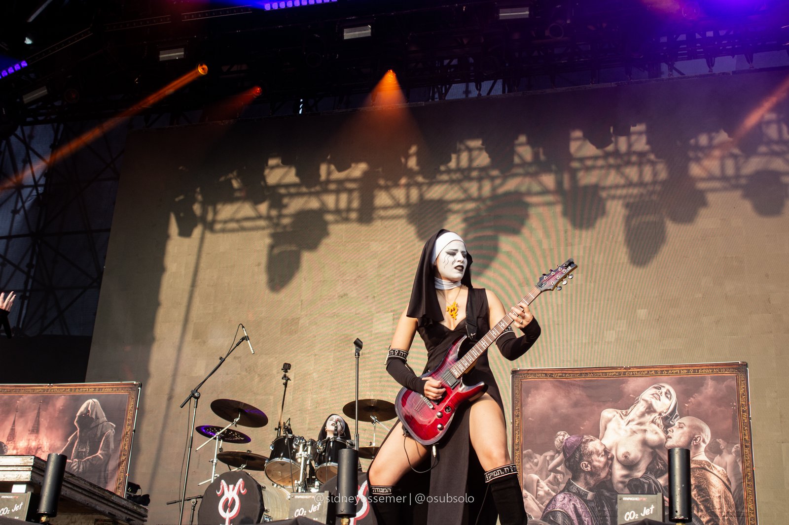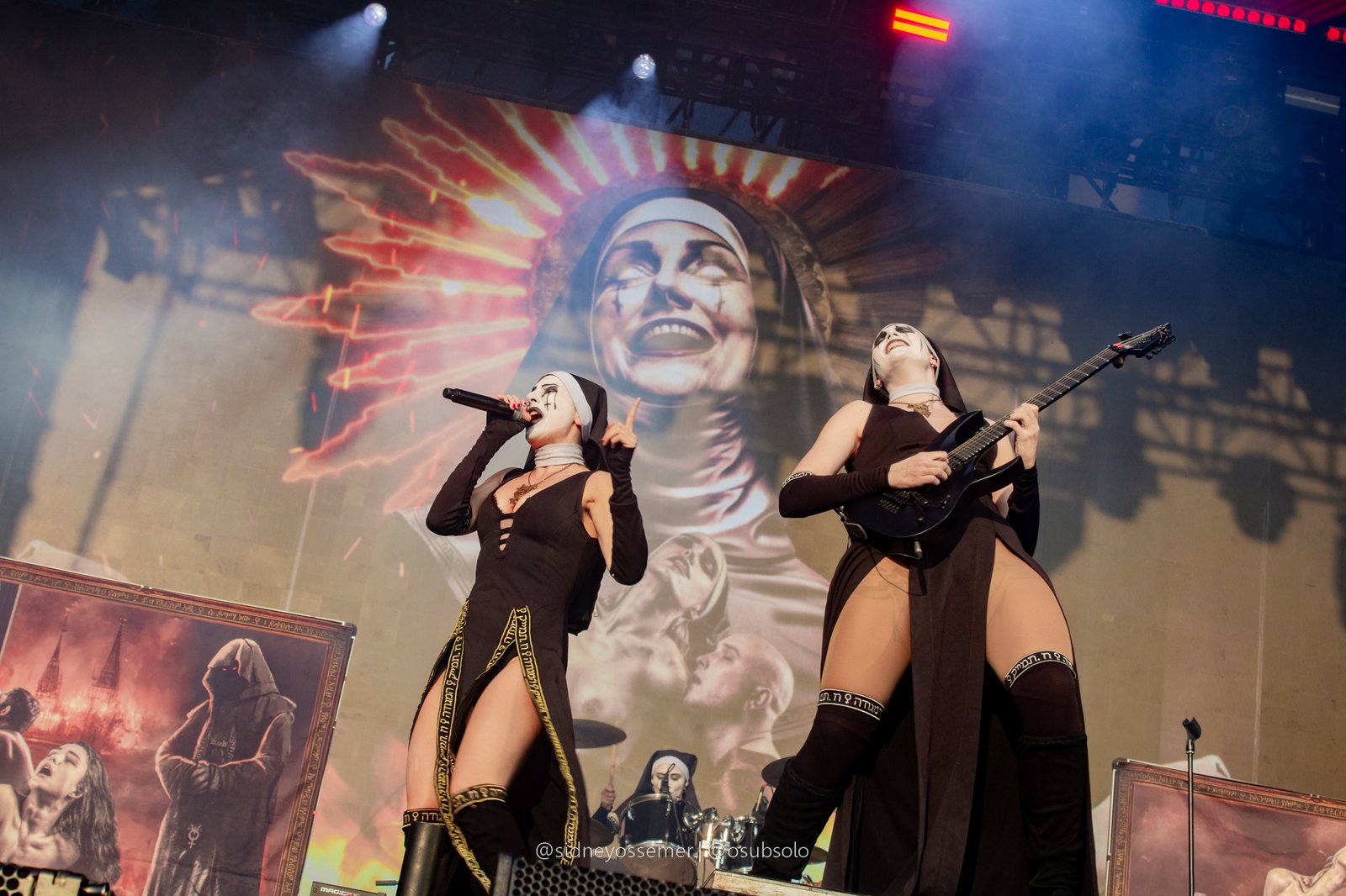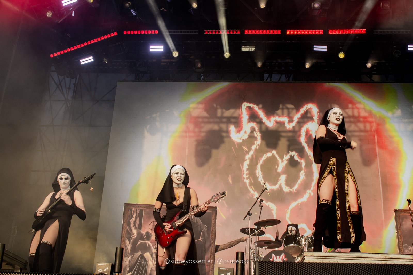 Apenas 10 minutos haviam se passado, o fôlego mal havia se recomposto e o público aproveitava o momento para pegar um refil de seu líquido de escolha. Nesse meio tempo, o backdrop do quinteto de freiras mais pecaminoso (e ousado) já se fazia a postos para o tipo de show que faz com que as avós abominem o universo do rock. Aqui, vale um ponto interessante: ao contrário das edições passadas, onde os palcos eram identificados através de letreiros com seus nomes, no BOA o que dominou foi o visual – um potente jogo de luzes azuis para o Ice e um vermelho fogo para o Hot, uma curiosa combinação quando pensado para a estreia do palco pelas desconhecidas e anônimas integrantes do Dogma.