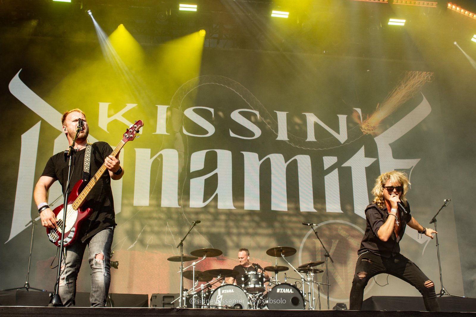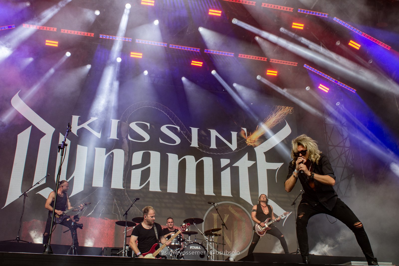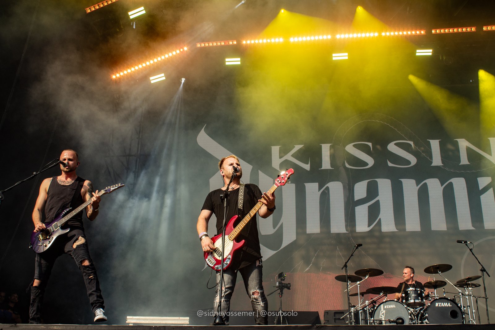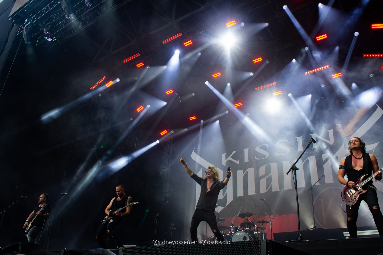 Em qualquer tipo de evento, sempre vão dizer que as duas posições mais difíceis de ocupar são daqueles que iniciam e encerram. Seja pela antecipação, pela missão de criar um bom ritmo e definir e finalizar com bom tom aquilo que se esteja proposto, é uma tarefa para poucos. E, para dar start na festança da cultura metaleira chamada Bangers Open Air, os escolhidos para iniciar o Warm Up de sexta-feira foram o Kissin’ Dynamite, uma banda que, apesar de estreante no Brasil, já angaria quase 20 anos de estrada e, como ficou visível tanto pelo público presente quanto logo nas primeiras músicas: uma grande porção de fãs.