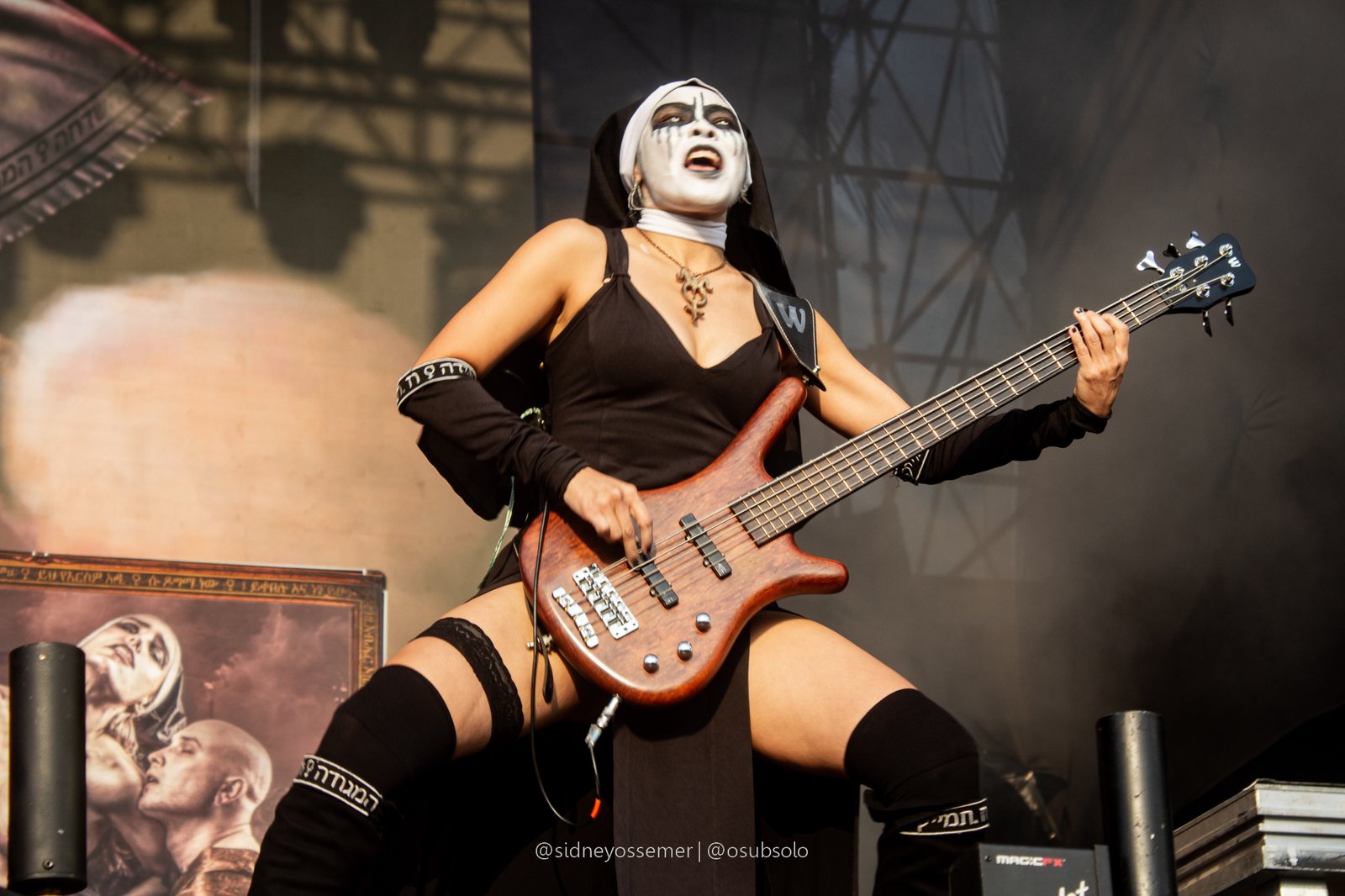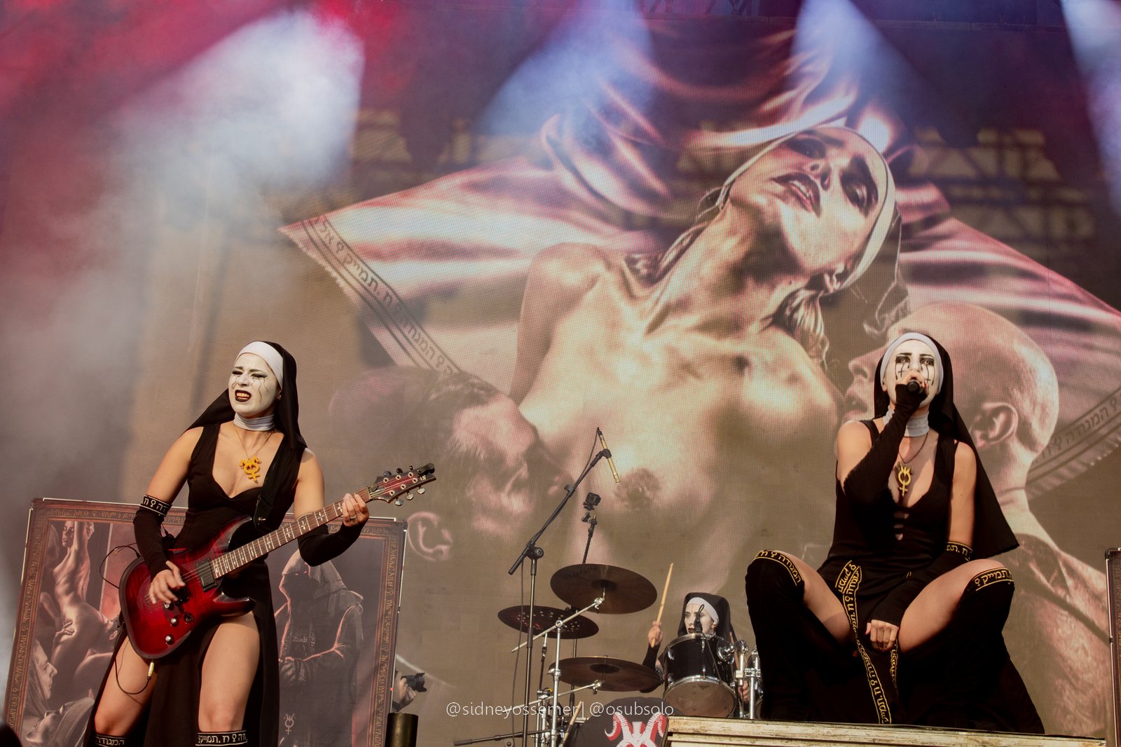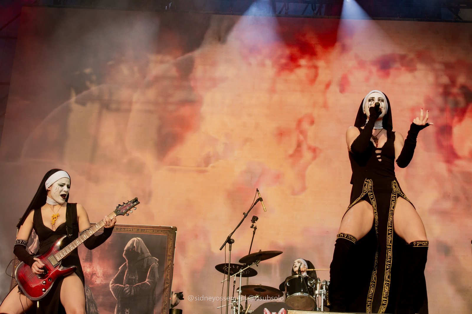 A banda, que fez sua estreia nos solos brasileiros no último ano no Odin’s Krieger Fest e que já havia gerado um clamor suficiente para a demanda de um show solo no dia seguinte, parece fazer da América Latina sua segunda casa (seja lá qual for sua primeira, e reza a lenda que, para algumas, até seja…). Mas fato é que o conceito poderia ser apenas forçado, não fosse a qualidade musical e de presença de palco que realmente prende a atenção e não necessariamente por um elemento de apelo sexual, but pelo carisma e trabalho de palco, onde, neste quesito, não tem como não dar destaque para Nixe, uma versão feminina de Trujillo, in sic., ao famoso crítico musical e colega da página, Daniel Agapito.