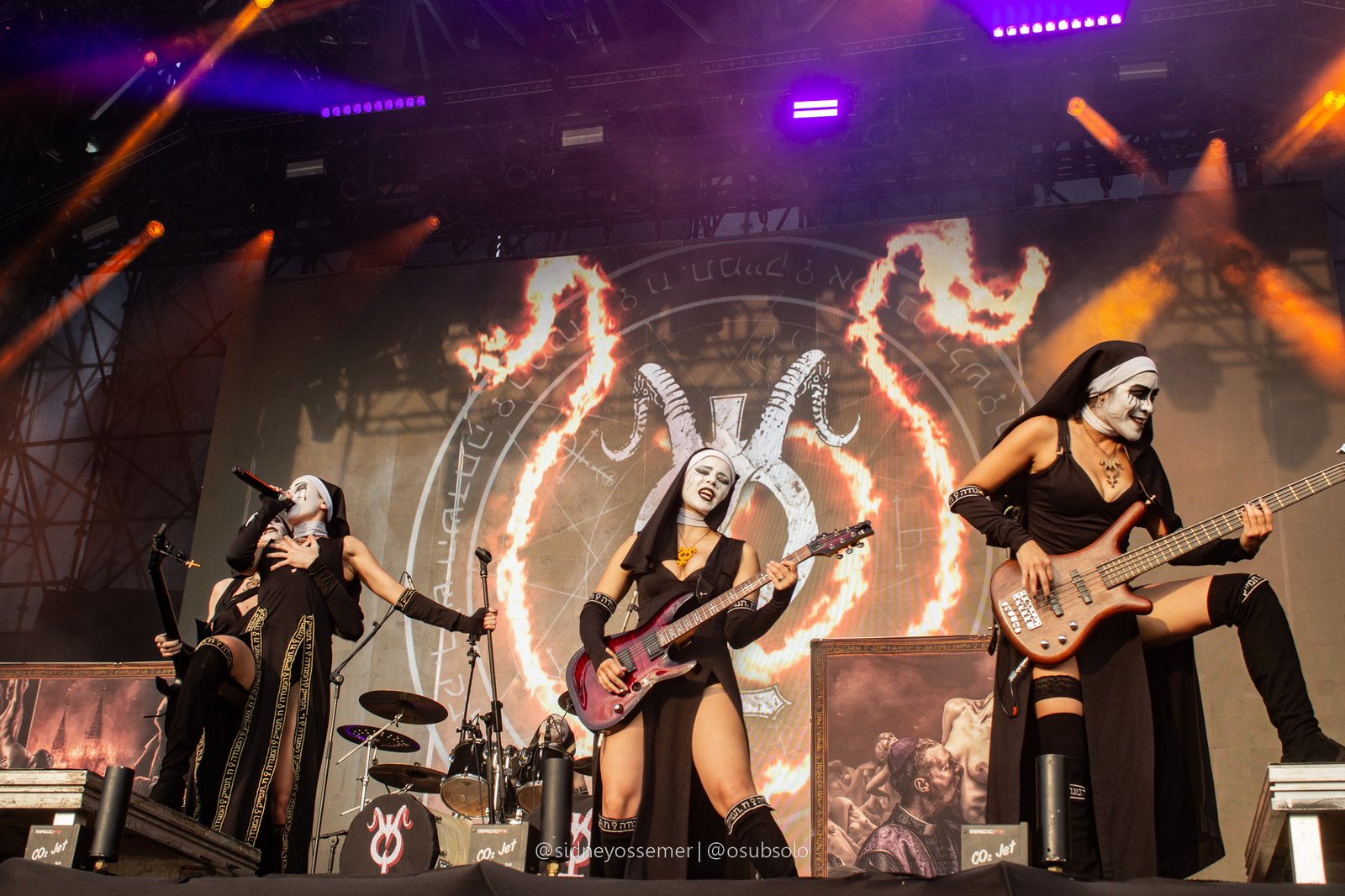 Apenas 10 minutos haviam se passado, o fôlego mal havia se recomposto e o público aproveitava o momento para pegar um refil de seu líquido de escolha. Nesse meio tempo, o backdrop do quinteto de freiras mais pecaminoso (e ousado) já se fazia a postos para o tipo de show que faz com que as avós abominem o universo do rock. Aqui, vale um ponto interessante: ao contrário das edições passadas, onde os palcos eram identificados através de letreiros com seus nomes, no BOA o que dominou foi o visual – um potente jogo de luzes azuis para o Ice e um vermelho fogo para o Hot, uma curiosa combinação quando pensado para a estreia do palco pelas desconhecidas e anônimas integrantes do Dogma.