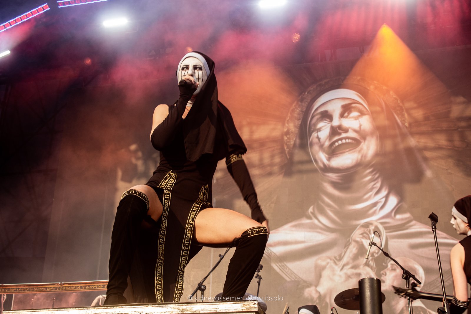 Ao som de Lux Aeterna, do homônimo filme de Aronofsky, um compilado de vídeos, ora trazendo elementos de cultos cristãos, ora diferentes momentos da internet que pareciam evocar questões sobre comportamento, performance de gênero e, sem sombra de dúvidas, muita dúvida, deu espaço para a musicalidade sacrílega que aborda temas como a sexualidade e os dogmas que a suprimem (a religião). As freiras adotam o hábito para profaná-lo e recitar palavras de liberdade em forma de sensualidade e afronta às tradições cristãs, de uma forma a estimular a volúpia e a abraçar o lado dos desejos em sua totalidade e honestidade, parando até mesmo trabalhadores do evento, do time da limpeza, para sacarem seus celulares e registrarem o que estava acontecendo.