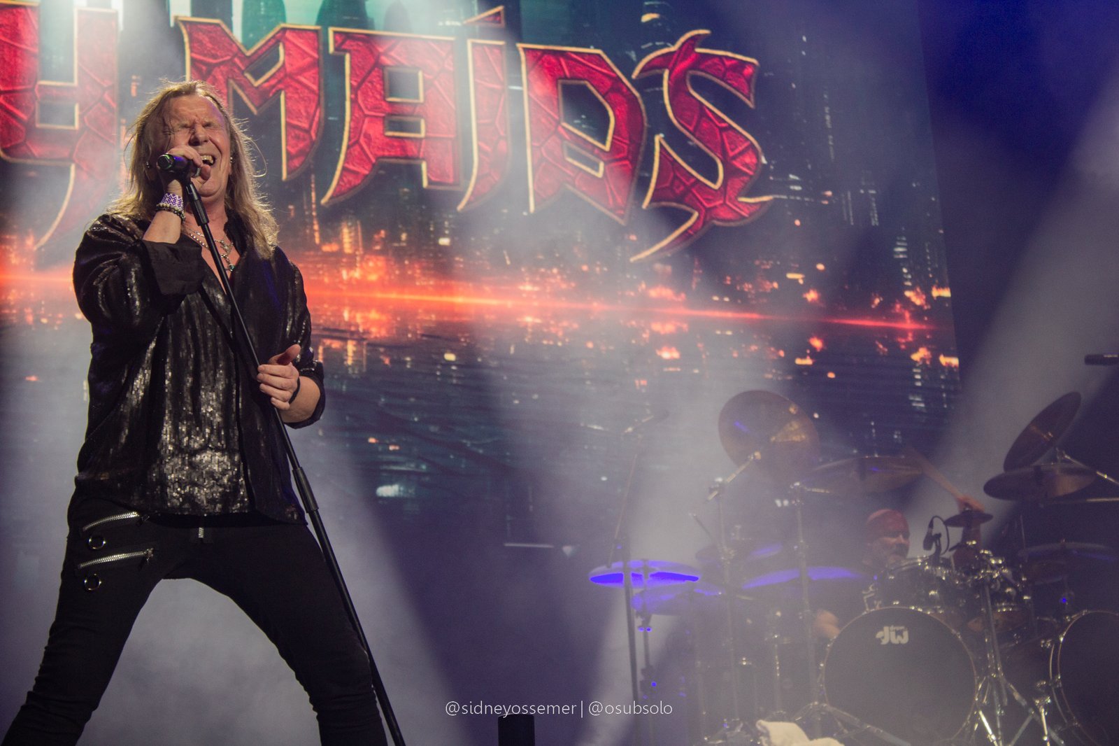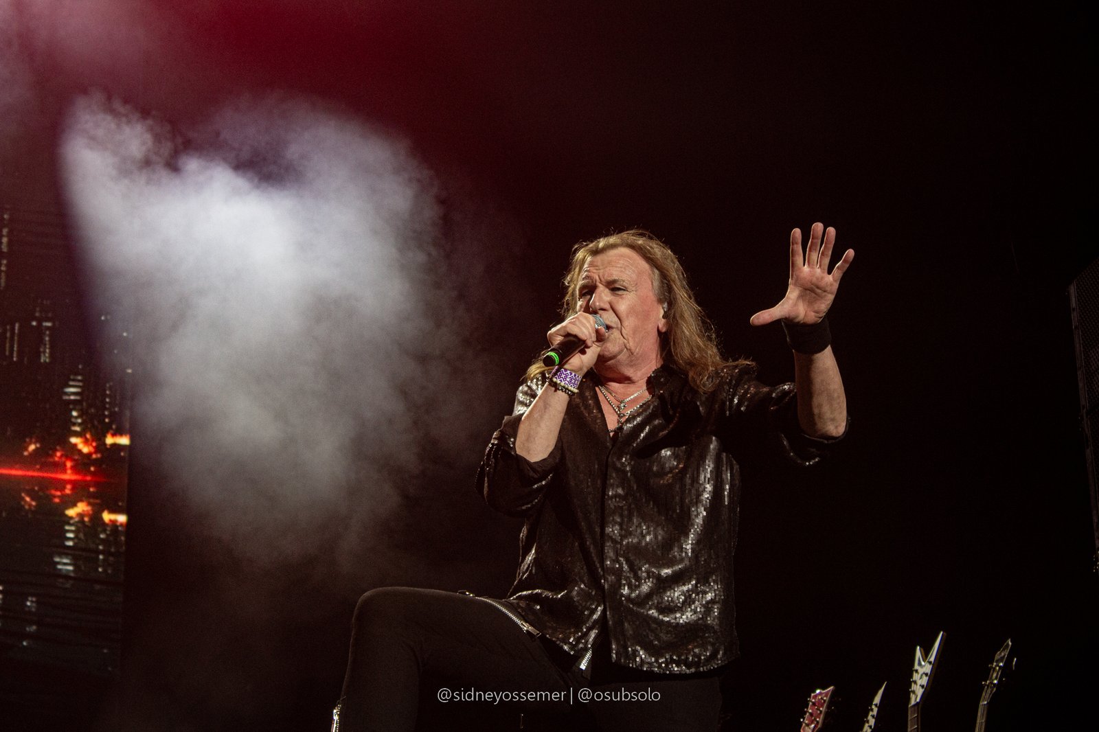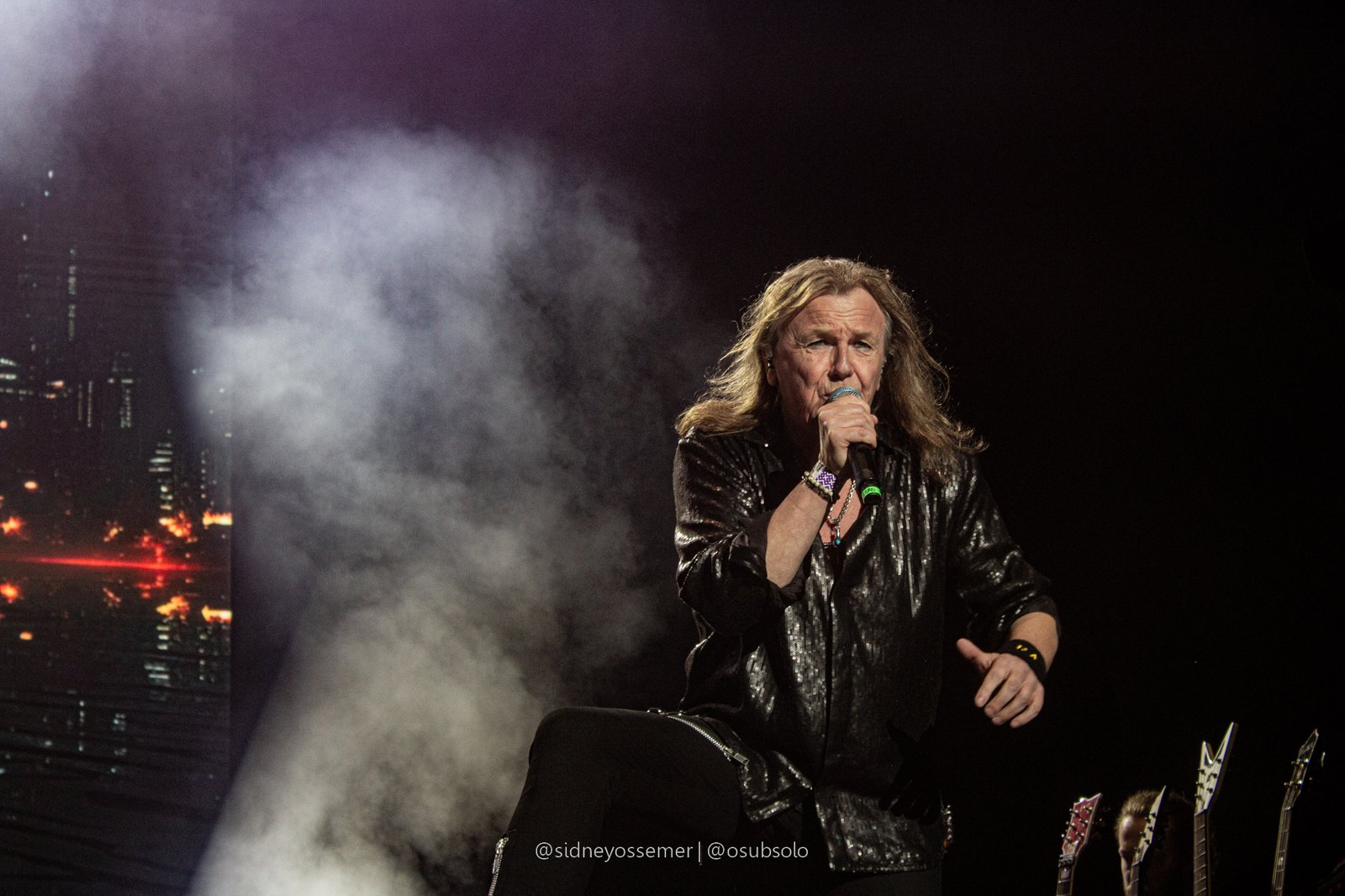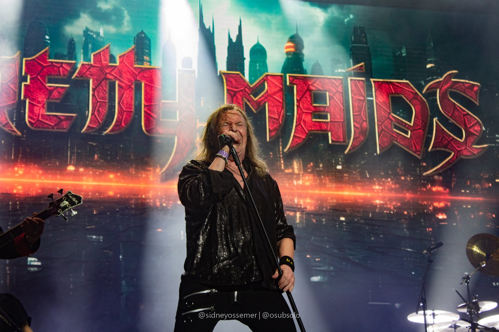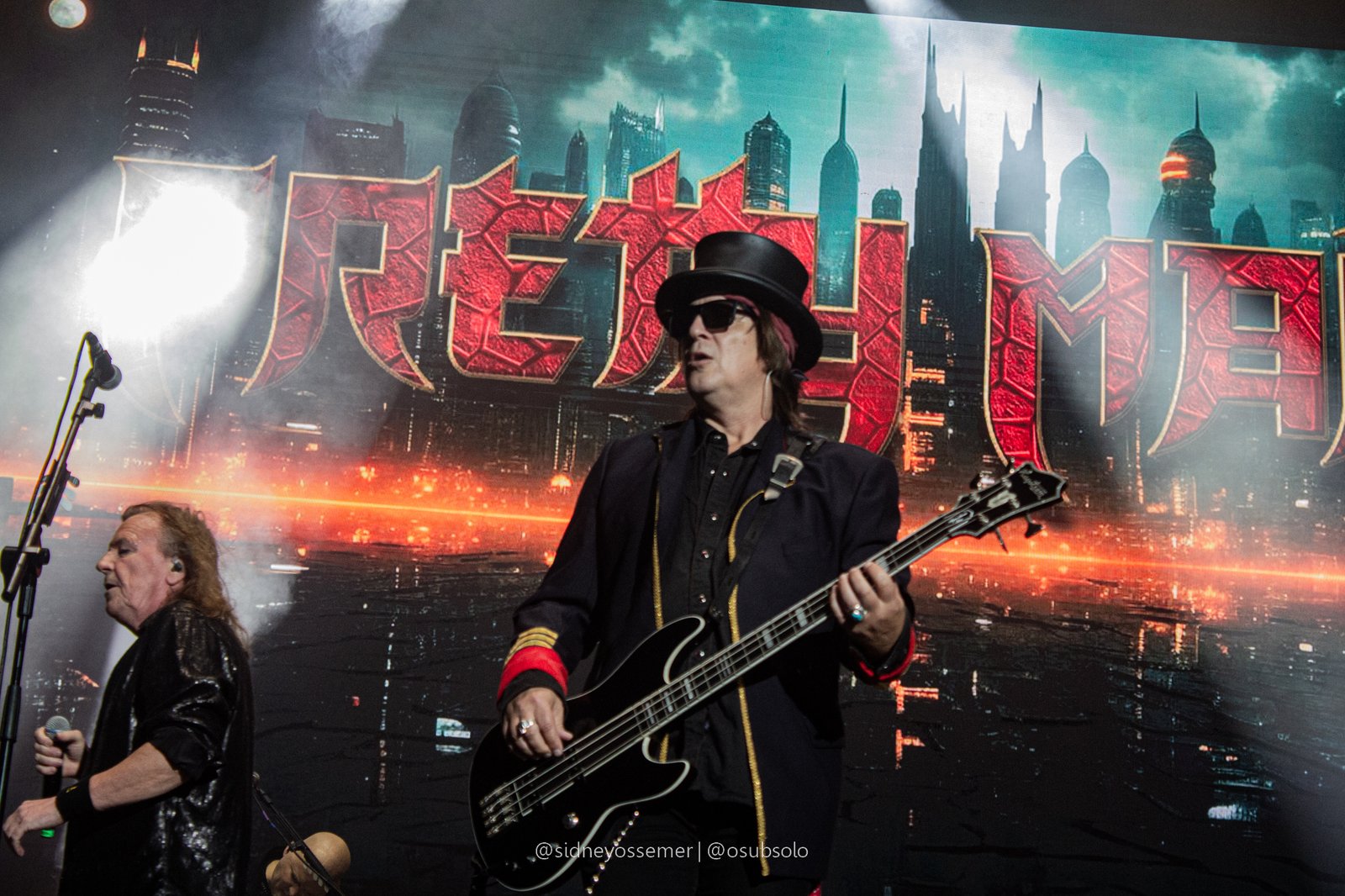 Com aquele backdrop digno dos anos 80, o metal tradicional ganhava força e coro em títulos como I Rule the Ruins, Burning the Witches, Für Immer e até mais “novas”, como Raise Your Fist in the Air. E, falando por novas, tivemos uma mais recente, de 2023, Fire in the Sky, que teve como co-compositor nosso Bill, a quem a rainha mostrava contínuo carinho e apreço, quase como se o mesmo fosse um reflexo do Brasil, na medida em que esta arriscava um português com algumas frases como “Vocês estão se divertindo?”, “Amo vocês” e “Estou muito feliz de vê-los novamente”.