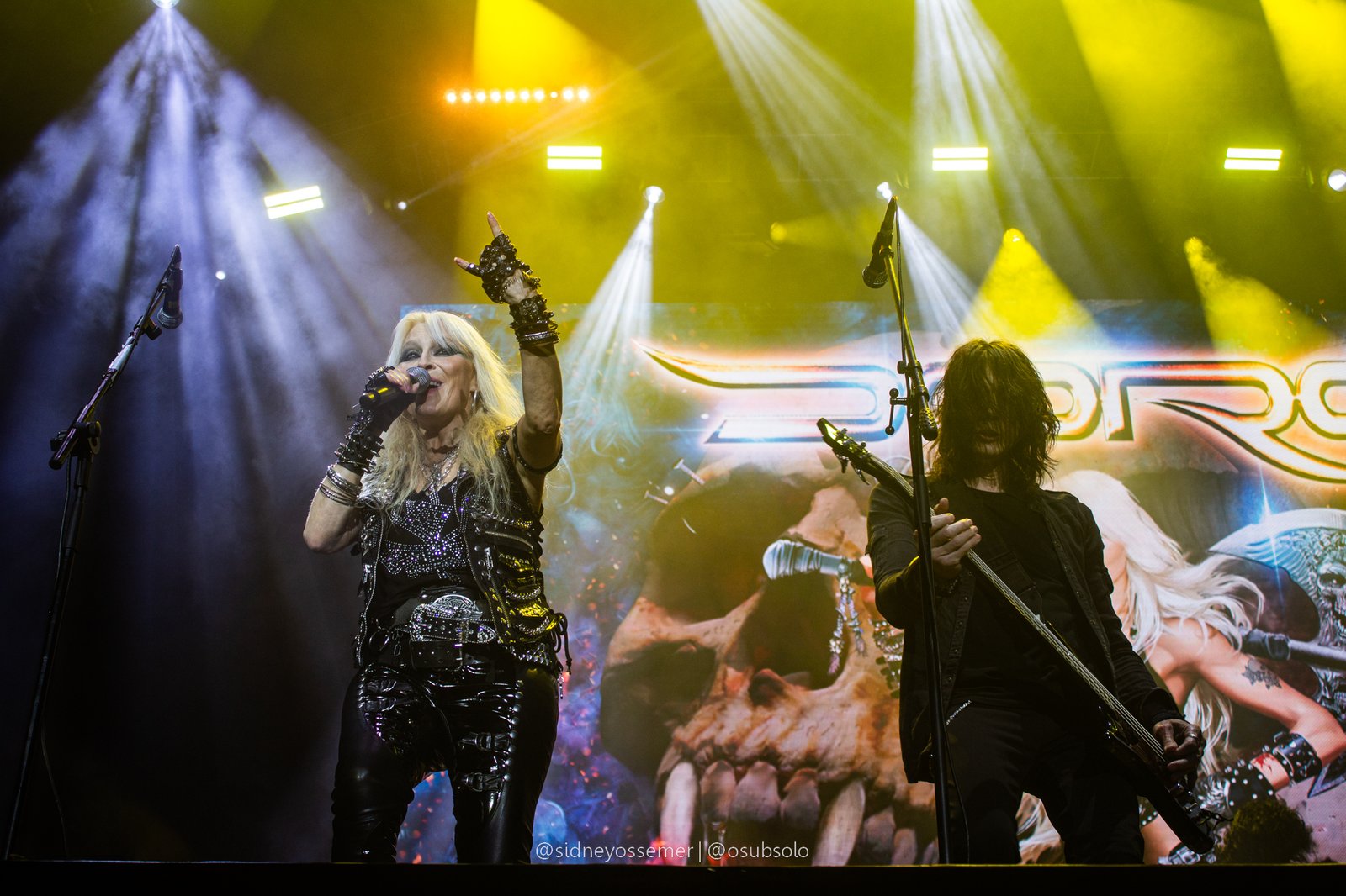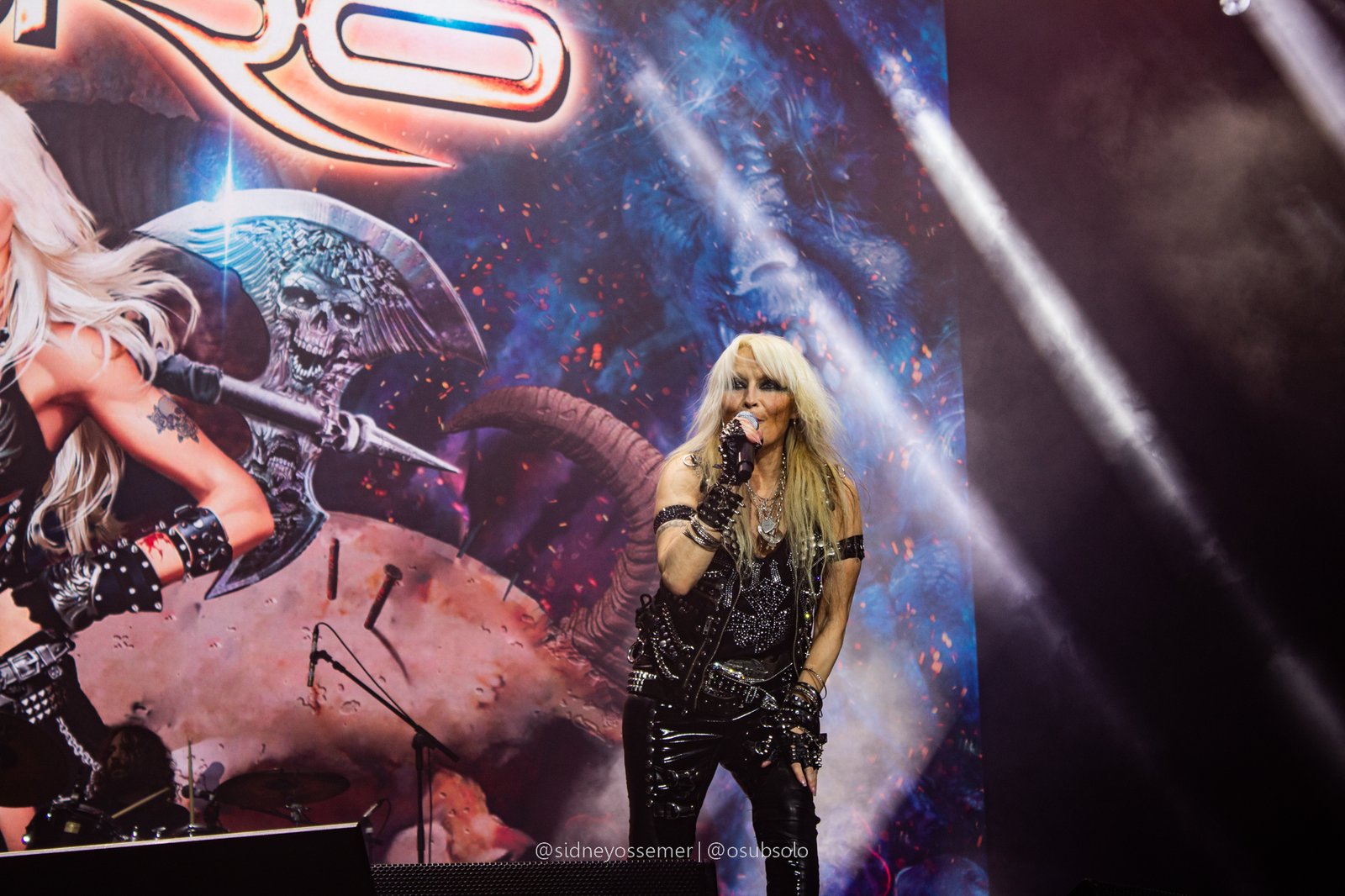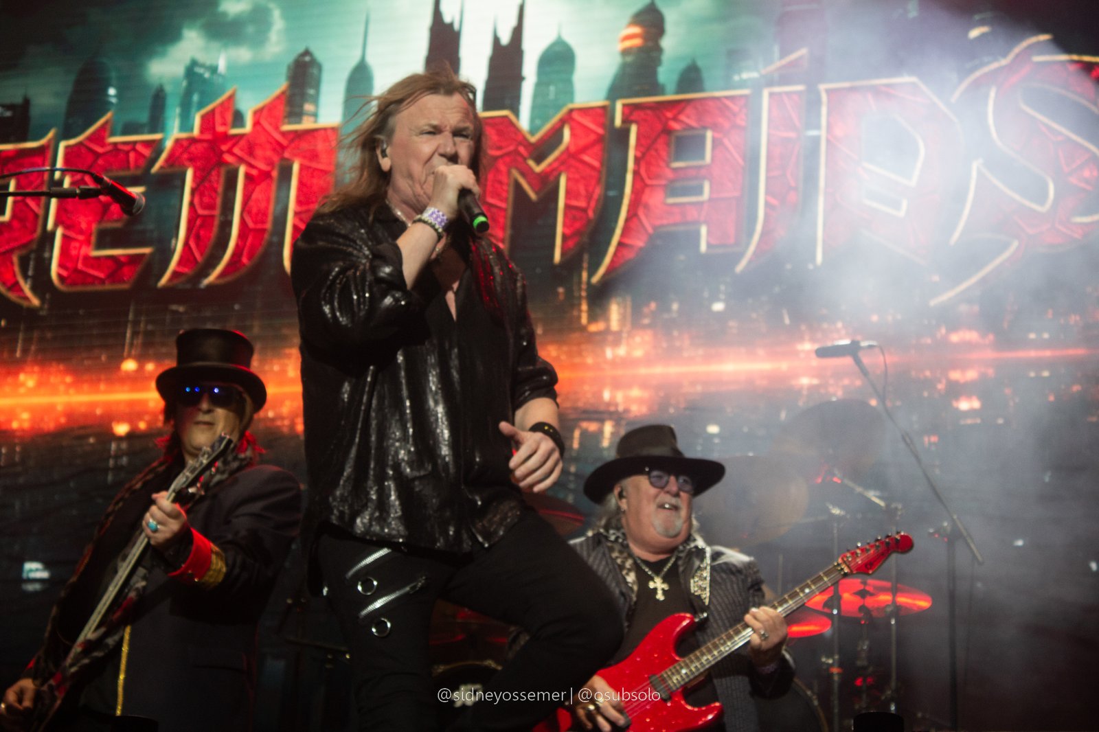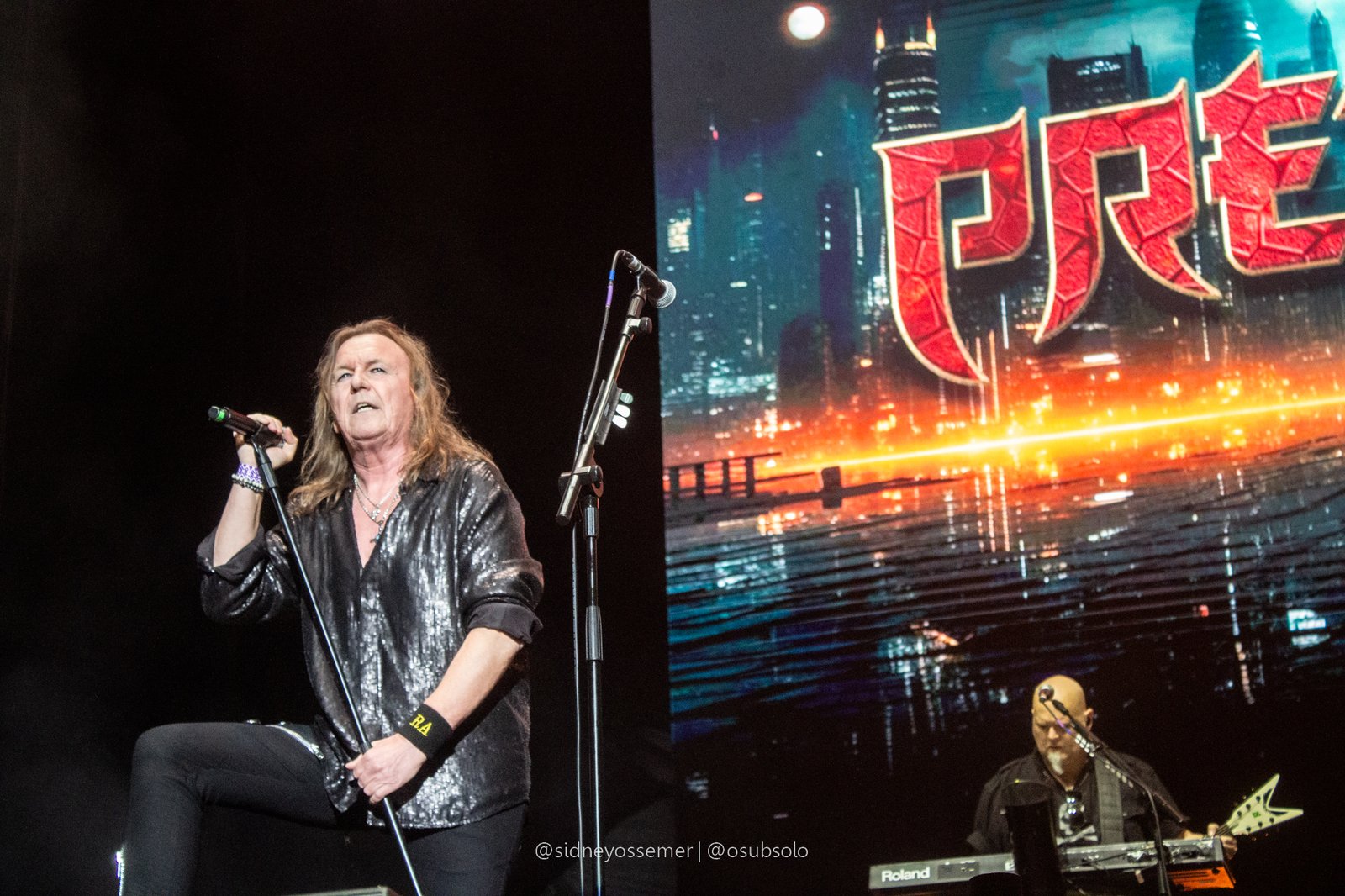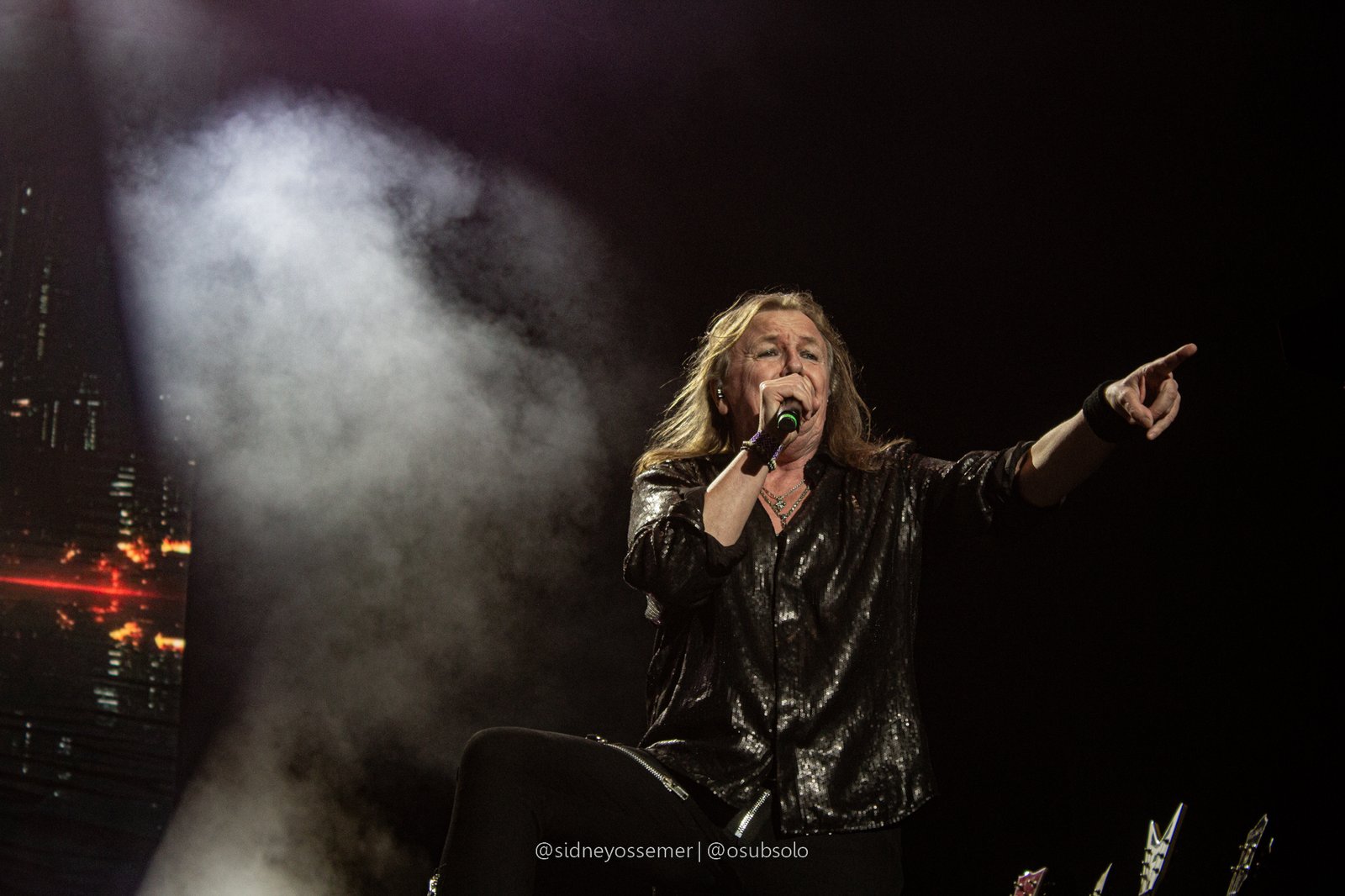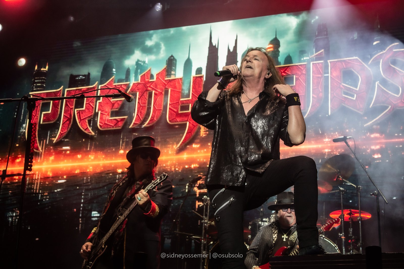 Com aquele backdrop digno dos anos 80, o metal tradicional ganhava força e coro em títulos como I Rule the Ruins, Burning the Witches, Für Immer e até mais “novas”, como Raise Your Fist in the Air. E, falando por novas, tivemos uma mais recente, de 2023, Fire in the Sky, que teve como co-compositor nosso Bill, a quem a rainha mostrava contínuo carinho e apreço, quase como se o mesmo fosse um reflexo do Brasil, na medida em que esta arriscava um português com algumas frases como “Vocês estão se divertindo?”, “Amo vocês” e “Estou muito feliz de vê-los novamente”.