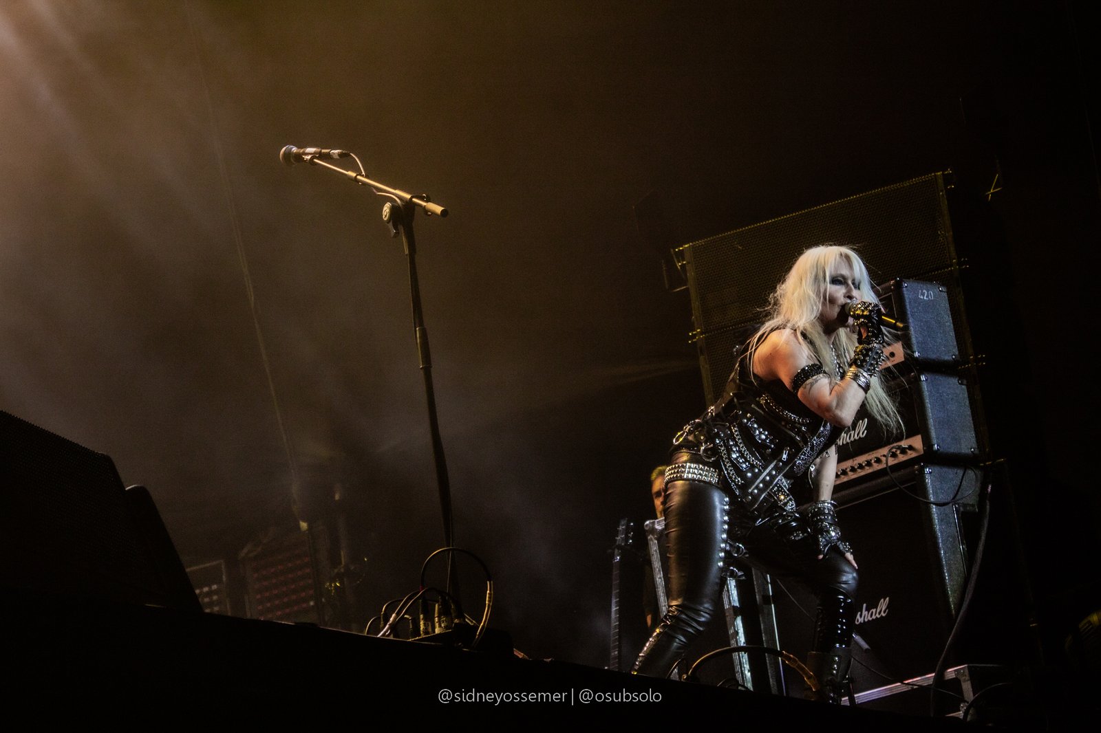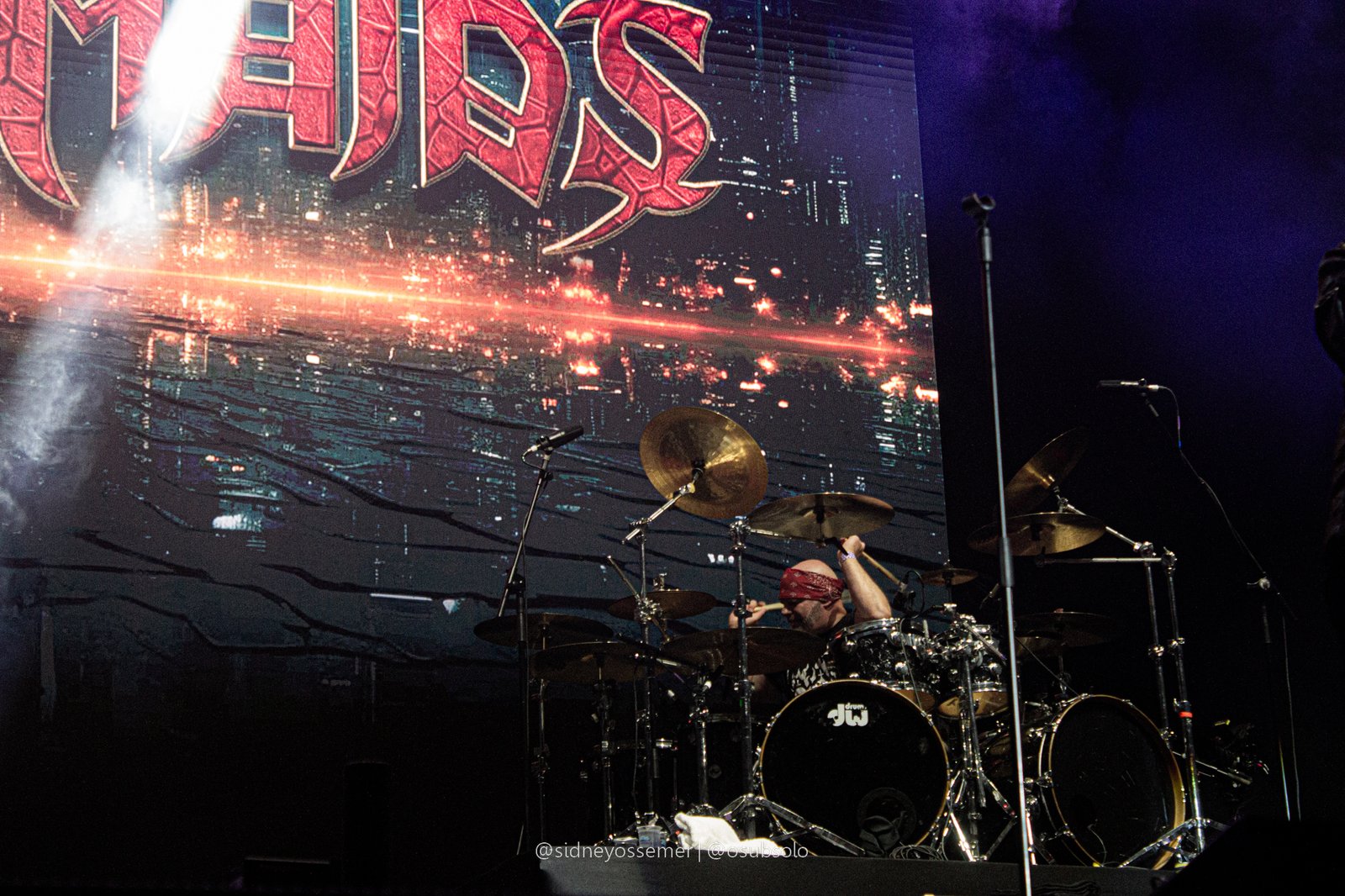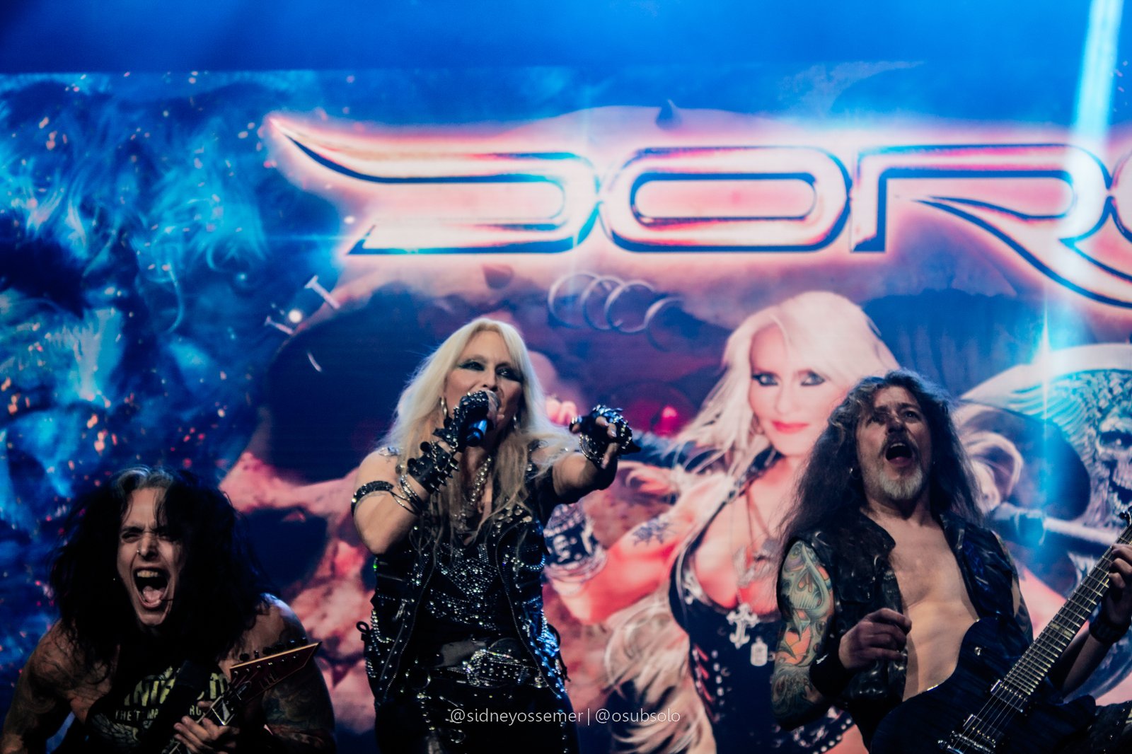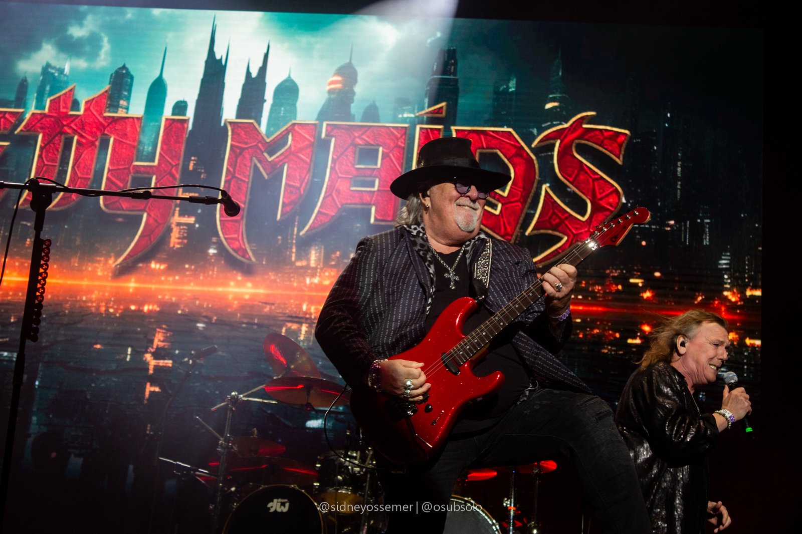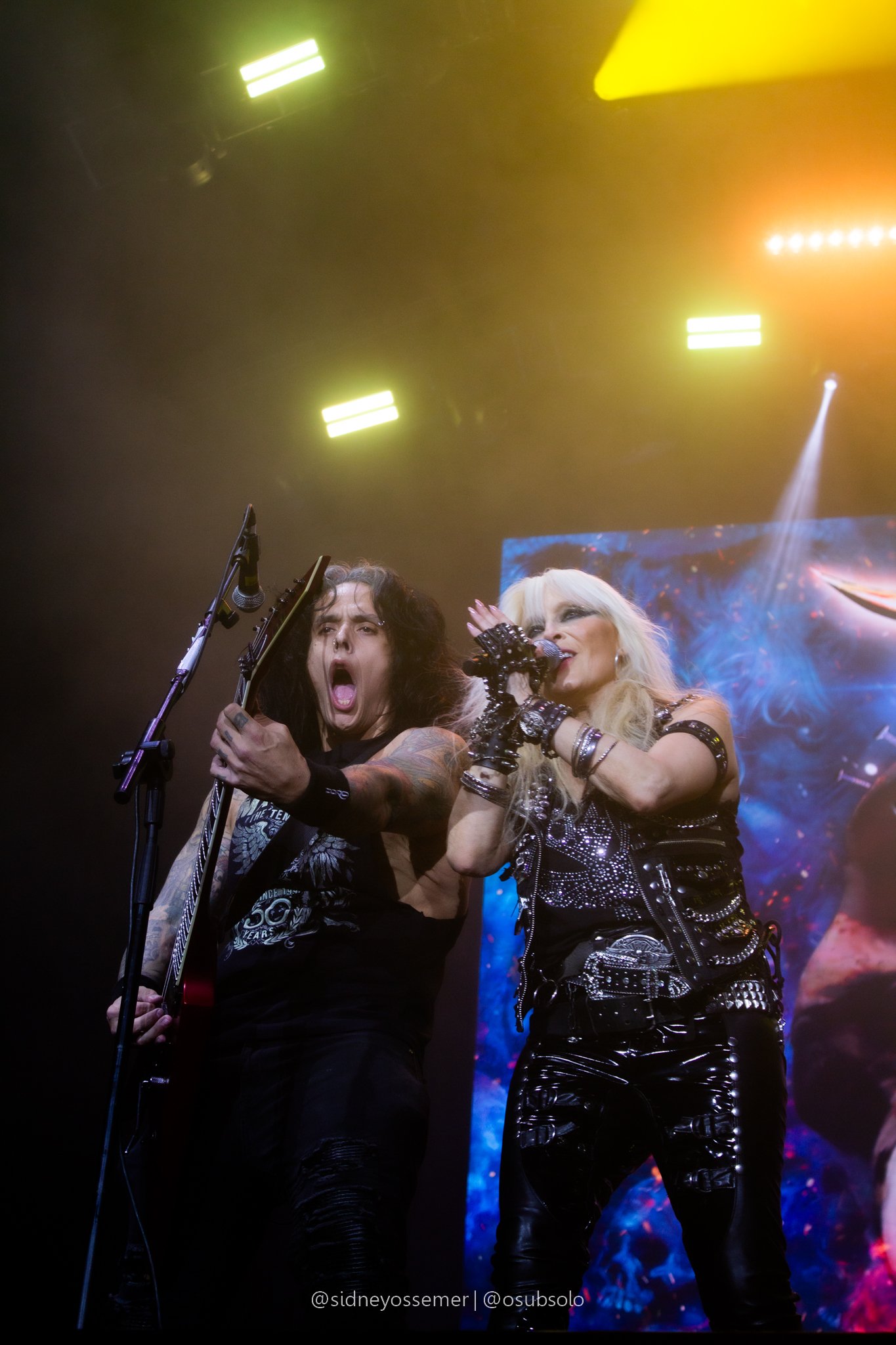 Com aquele backdrop digno dos anos 80, o metal tradicional ganhava força e coro em títulos como I Rule the Ruins, Burning the Witches, Für Immer e até mais “novas”, como Raise Your Fist in the Air. E, falando por novas, tivemos uma mais recente, de 2023, Fire in the Sky, que teve como co-compositor nosso Bill, a quem a rainha mostrava contínuo carinho e apreço, quase como se o mesmo fosse um reflexo do Brasil, na medida em que esta arriscava um português com algumas frases como “Vocês estão se divertindo?”, “Amo vocês” e “Estou muito feliz de vê-los novamente”.