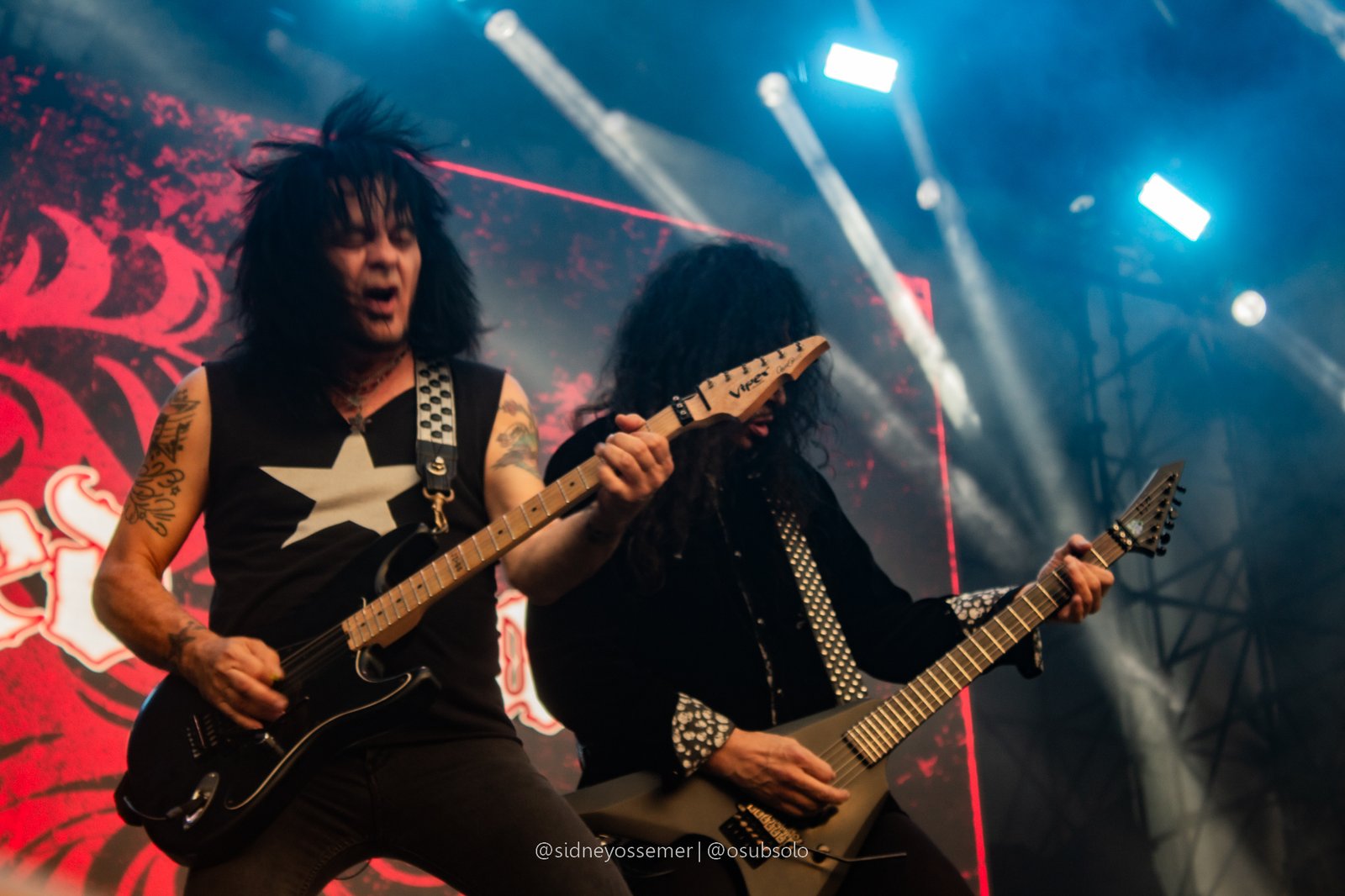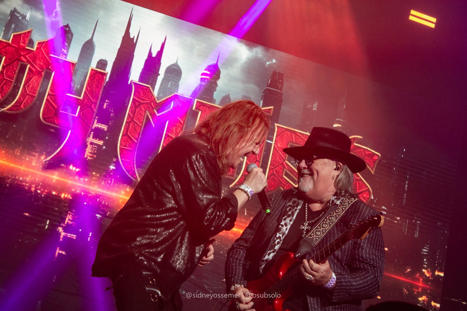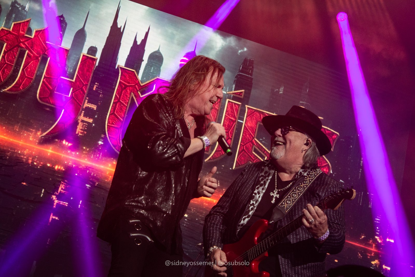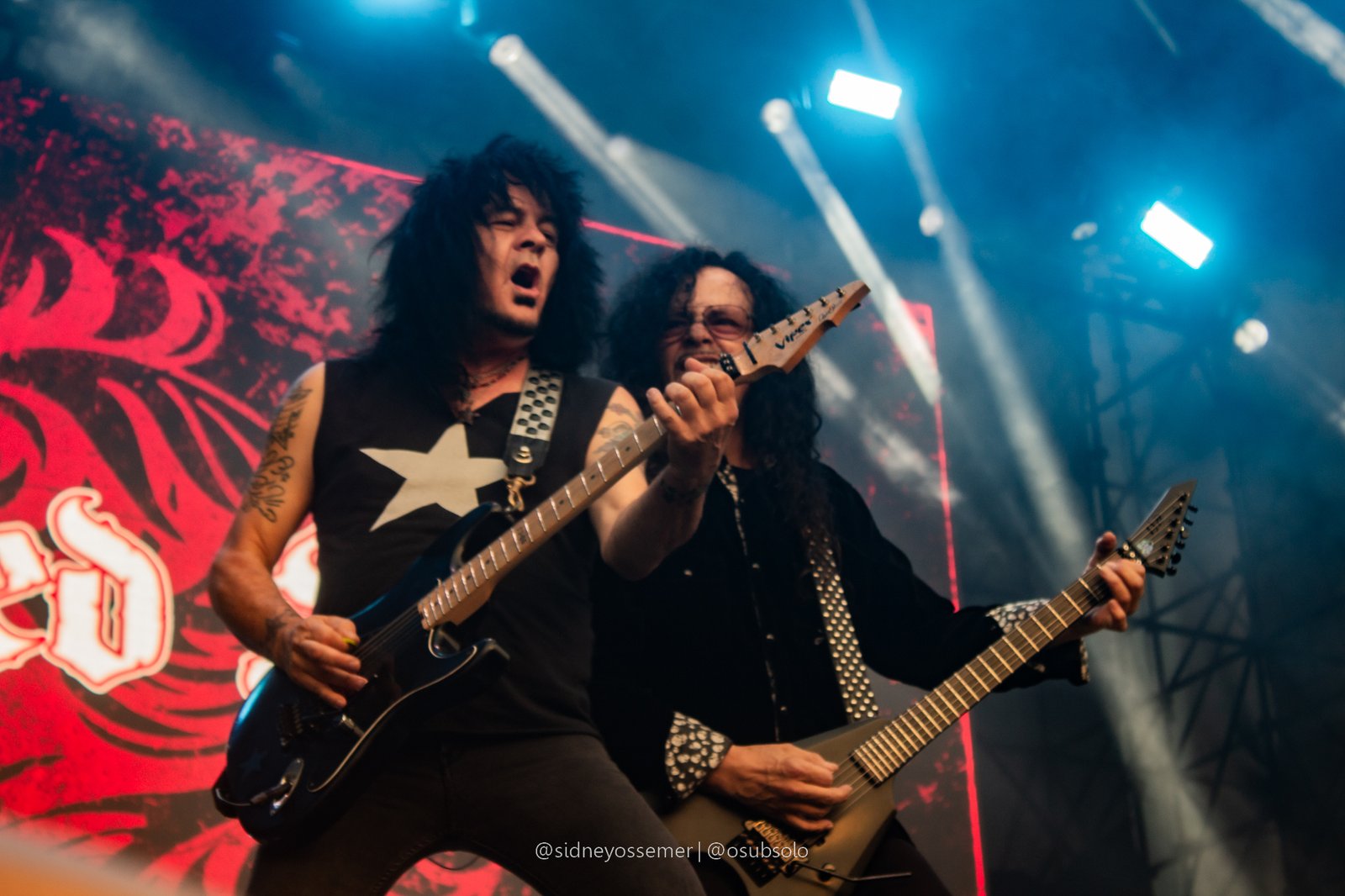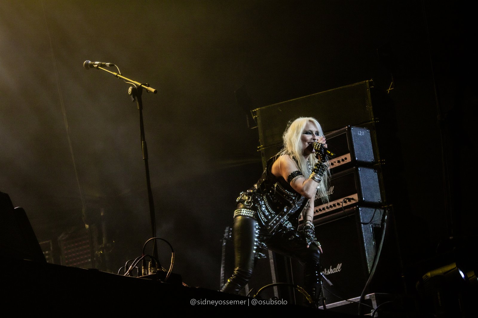 Com aquele backdrop digno dos anos 80, o metal tradicional ganhava força e coro em títulos como I Rule the Ruins, Burning the Witches, Für Immer e até mais “novas”, como Raise Your Fist in the Air. E, falando por novas, tivemos uma mais recente, de 2023, Fire in the Sky, que teve como co-compositor nosso Bill, a quem a rainha mostrava contínuo carinho e apreço, quase como se o mesmo fosse um reflexo do Brasil, na medida em que esta arriscava um português com algumas frases como “Vocês estão se divertindo?”, “Amo vocês” e “Estou muito feliz de vê-los novamente”.