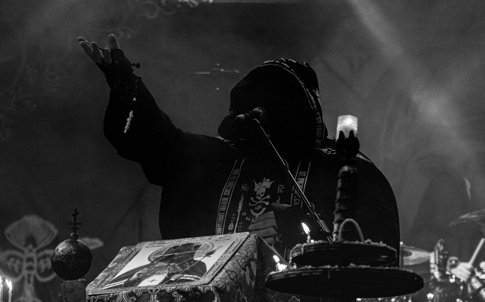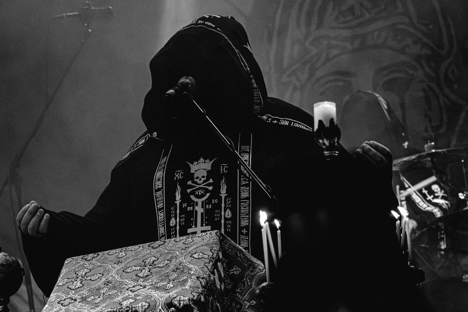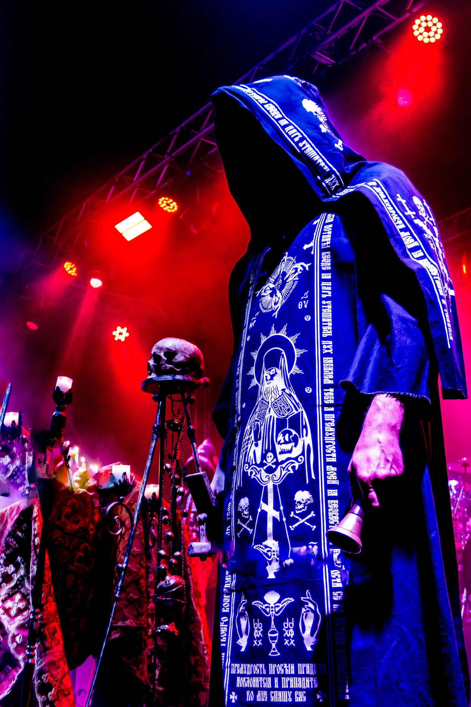 Por volta das 20h15, as luzes diminuíram, e a expectativa tomou conta do público quando o Batushka começou a se apresentar. O show iniciou de forma dramática, com duas figuras encapuzadas entrando no palco para acender velas, criando uma atmosfera de mistério e antecipação. À medida que a introdução ecoava pelo espaço, os membros da banda entraram em cena, culminando com o vocalista defumando o ambiente, intensificando o ar ritualístico do evento.