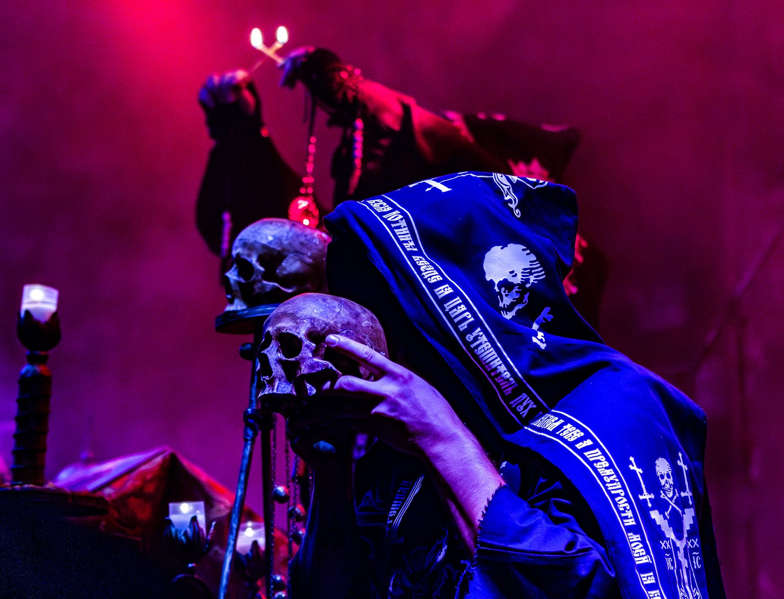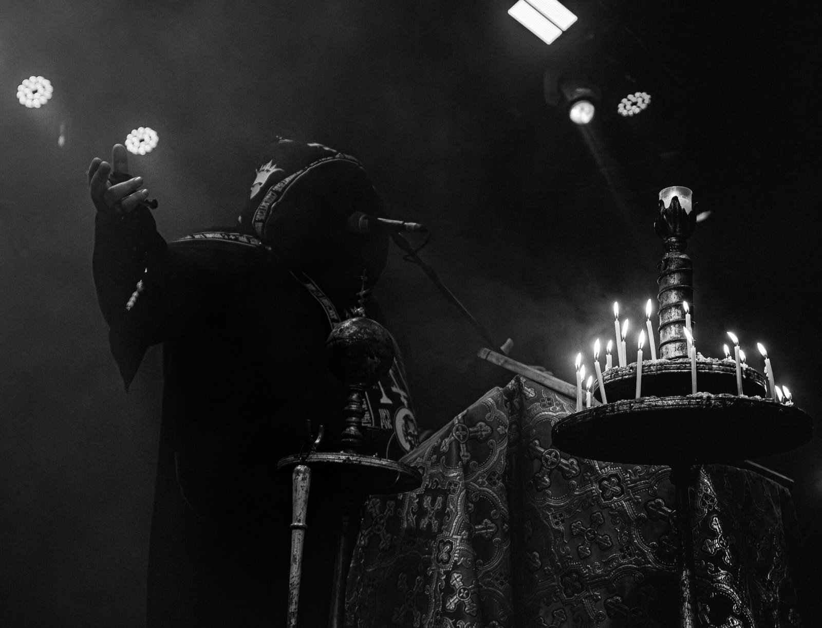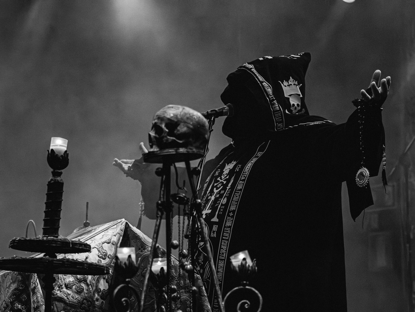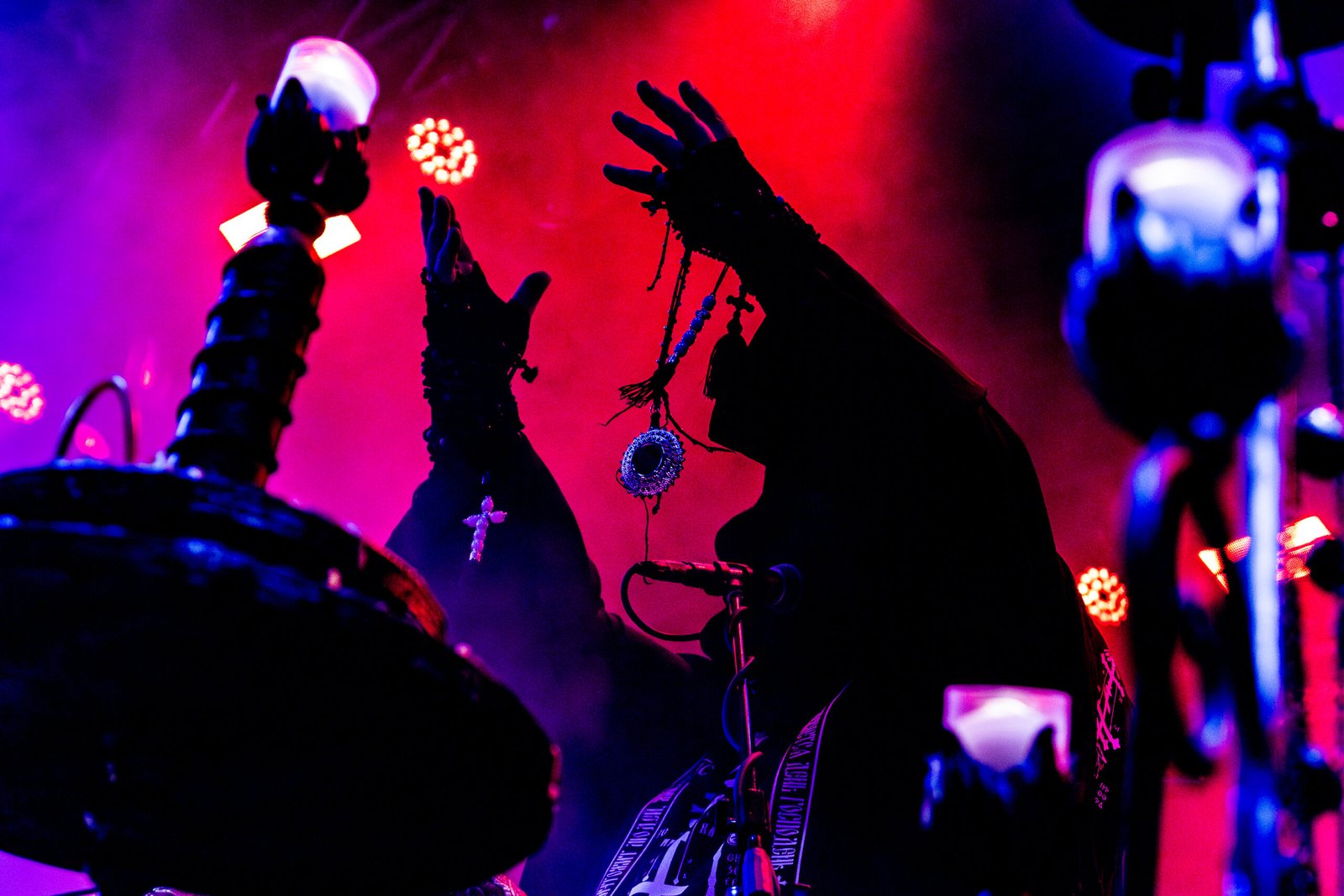 Por volta das 20h15, as luzes diminuíram, e a expectativa tomou conta do público quando o Batushka começou a se apresentar. O show iniciou de forma dramática, com duas figuras encapuzadas entrando no palco para acender velas, criando uma atmosfera de mistério e antecipação. À medida que a introdução ecoava pelo espaço, os membros da banda entraram em cena, culminando com o vocalista defumando o ambiente, intensificando o ar ritualístico do evento.
