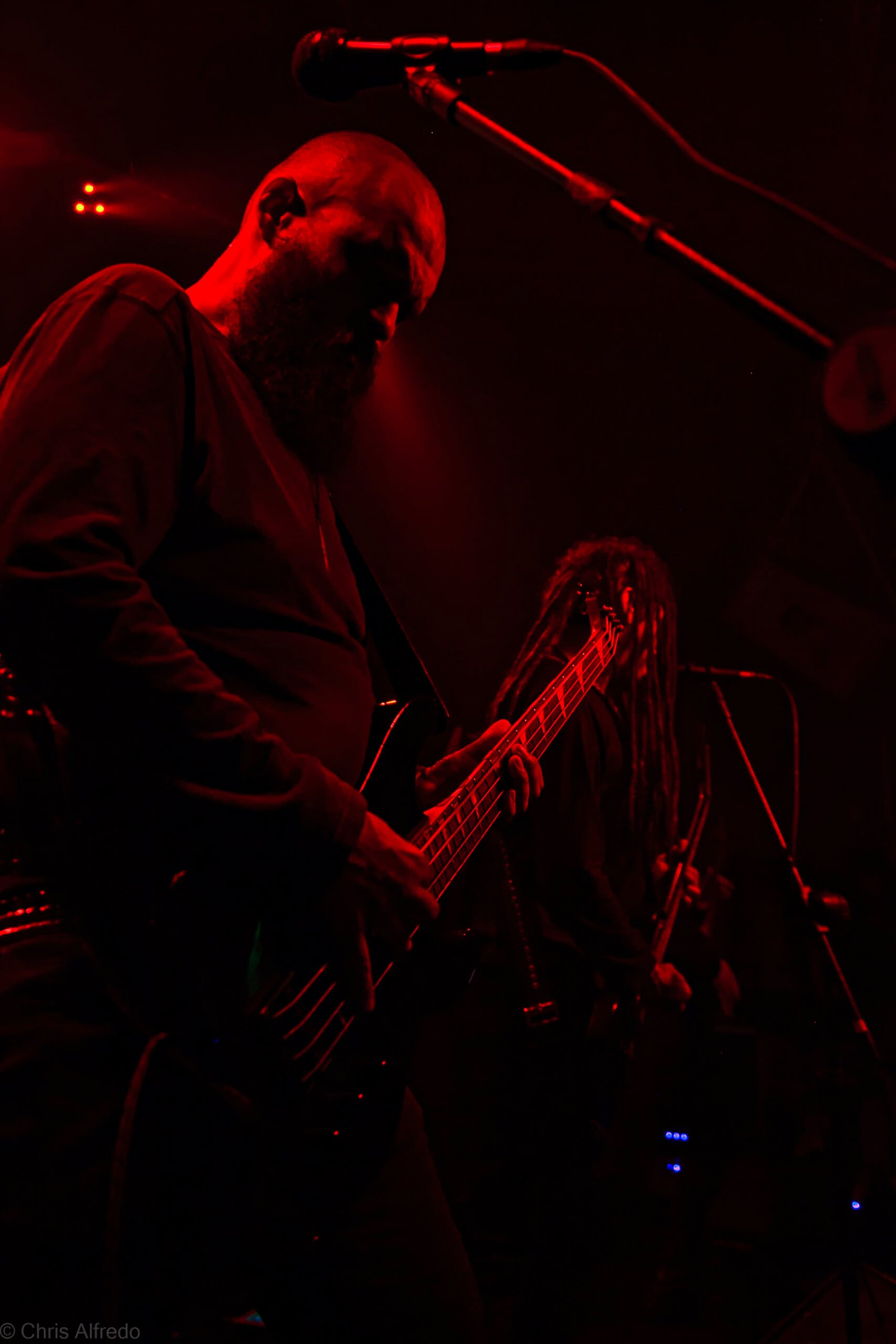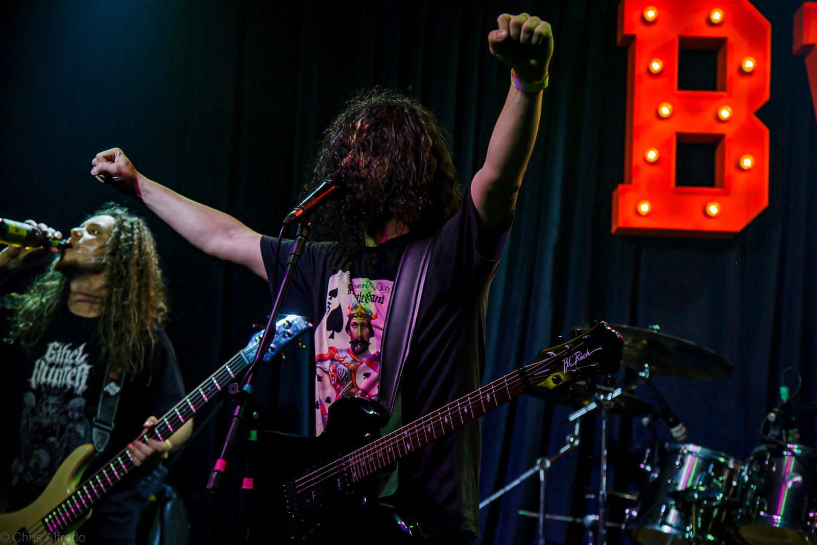 Assim que a banda entrou no palco, me virei e disse: “Eu AMO eles”. E Scarlet respondeu: “E eu amo ele”, apontando para o baixista Eduardo, seu esposo. Estávamos ali, eu, Thais e Scarlet, minhas novas amigas de rolê, ao pé do palco, enquanto o fervo acontecia atrás de nós, todos os headbangers batendo cabeça. O mais puro Death Metal, com classe. Músicos que admiro e respeito demais, com a sempre impecável presença de palco da banda.