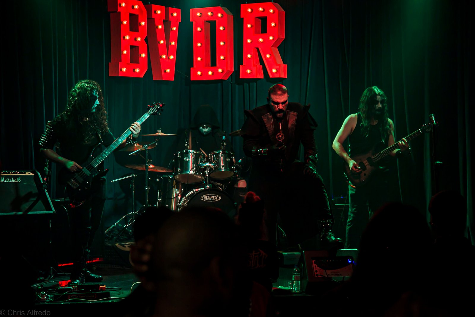 A banda de Black Metal, que já havia tocado com o Vazio em Florianópolis, veio para a segunda data da turnê pelo sul. Foi a terceira banda da noite. Após algumas dificuldades com o baixo, que precisaram de socorro imediato do roadie, o show foi temporariamente interrompido depois das faixas Dark Ages e Over My Hands. O problema foi resolvido provisoriamente, e a banda seguiu para o final do set sem maiores contratempos. Profissionalismo de sempre, performance impecável e, claro, com seu característico corpse paint, que, dessa vez, não vi sendo feito no banheiro feminino, rs.