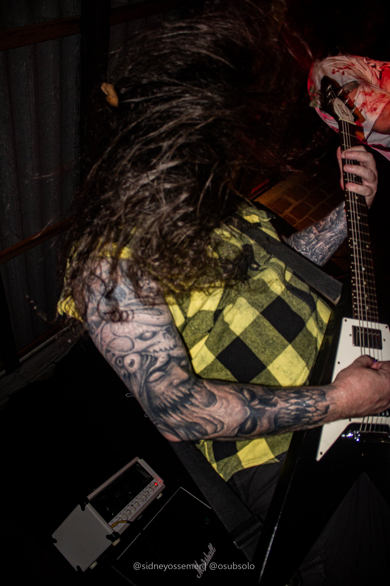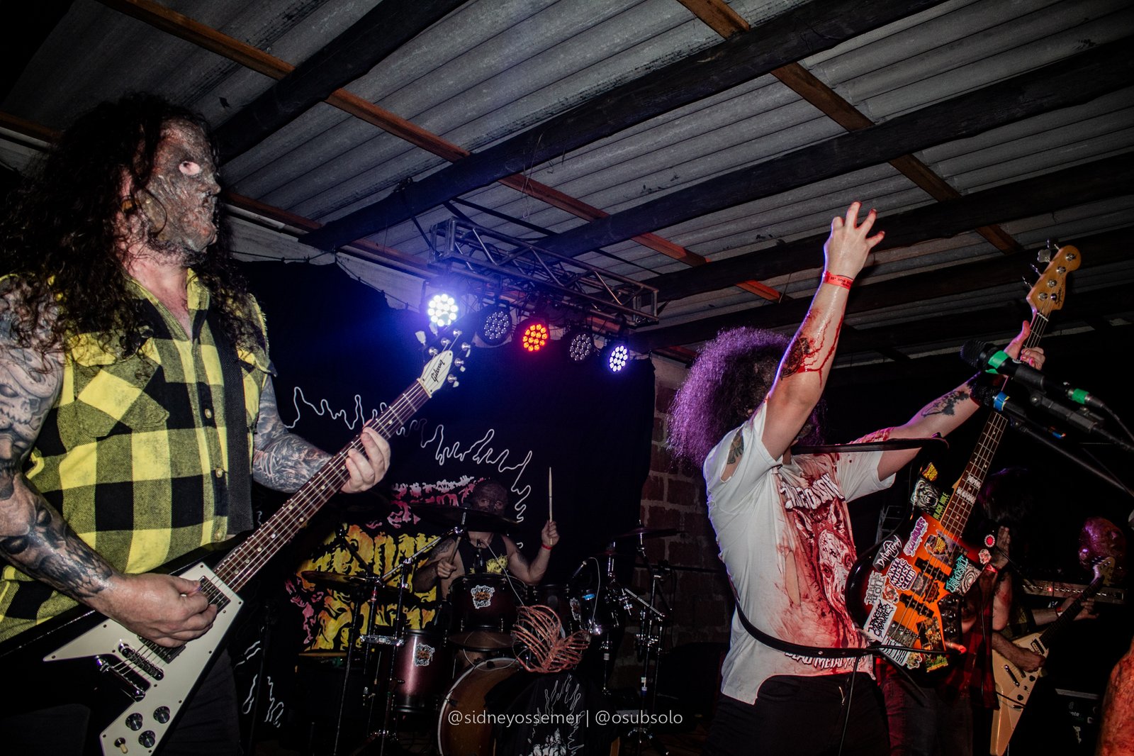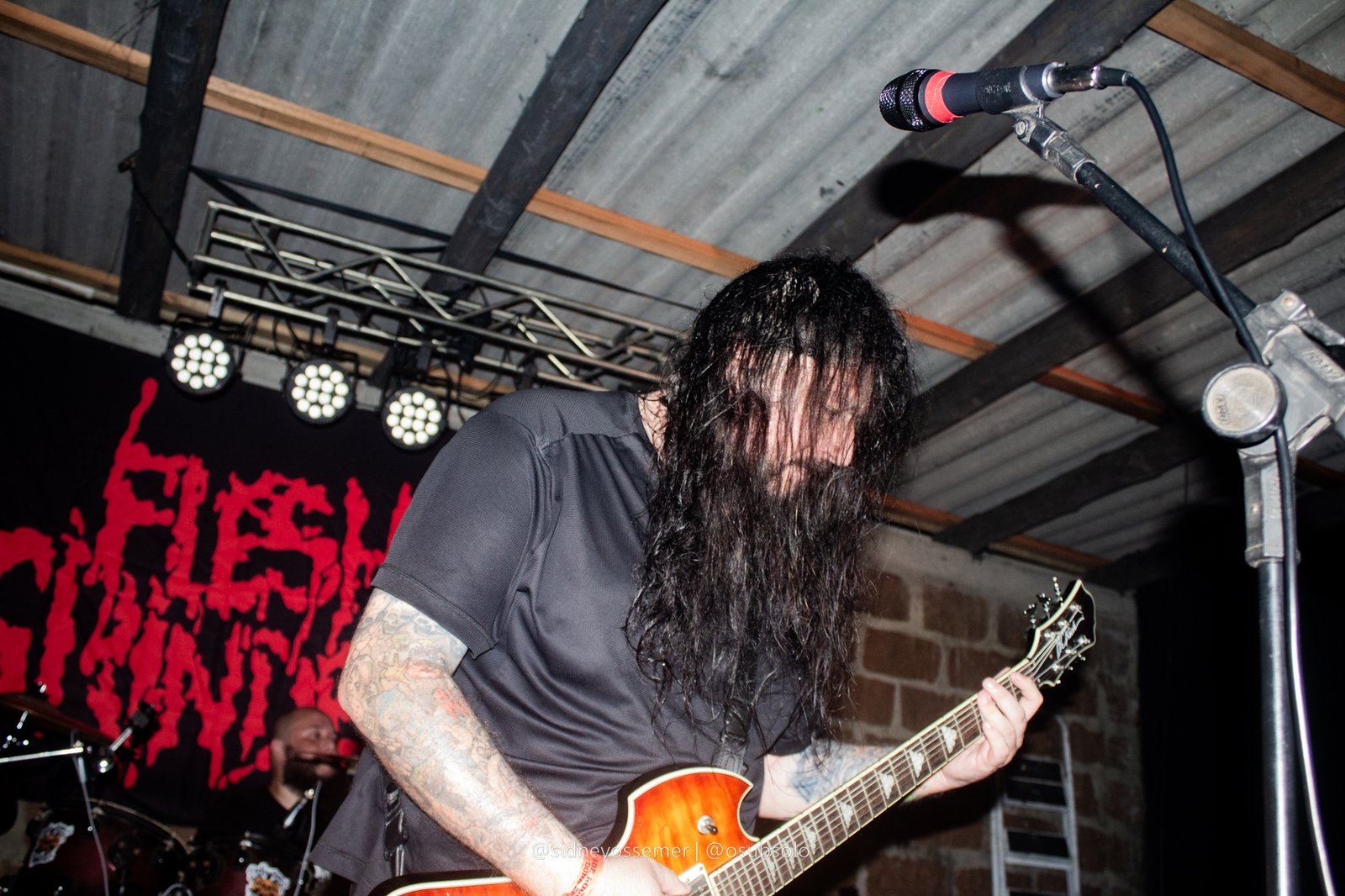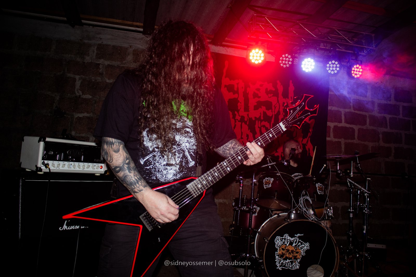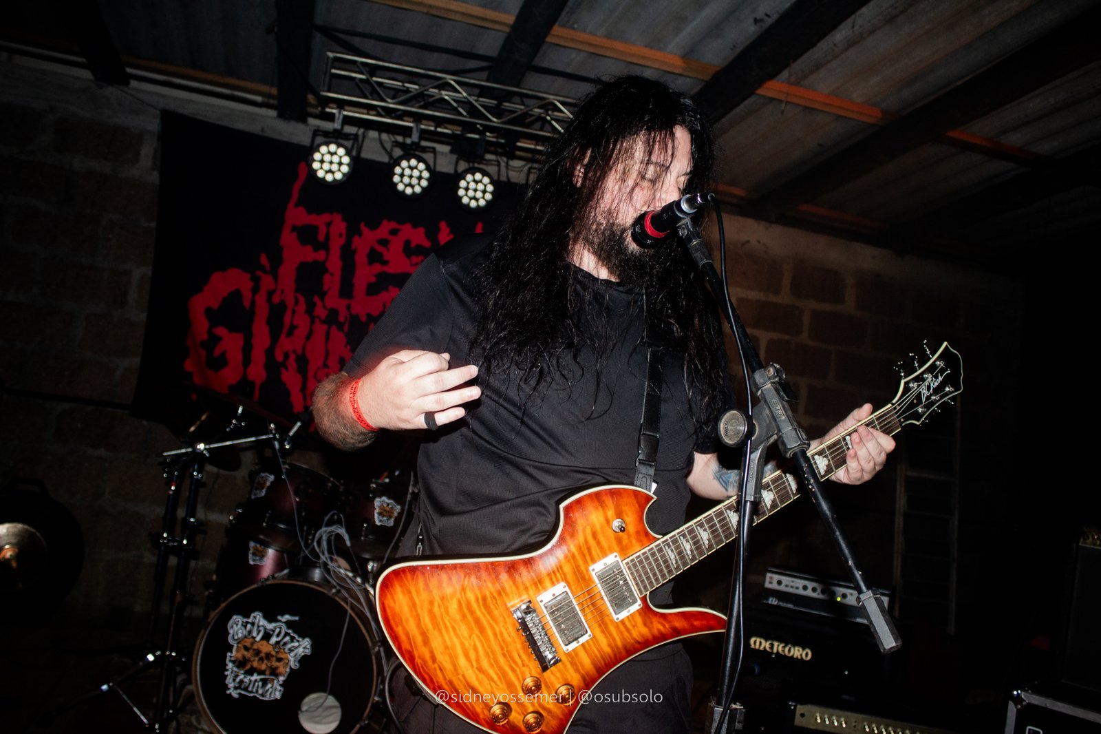 É, meu amigos. Parece que o nosso querido Bob escolheu a dedo as bandas para um evento chamado Butcher Extreme. Só nomes de peso, e consolidados na cena se apresentando no palco, e com Flesh Grinder não poderia ser diferente. Há mais de 30 anos na estrada, um dos ícones do Death Metal/Splatter catarinense, a banda possui uma presença marcante, que, desde o início, chama a atenção dos presentes, com seu peso inconfundível.