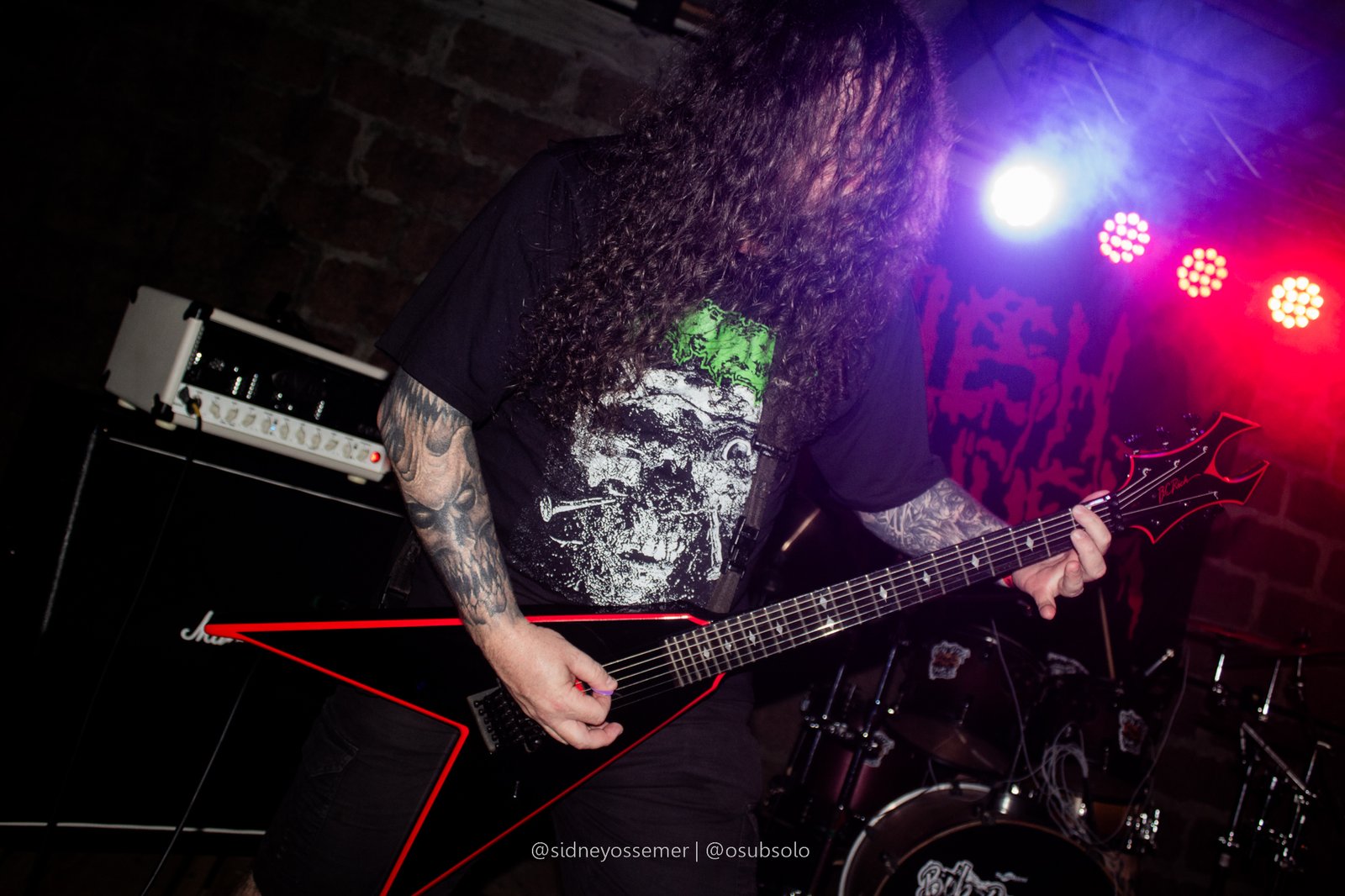 É, meu amigos. Parece que o nosso querido Bob escolheu a dedo as bandas para um evento chamado Butcher Extreme. Só nomes de peso, e consolidados na cena se apresentando no palco, e com Flesh Grinder não poderia ser diferente. Há mais de 30 anos na estrada, um dos ícones do Death Metal/Splatter catarinense, a banda possui uma presença marcante, que, desde o início, chama a atenção dos presentes, com seu peso inconfundível.