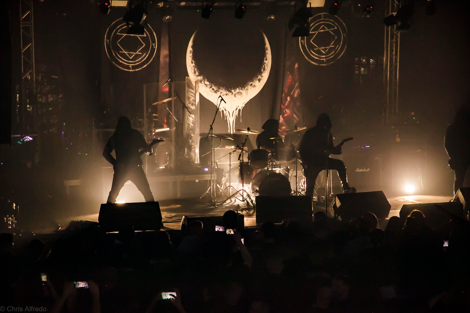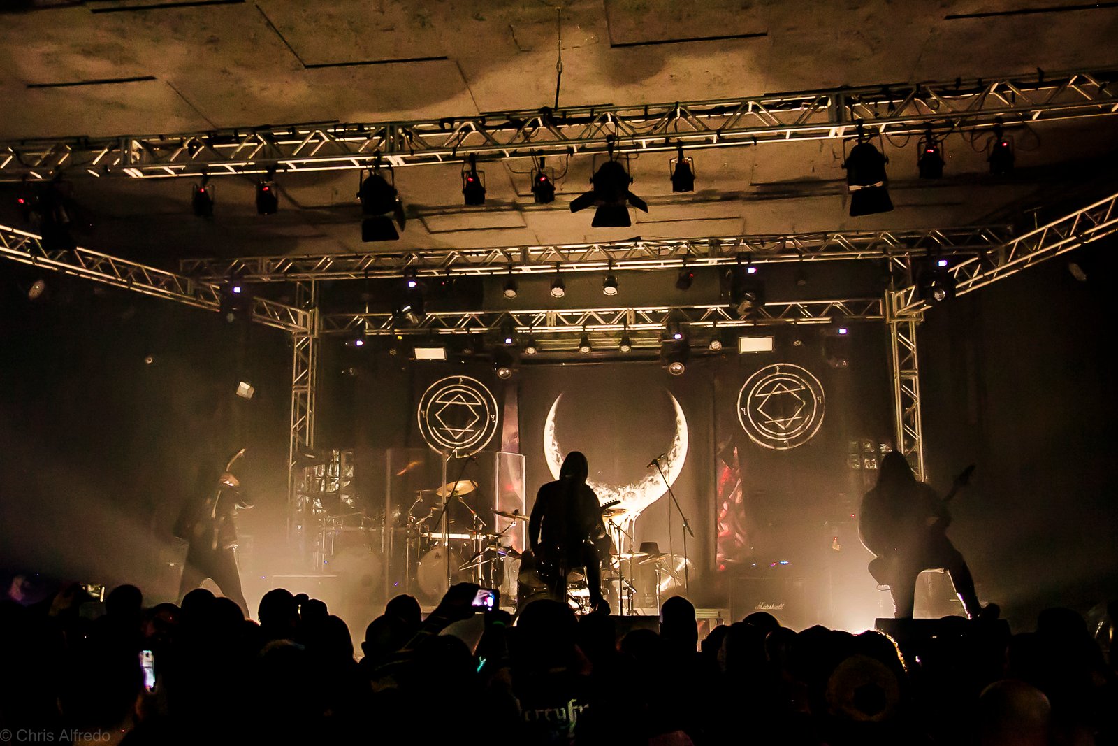 A abertura ficou por conta dos norte-americanos do Uada, que acompanham o Cradle of Filth em toda a turnê. O quarteto de Black Metal entregou um show denso, hipnótico e envolto em completa escuridão, literalmente. A escolha estética da quase ausência de iluminação no palco foi tão marcante quanto polêmica, dificultando bastante o trabalho dos fotógrafos. O fato é que a performance da banda foi comentada intensamente, ainda assim, o clima sombrio e a atmosfera ritualística conquistaram os presentes, funcionando como uma preparação perfeita para a catarse que viria a seguir com os britânicos.