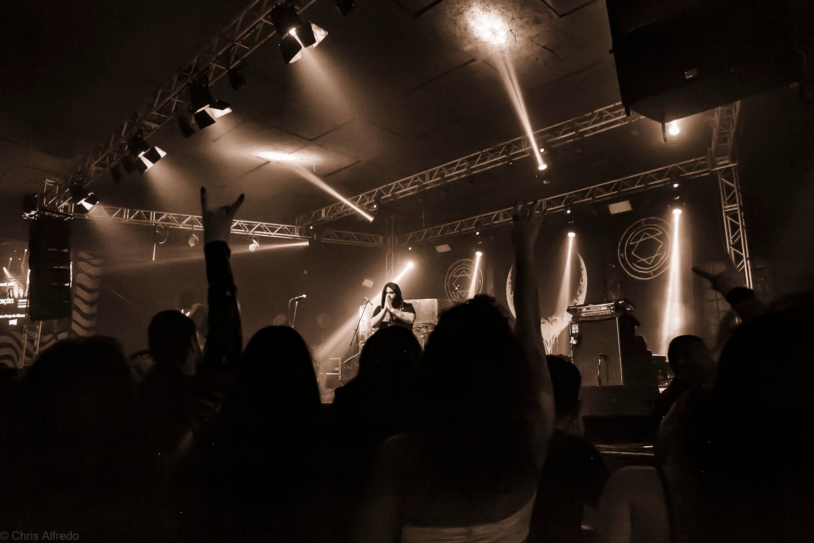A abertura ficou por conta dos norte-americanos do Uada, que acompanham o Cradle of Filth em toda a turnê. O quarteto de Black Metal entregou um show denso, hipnótico e envolto em completa escuridão, literalmente. A escolha estética da quase ausência de iluminação no palco foi tão marcante quanto polêmica, dificultando bastante o trabalho dos fotógrafos. O fato é que a performance da banda foi comentada intensamente, ainda assim, o clima sombrio e a atmosfera ritualística conquistaram os presentes, funcionando como uma preparação perfeita para a catarse que viria a seguir com os britânicos.