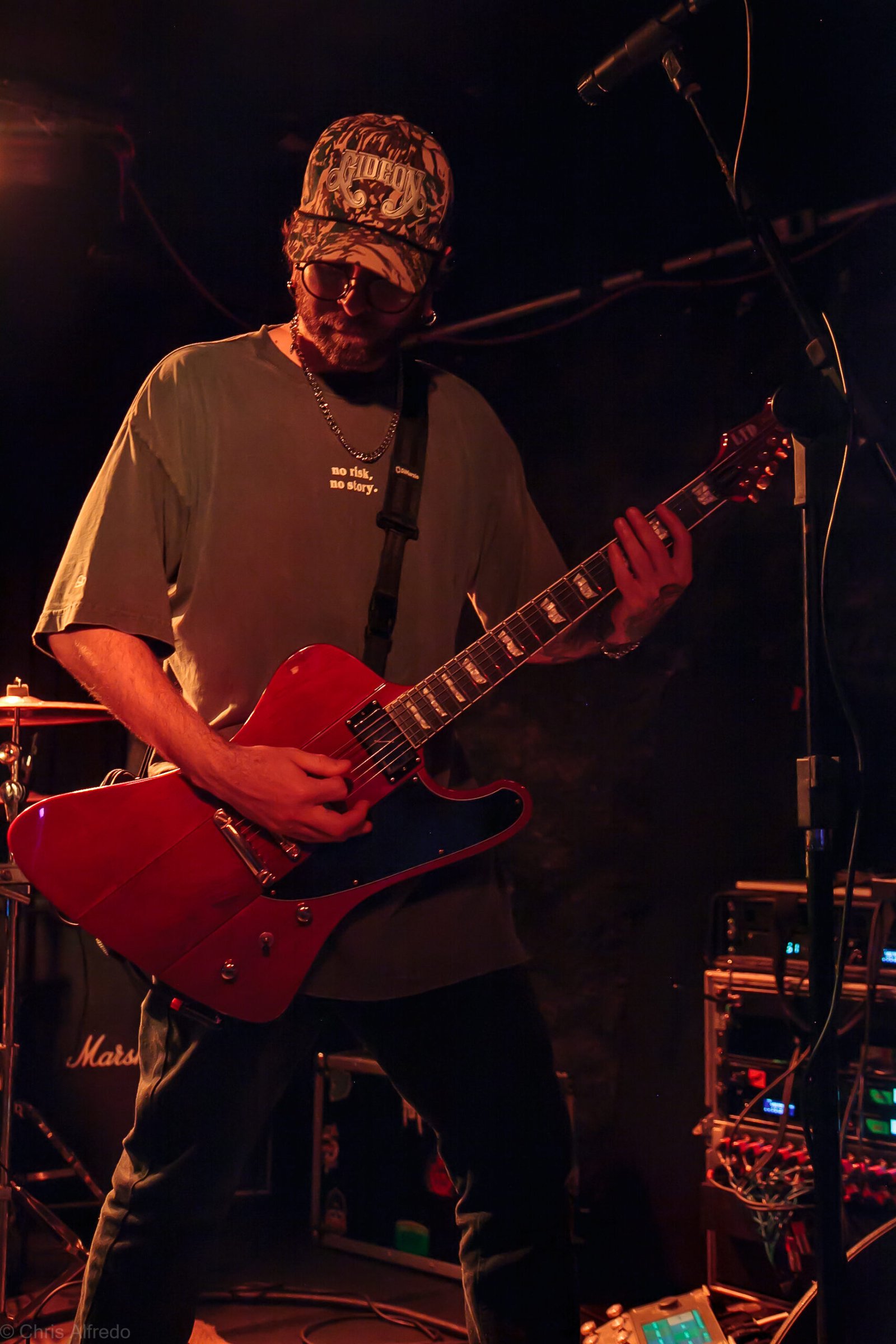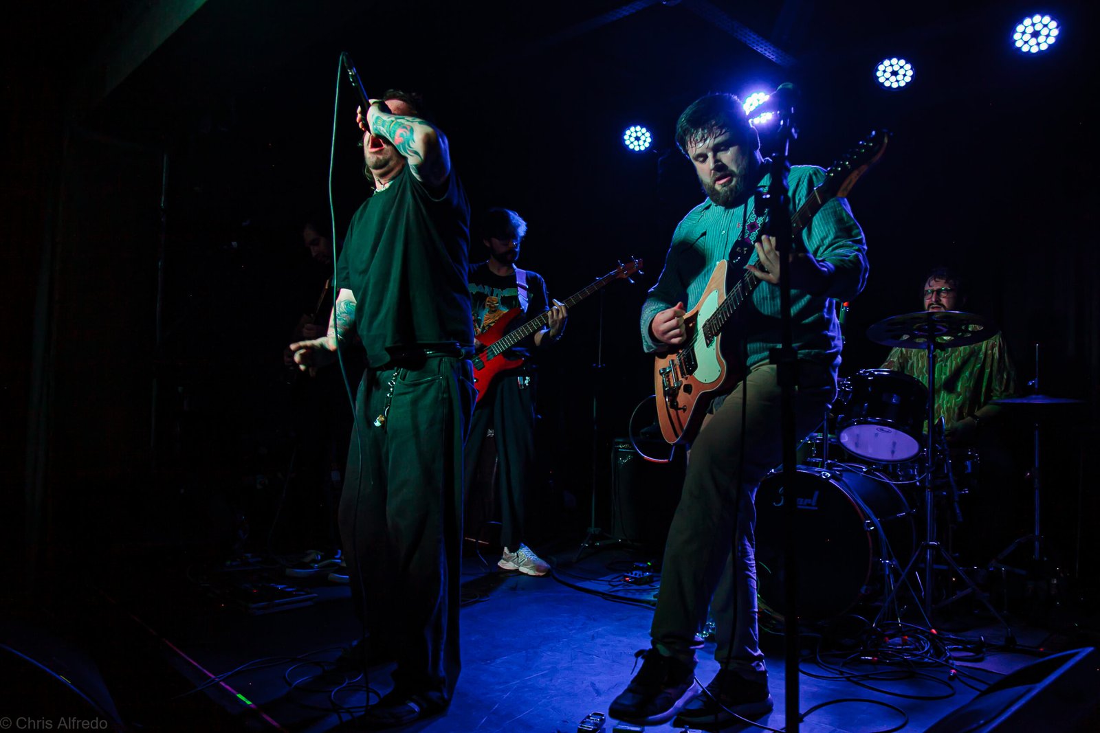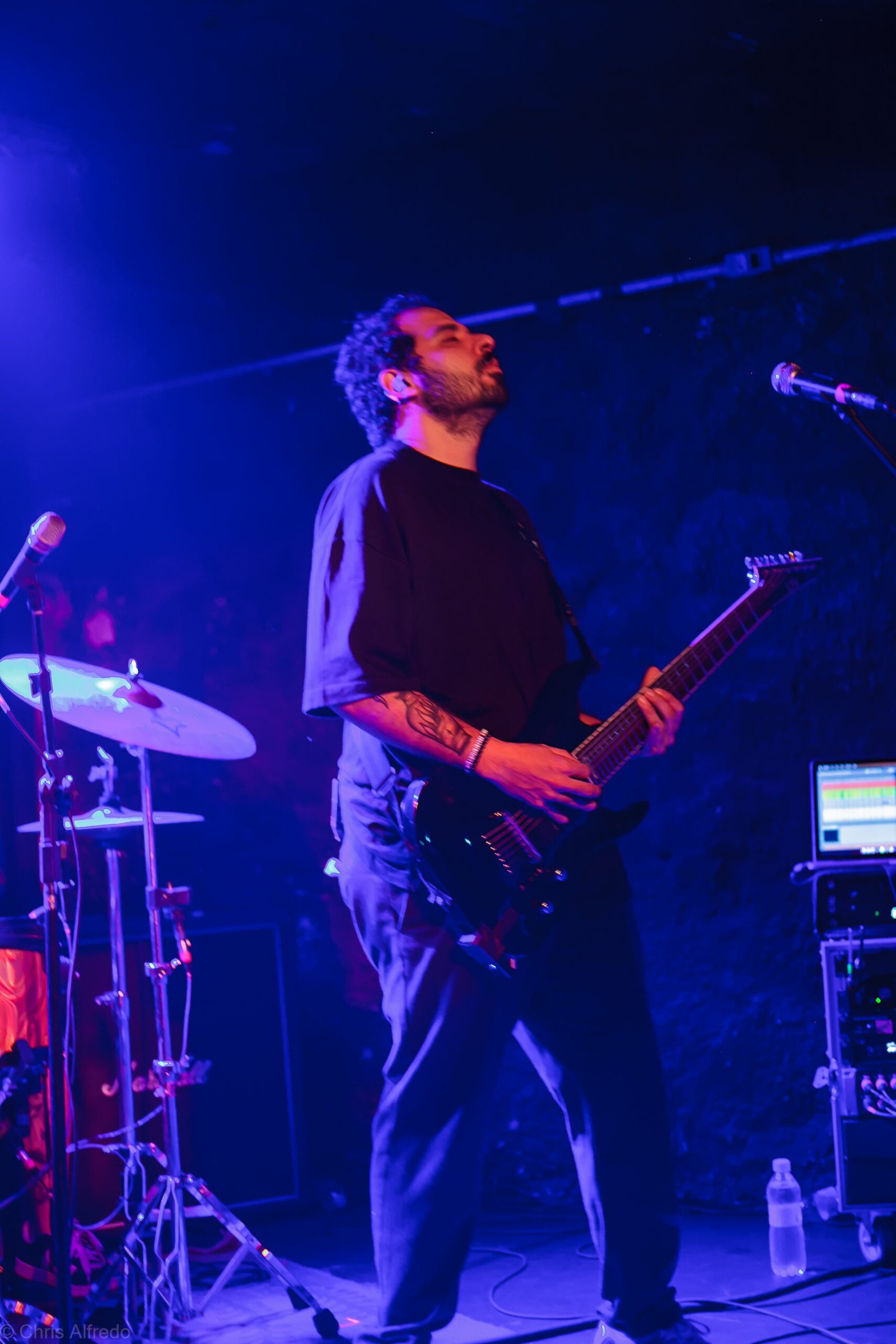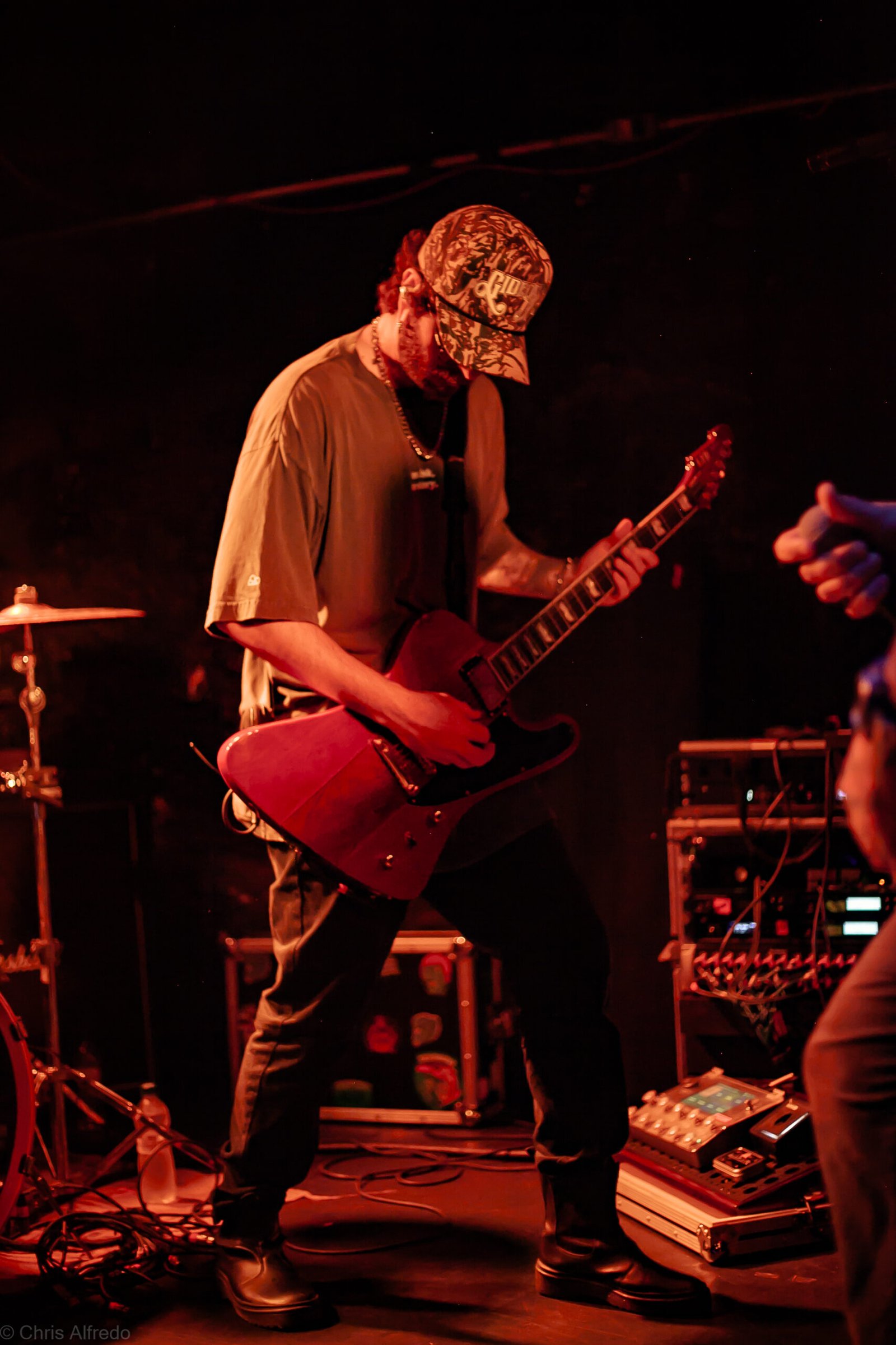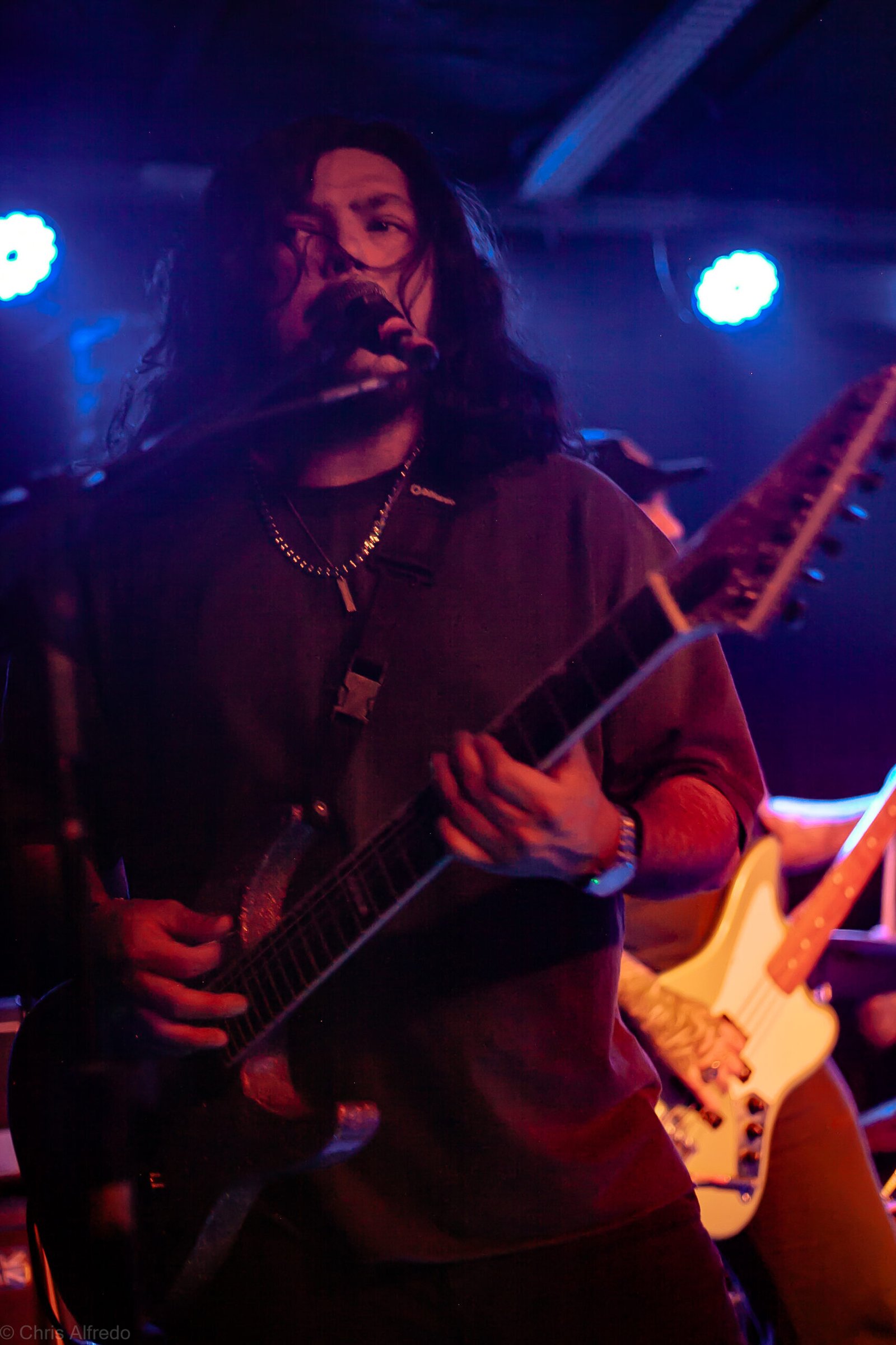 A performance contou com uma combinação de instrumentos bem equilibrada: a bateria firme, o baixo consistente e as guitarras criando camadas que sustentaram a intensidade do show. A iluminação sóbria e a disposição do palco reforçaram o clima intimista e autêntico da apresentação, colocando o público no centro da experiência.