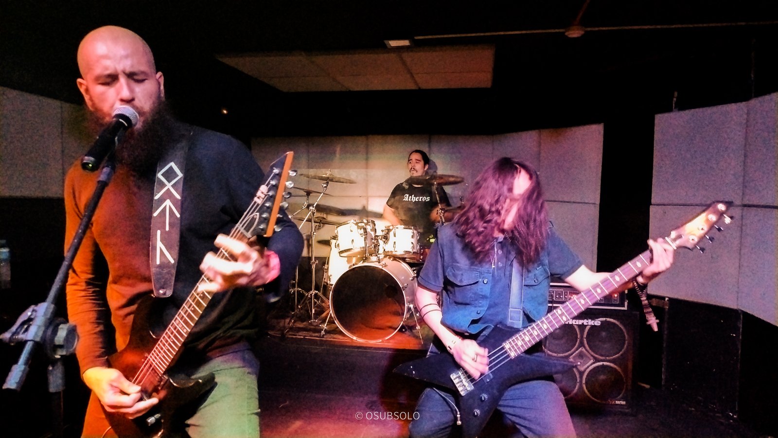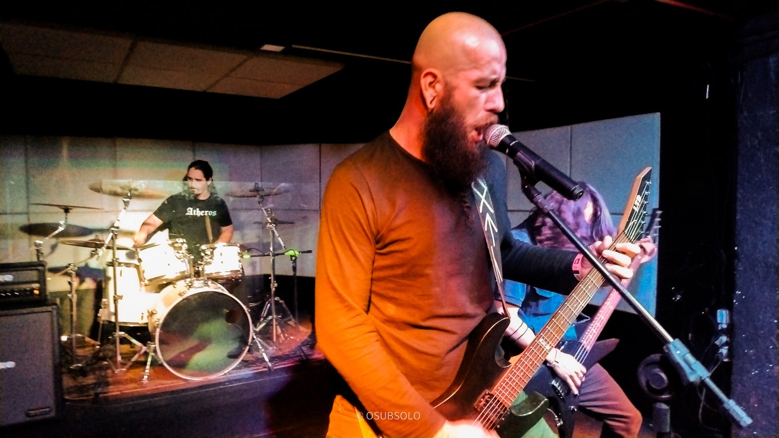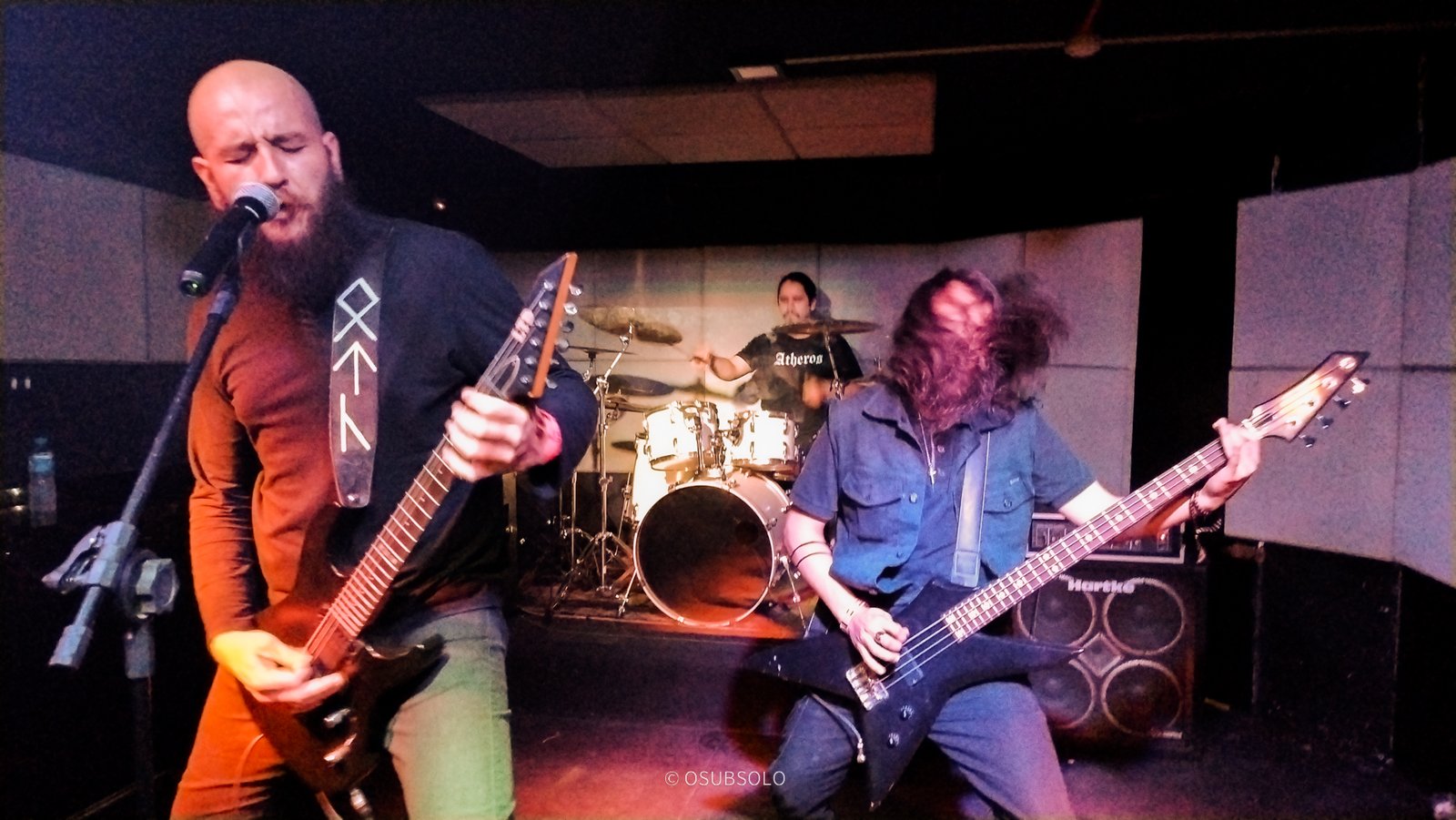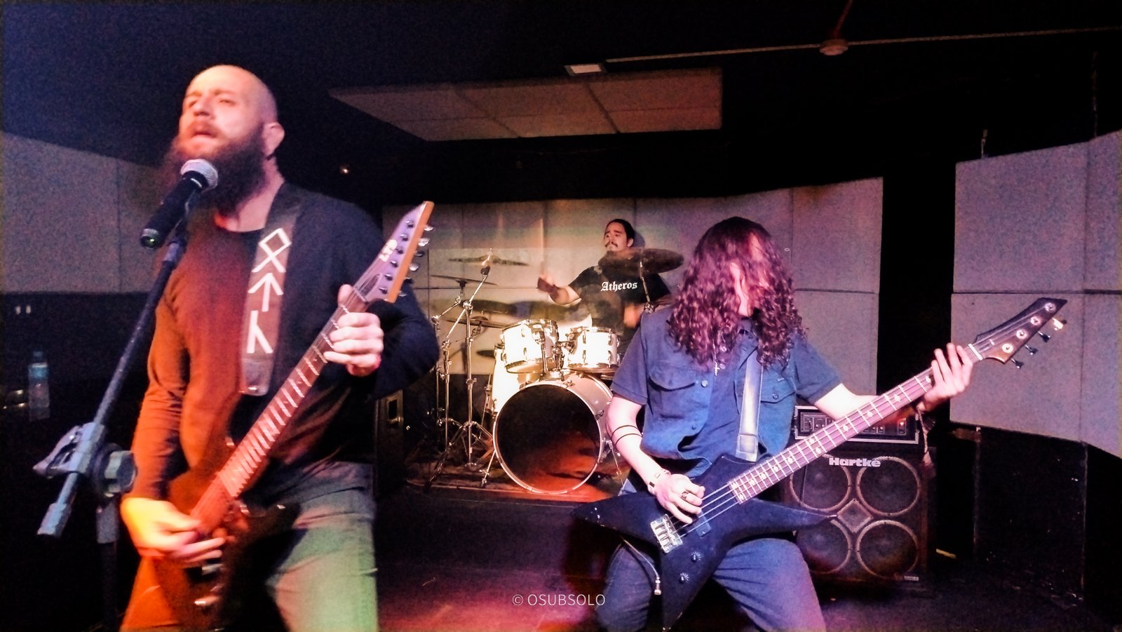 Continuando nossa saga, temos no palco agora, Atheros para trazer um pouco de Death Metal para o público da Box Club. Com um lineup enxuto composto por um trio, se você não olhar para o palco, vai pensar que tem umas cinco pessoas e um helicóptero.
