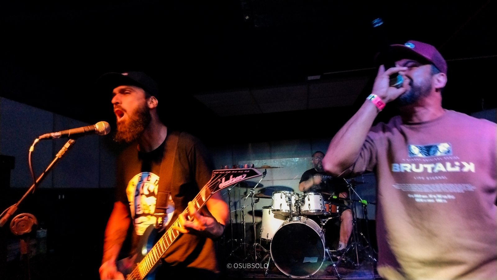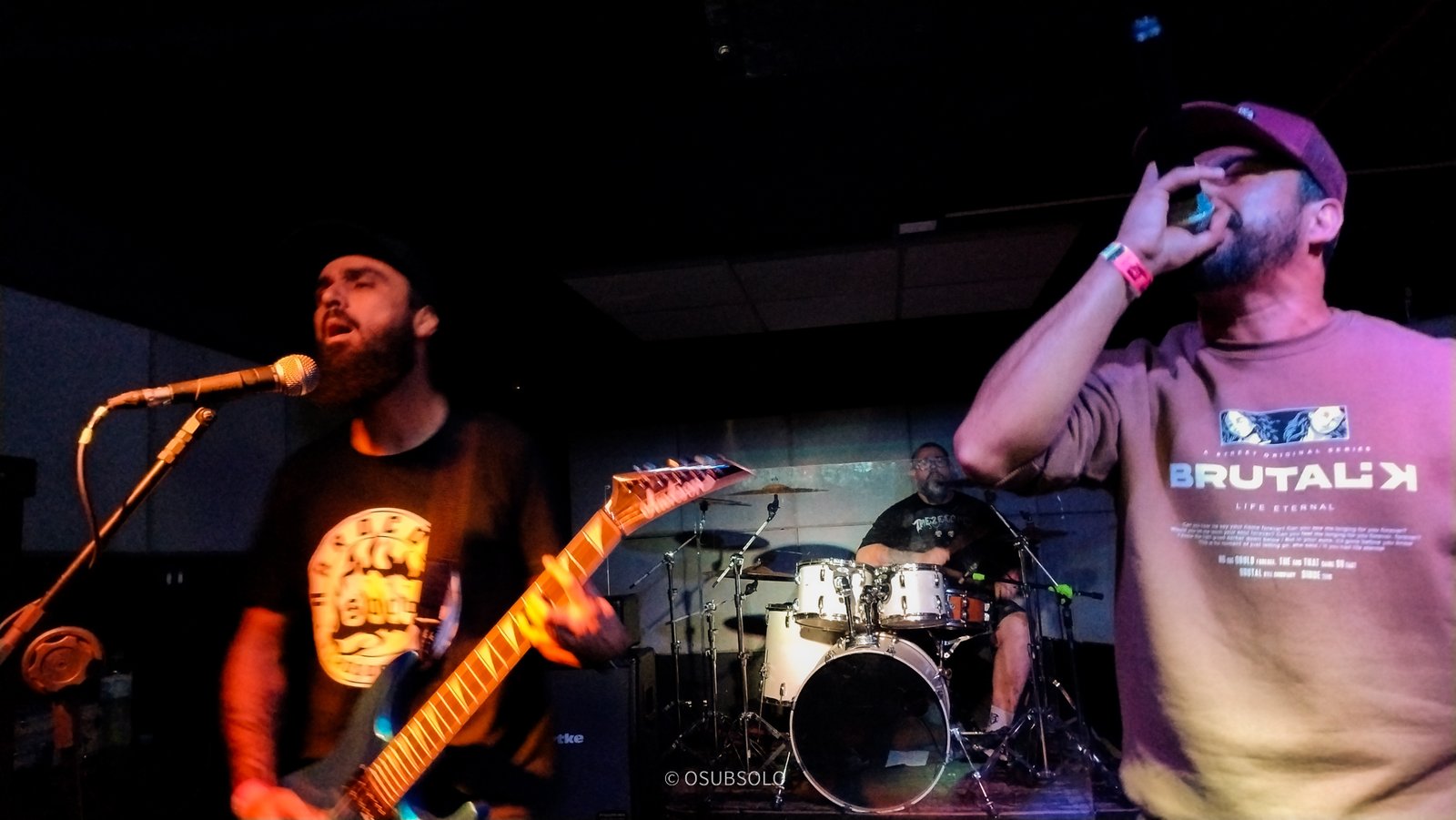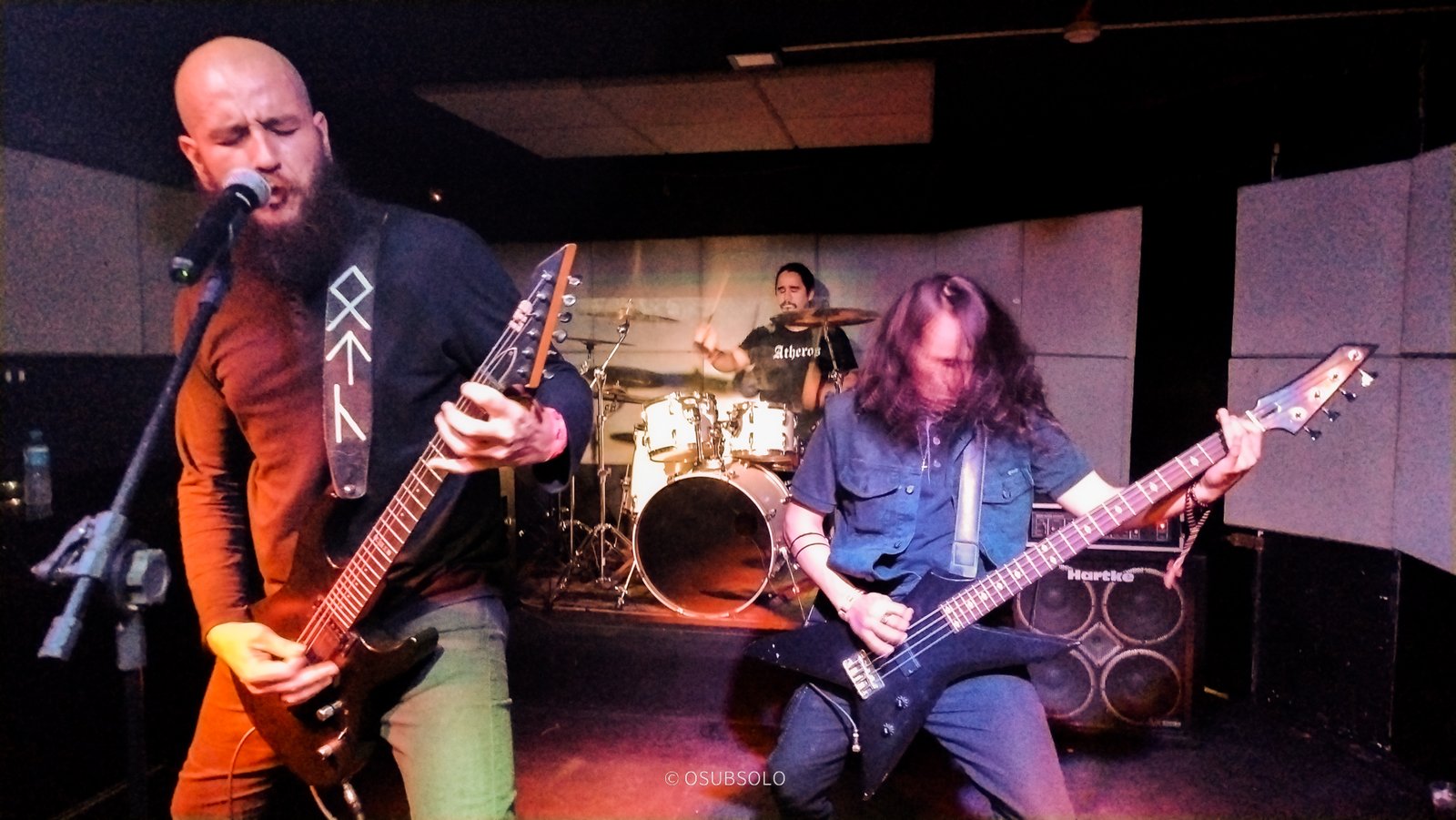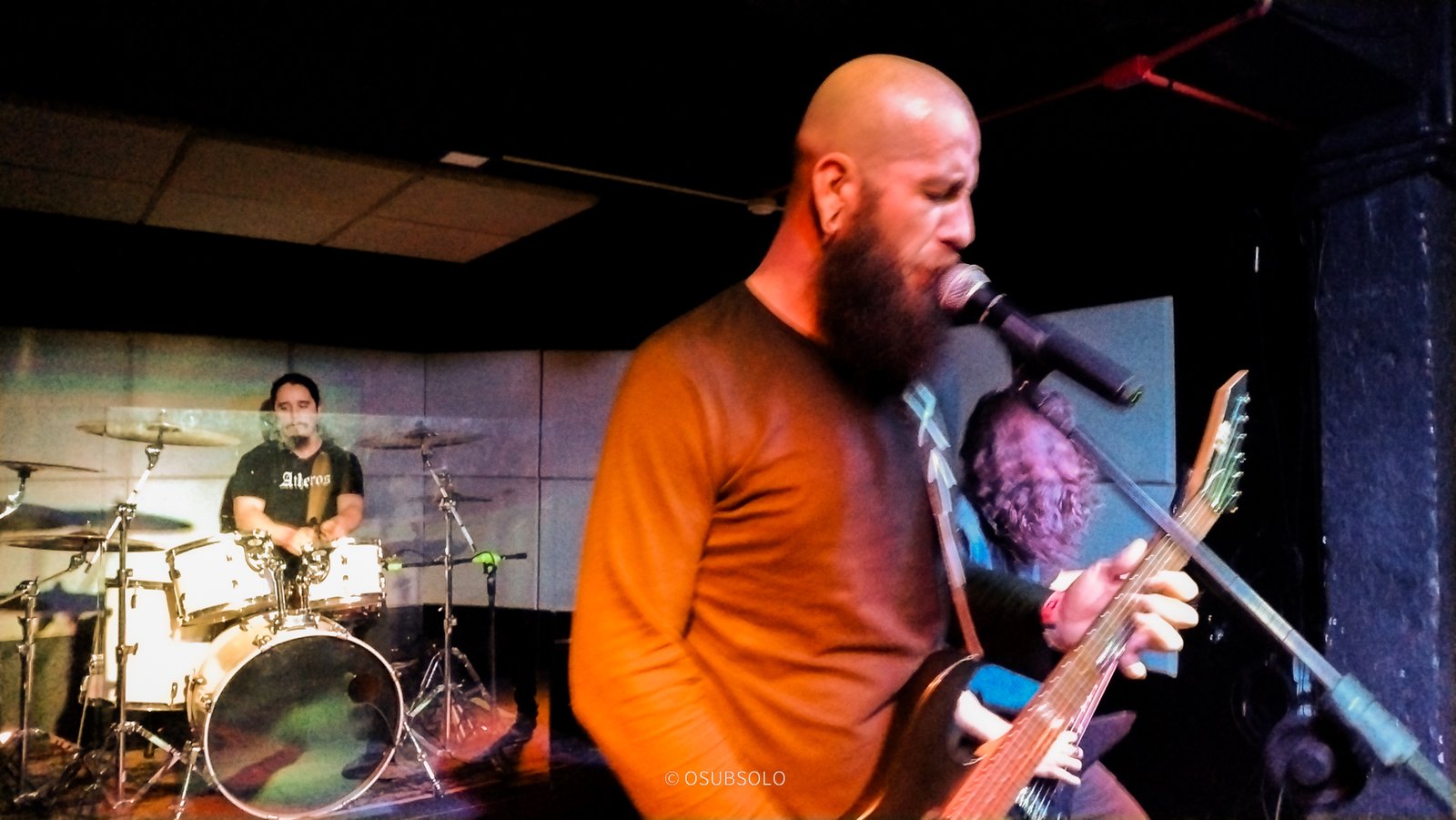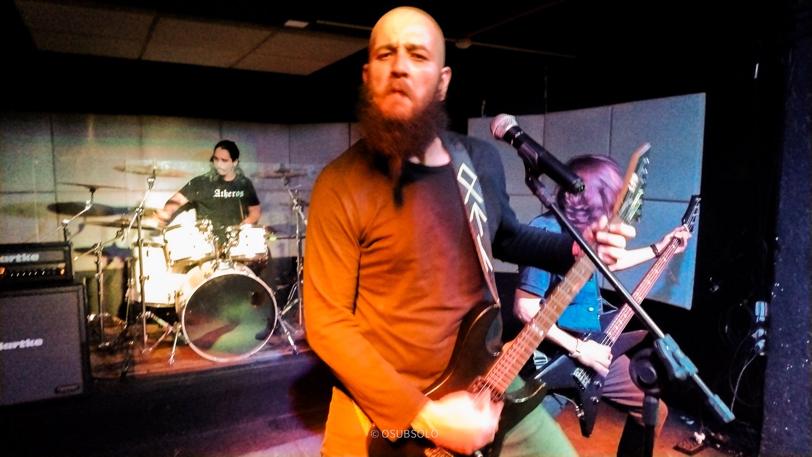 Continuando nossa saga, temos no palco agora, Atheros para trazer um pouco de Death Metal para o público da Box Club. Com um lineup enxuto composto por um trio, se você não olhar para o palco, vai pensar que tem umas cinco pessoas e um helicóptero.