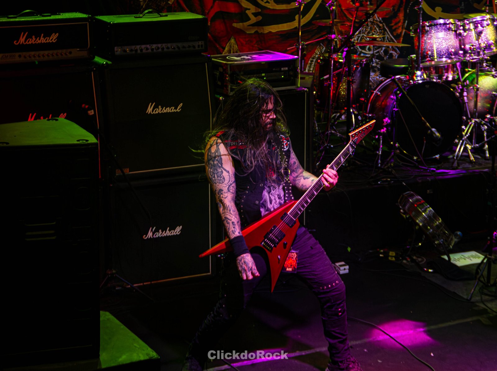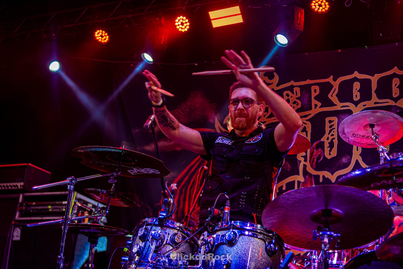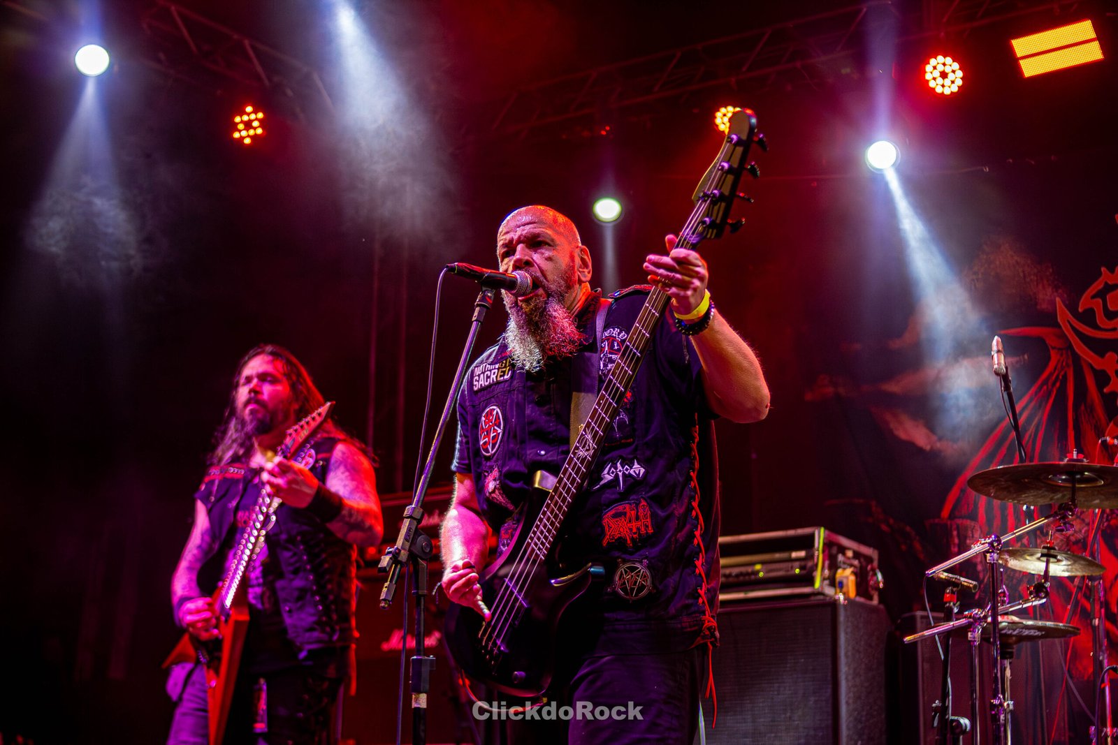 A segunda metade da apresentação começou com Act II – The Monarch, seguida de The Rise of Heresy, faixa-título do primeiro EP da banda. Em um momento, a banda pediu aos fãs que aplaudissem o guitarrista Jairo Guedz, que então apresentou Morbid Visions, e a roda de mosh que se formou foi uma verdadeira loucura. Não resisti e fui também para o mosh! O show foi encerrado com uma mistura de épocas, trazendo a pesadíssima Dawn of Mephisto (destaque de A Mass to the Grotesque, lançado em maio deste ano), o cover de Troops of Doom (Sepultura) e a clássica Mr. Sandman.