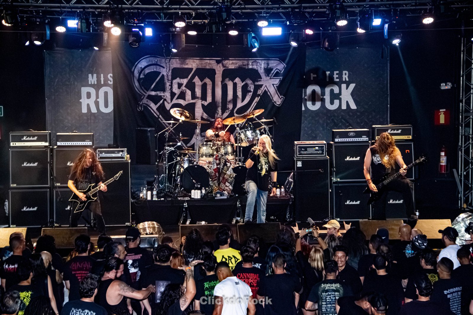Formado em 1987 na cidade de Oldenzaal (Holanda), o Asphyx é uma das principais referências do Death/Doom europeu, acumulando 10 álbuns e mantendo uma qualidade impressionante ao longo dos anos. A banda já havia visitado o Brasil quase 10 anos antes, na Krushing Latin America Tour de 2015, quando passou por São Paulo, Rio de Janeiro, Brasília e Curitiba. Agora, retornavam com a turnê South America, the Brutal Way, promovendo seu mais recente álbum Necroceros (2021).