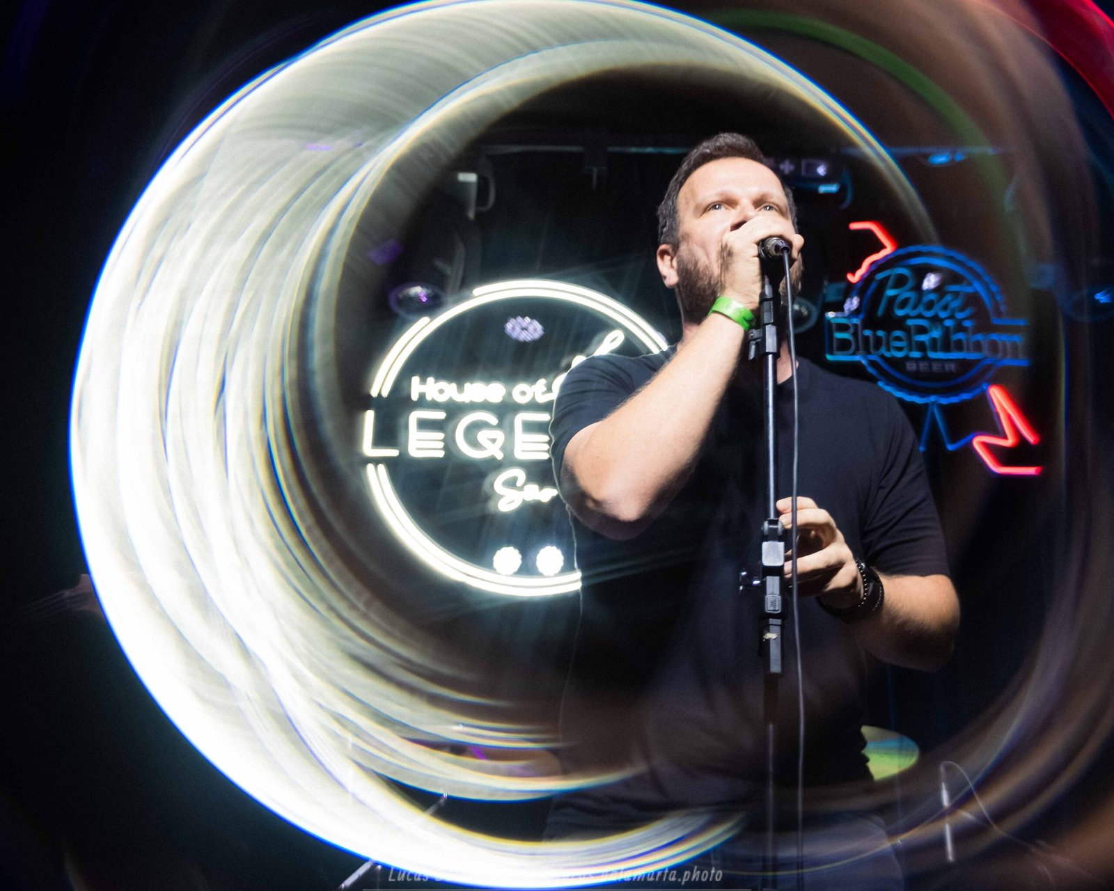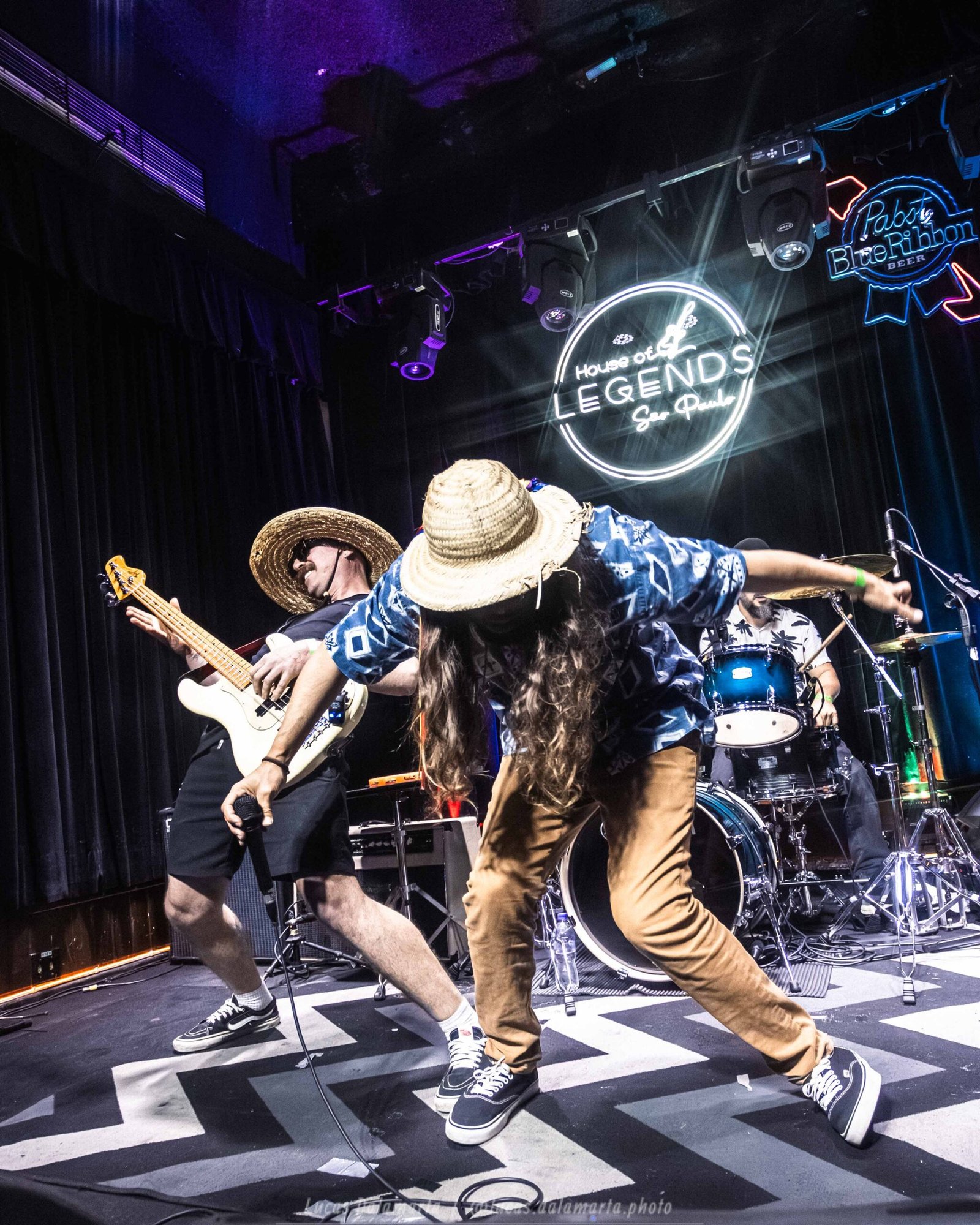 Um dos momentos mais marcantes, foi quando o vocalista aproximou o microfone do guitarrista, momento em que o JV Rangel abriu o berreiro, e levou o público ao ápice do humor em forma de show musical.