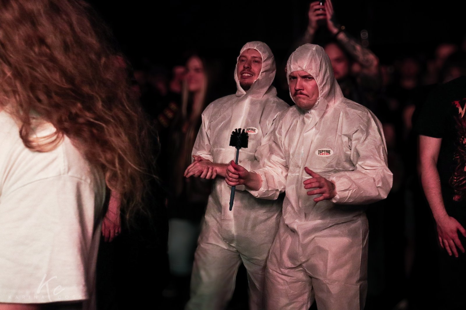 A abertura ficou por conta do Putrid Defecation, banda de Espoo (FI), que trouxe faixas como Introduction to Constipation, Fecal Matter Regurgitation e Tales From The Toilet. Os títulos das faixas não intimidaram os presentes, que já estavam com suas escovas de lavar banheiro a postos antes mesmo do show começar. Rodas tímidas de mosh foram se formando no início e ganhando força ao longo da apresentação. A banda entregou o que se esperava: caos e diversão.