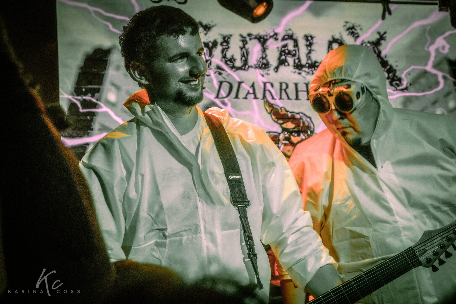 Na última sexta-feira, o On The Rocks foi palco de uma noite insana (e muito aguardada!), com ingressos esgotados e um público visivelmente entusiasmado. O evento, organizado pela Nem Agency, reuniu duas bandas finlandesas Putrid Defecation e Cumbeast, além dos tchecos do Gutalax que encerraram a noite com seu já característico caos performático. O que podia se esperar da noite? Um verdadeiro culto ao ato de defecar, passando por doenças e todo tipo de secreção que se pode esperar (ou não!), combinando o mais absoluto tom grotesco com um toque teatral e cômico.