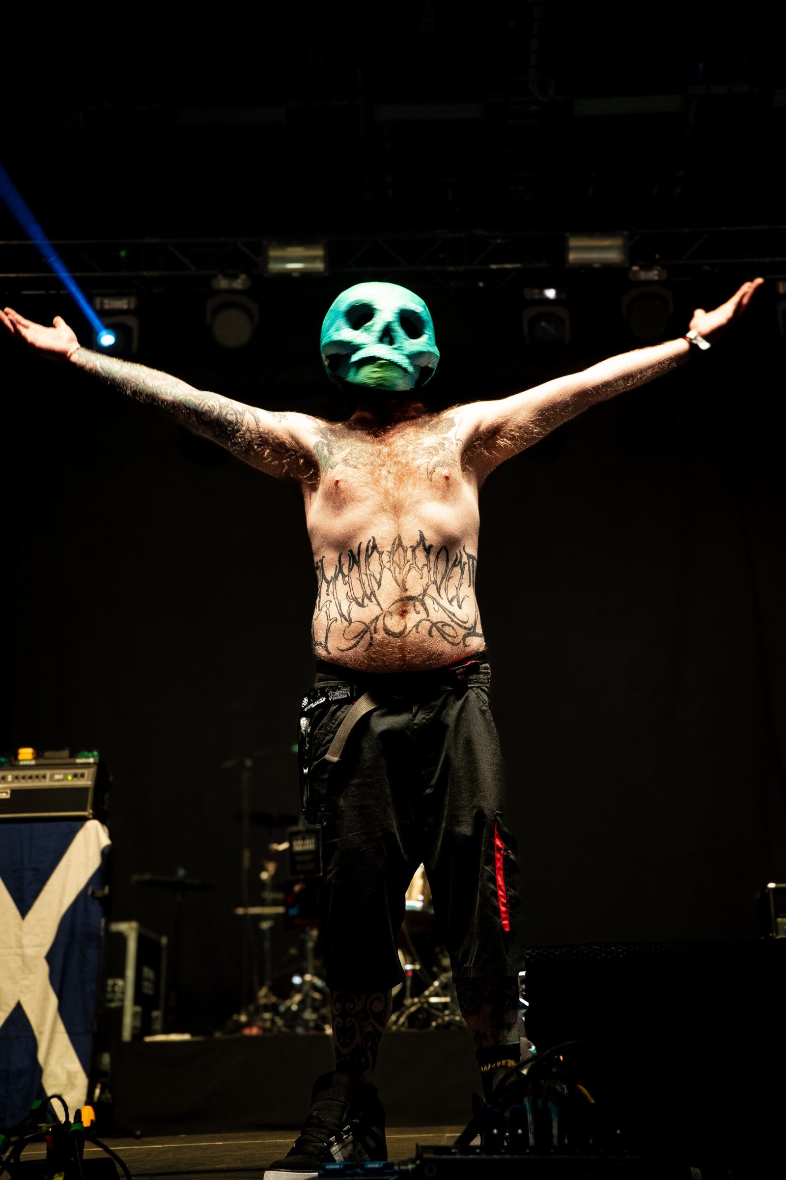 Imagine uma banda que mistura rifes brutais e pesados com uma temática humorística e colorida nos palcos. Este é o estilo dos escoceses do Party Canon. O show foi marcado por boias coloridas lançadas ao público, músicos de máscaras no mínimo engraçadas e até pênis gigantes de papelão. A par das gracinhas, a banda deixou o público presente insano, porque realmente entregou no som também.