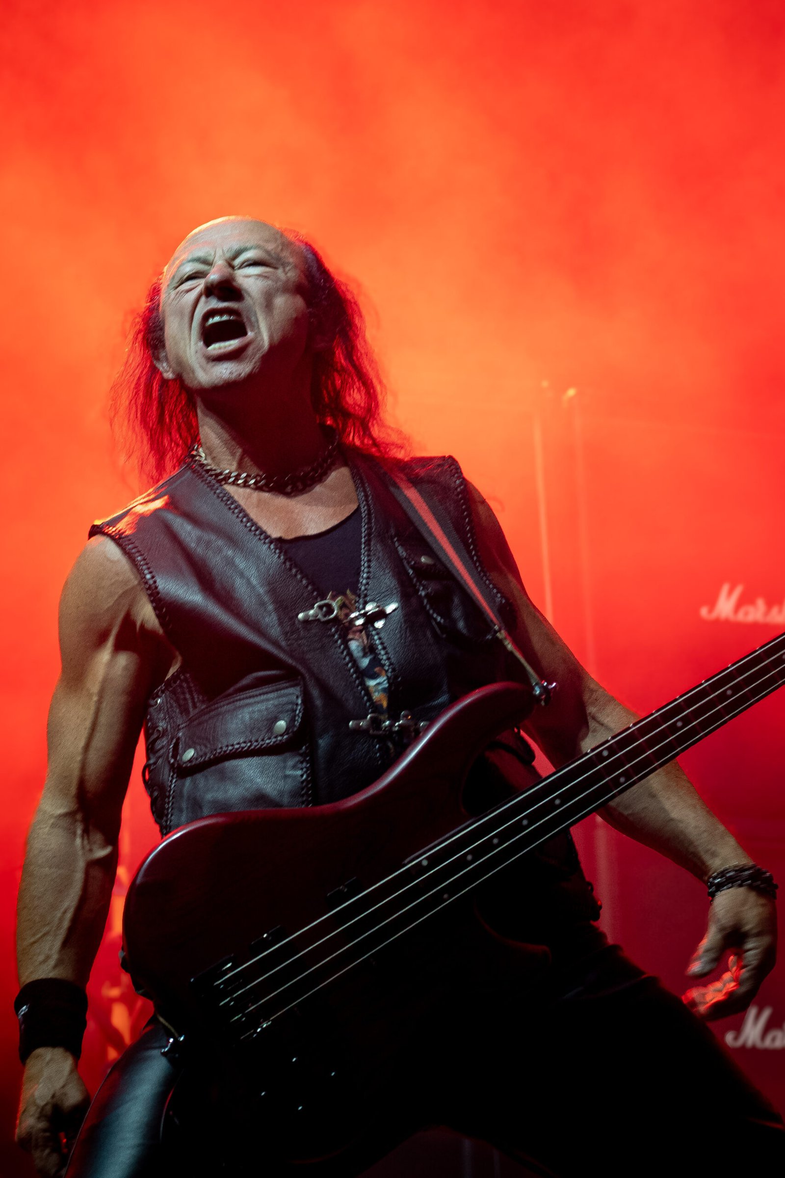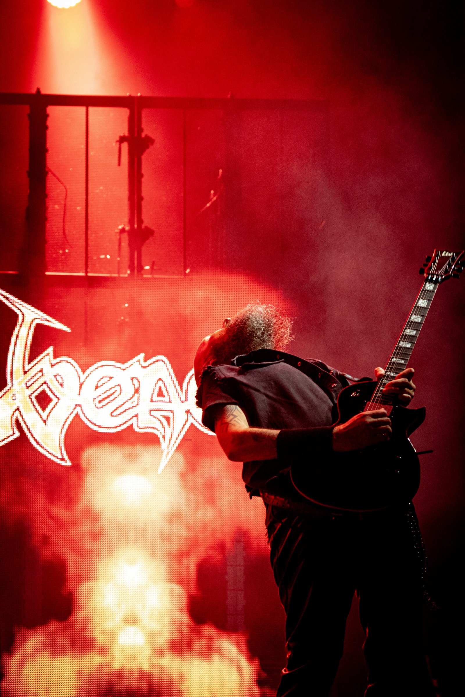 A maior atração do segundo dia do Hellsinki Metal Festival 2025 foi o Venom, que subiu ao palco principal como um verdadeiro monumento vivo da história do metal. Formada em 1979 em Newcastle, a lendária banda é amplamente reconhecida como uma das principais influências na criação do black metal. Antes mesmo do show começar, uma multidão já se aglomerava diante do palco, ansiosa e entoando gritos de empolgação. E quando os primeiros acordes da clássica Black Metal ecoaram, o público respondeu em uníssono — uma descarga de pura adrenalina! E convenhamos: a banda que já começa seu show tocando um dos seus maiores clássicos se garante que o restante do show vai ter ainda muito mais para agradar ao público.