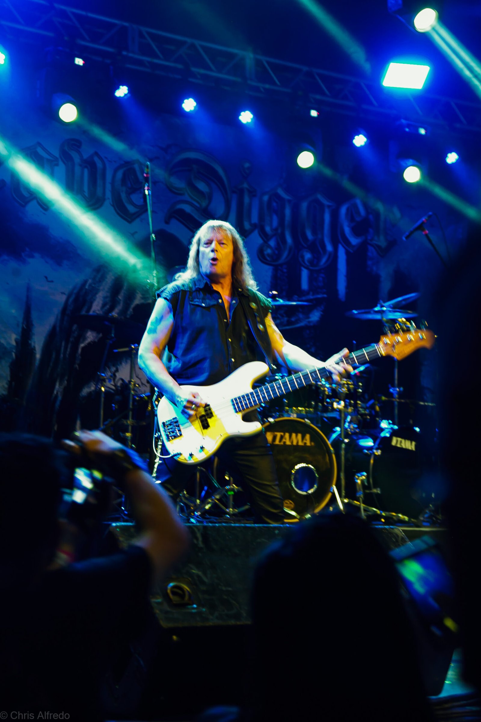 Com quatro décadas de história honradas em uma performance épica, encerrando a noite, o Grave Digger subiu ao palco como apenas uma lenda viva do Heavy Metal poderia: com autoridade, entrega e uma conexão imediata com o público. Formada em 1980, na cidade alemã de Gladbeck, a banda é uma das principais representantes da First Wave of German Heavy Metal (FWOGHM), ao lado de nomes como Rage e Running Wild.