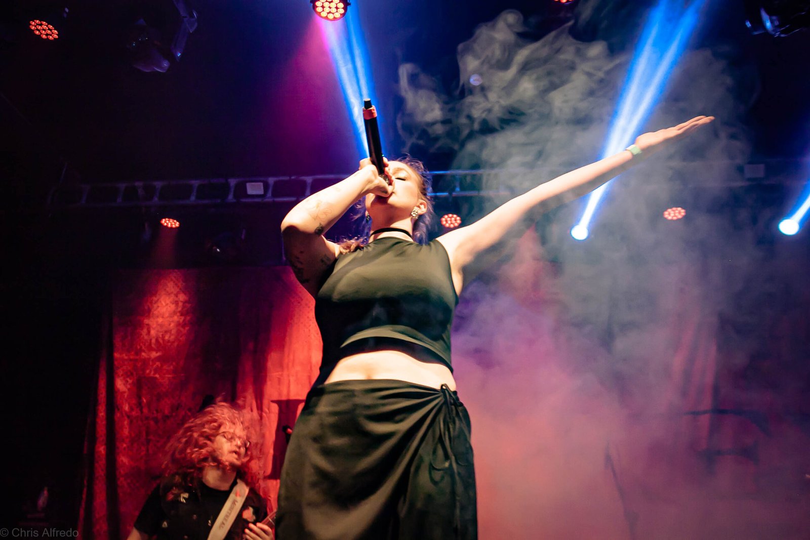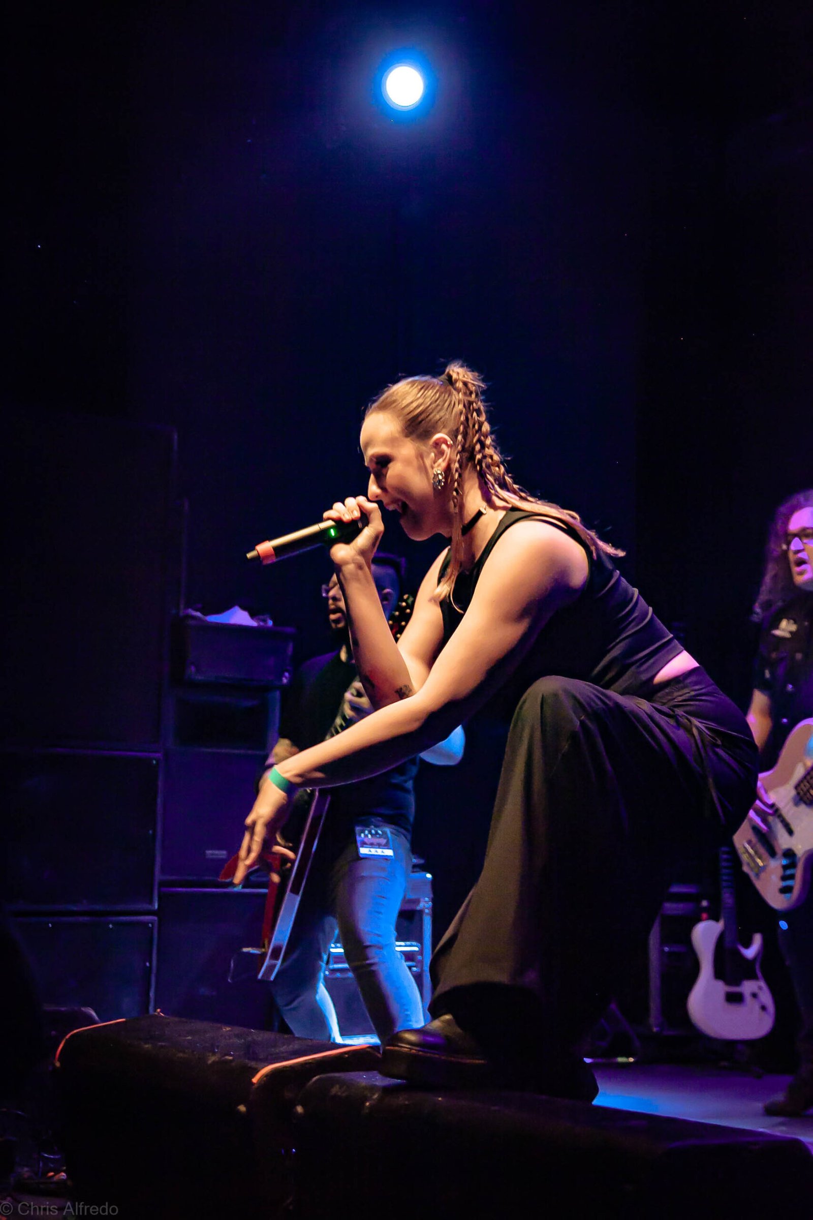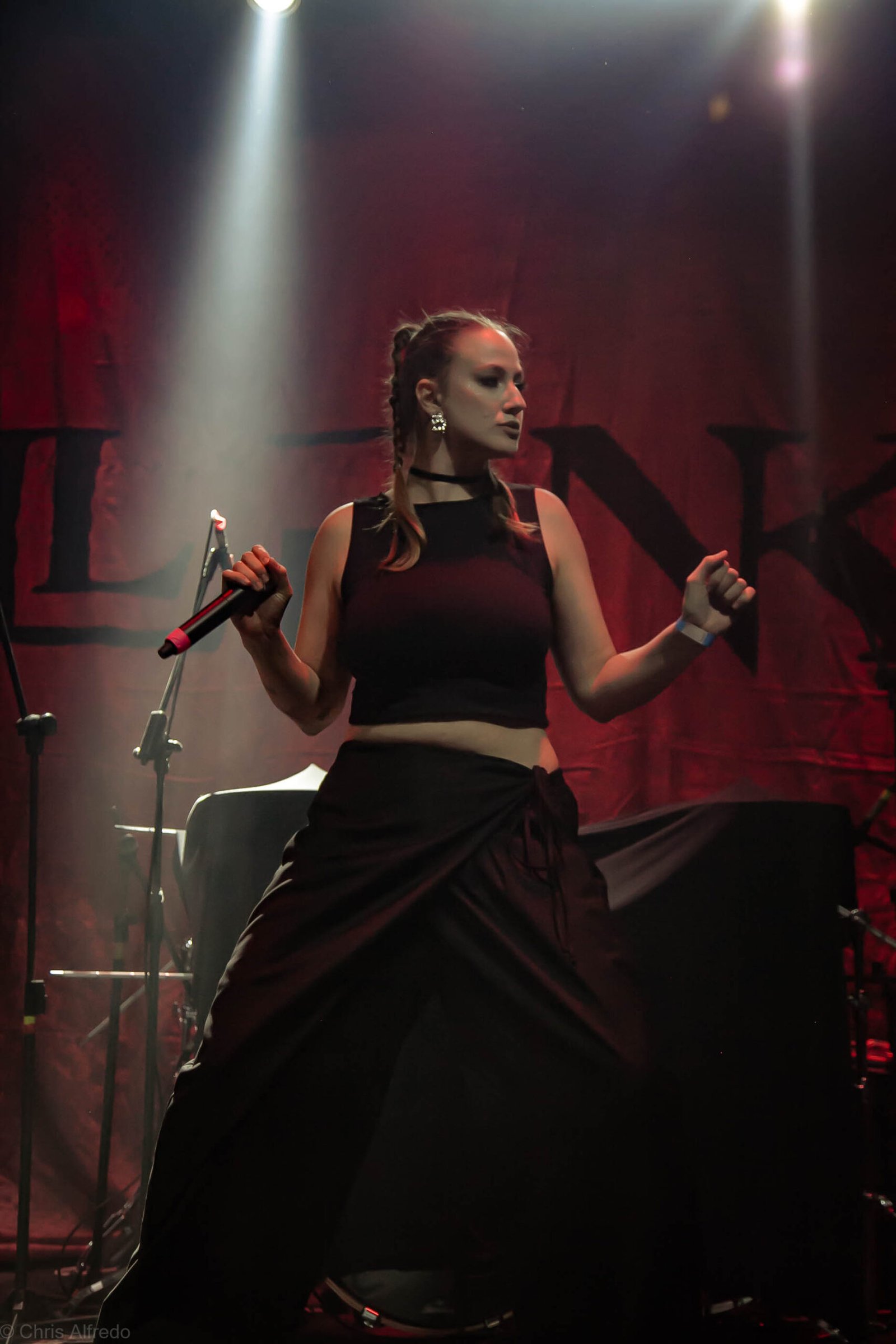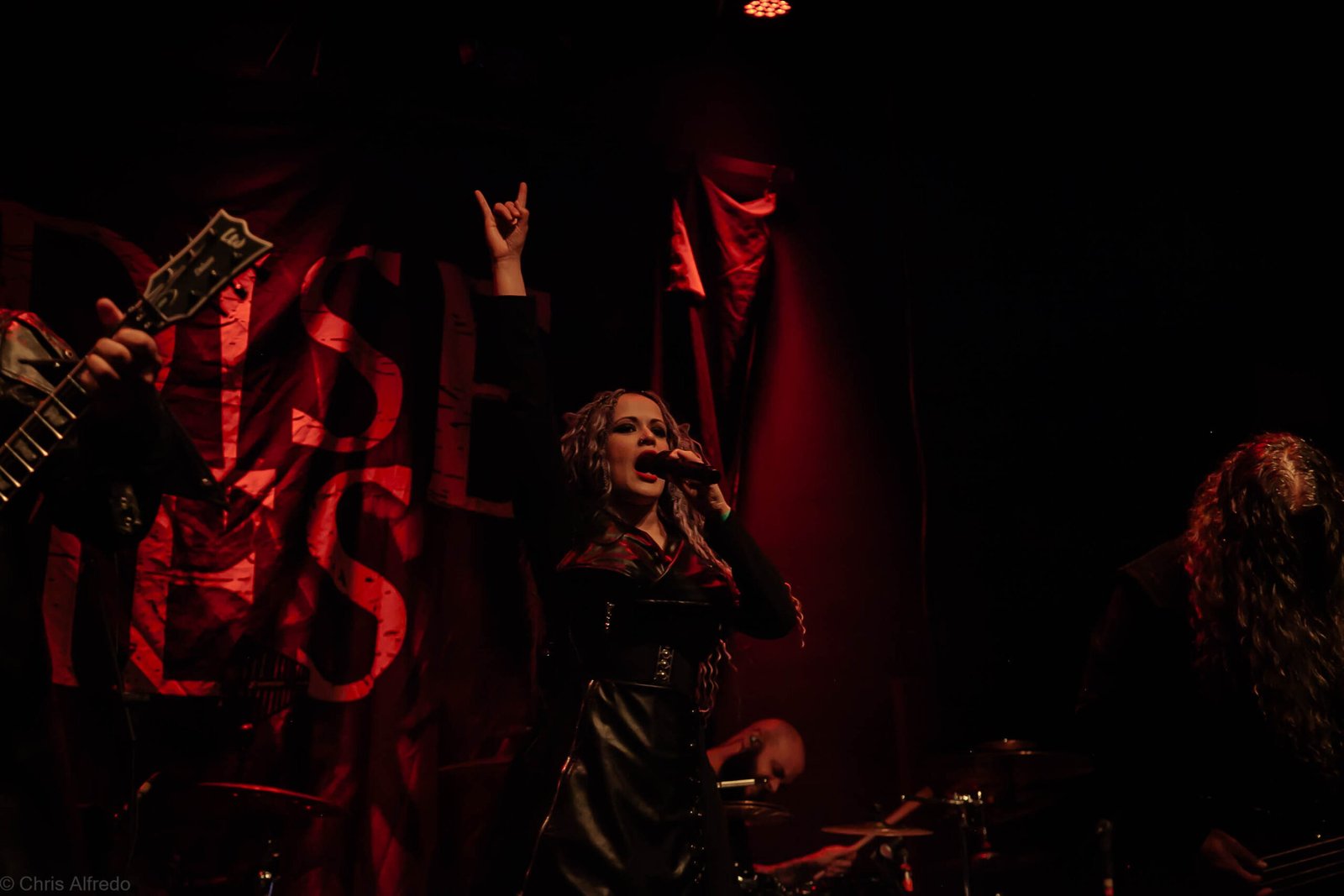 A vocalista Karina Menascé, sempre carismática, brincou com o clima: “Há um ano não vínhamos pra cá… e continua frio!”, disse entre risos, antes de se desculpar pelo atraso e agradecer pela paciência da plateia. Durante o show, fez todo mundo bater cabeça e até puxou uma death wall de respeito, daquelas que transformam qualquer espectador em fã instantâneo.