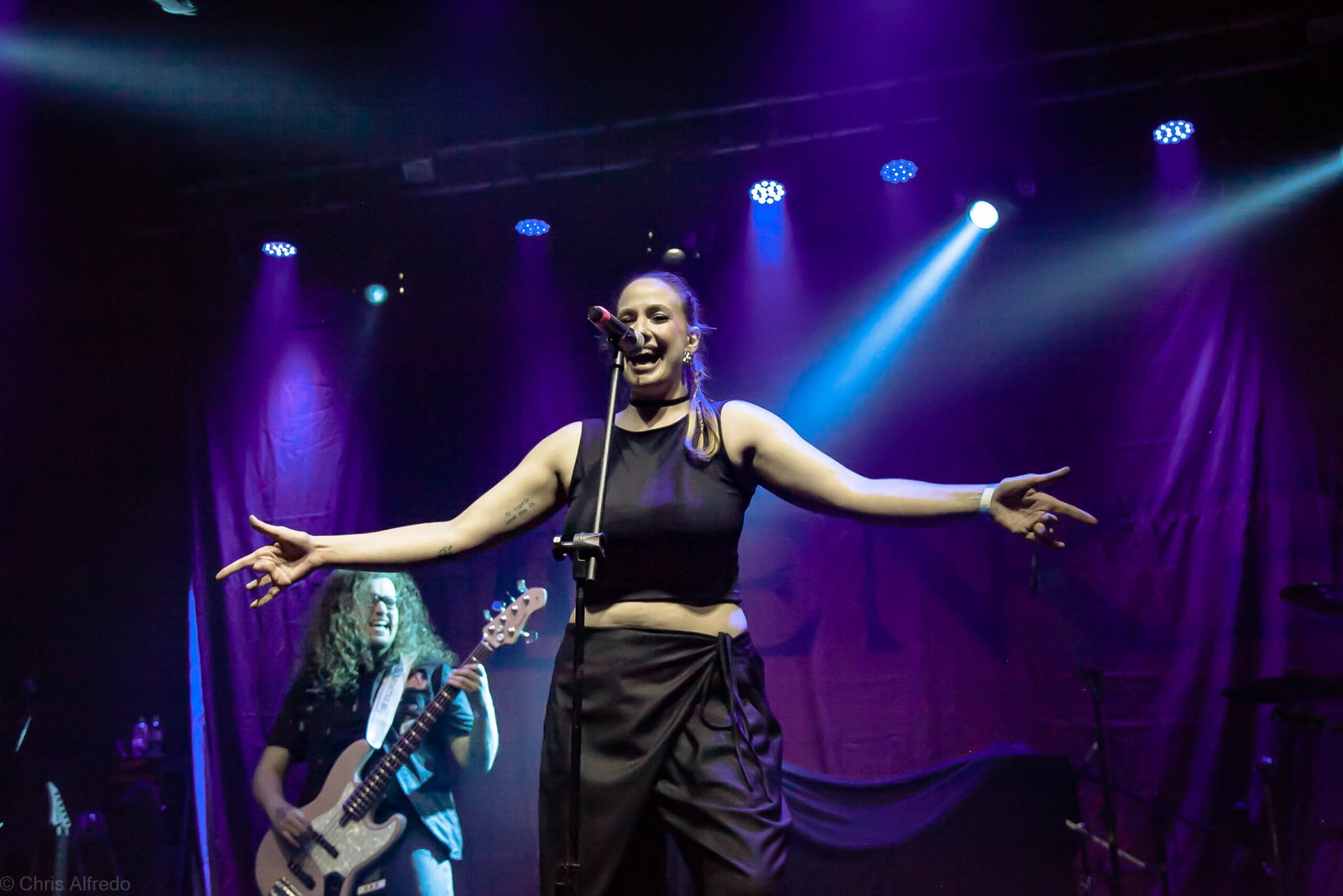 Com expressões marcantes e uma presença de palco sólida, Fernanda demonstrou total domínio da cena. Sua interação constante com o público e a entrega nas interpretações evidenciaram seu envolvimento genuíno com o repertório. Uma atuação segura, expressiva e essencial para a intensidade do show.