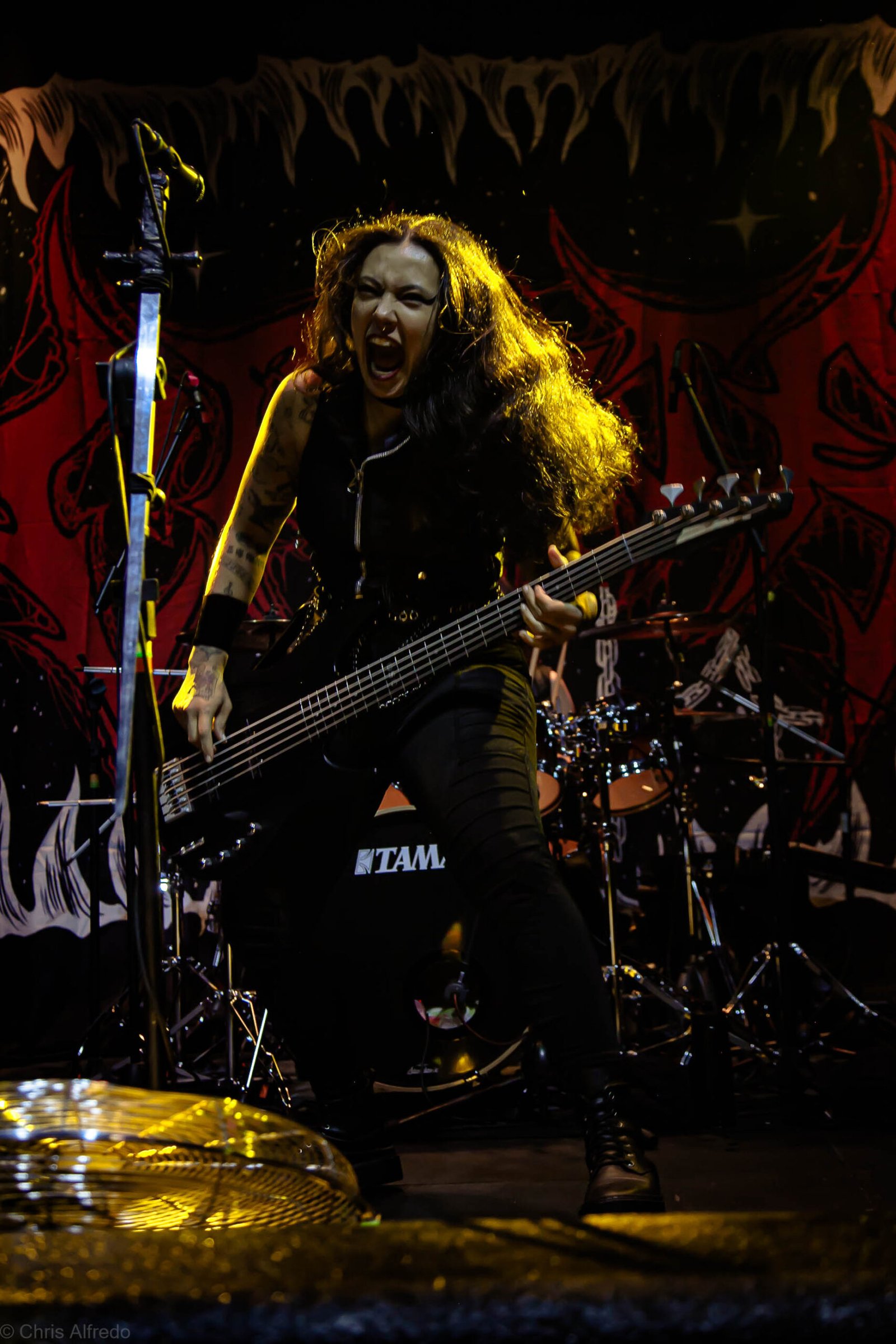 Finalmente, a banda mais aguardada da noite subiu ao palco do Stage Garden para um momento histórico: o início da turnê In The Other Side Tour. Com a casa completamente lotada, a banda feminina de Death Metal mostrou, do começo ao fim, por que é uma das maiores referências do estilo.