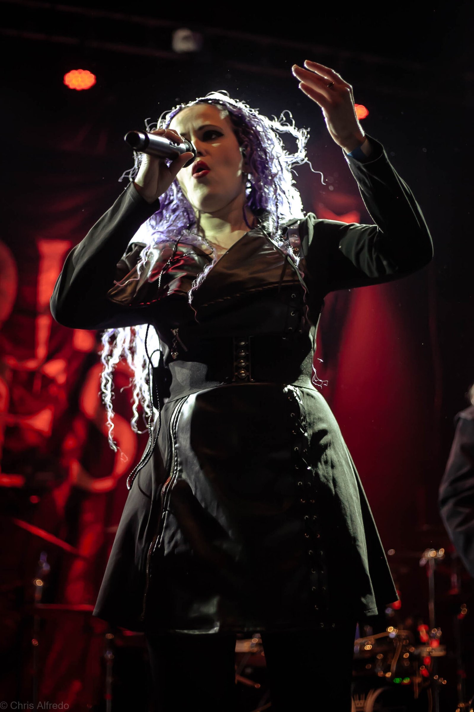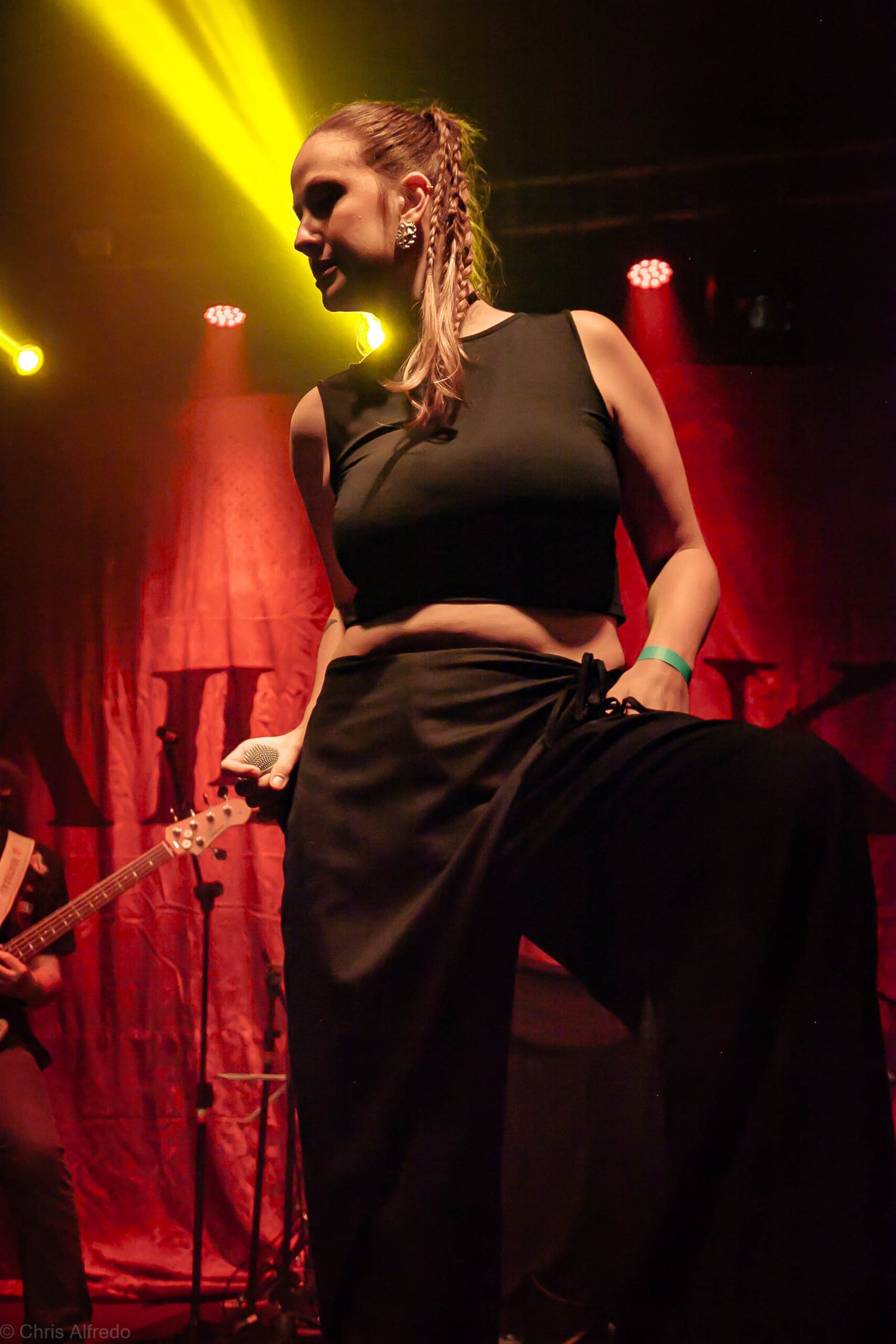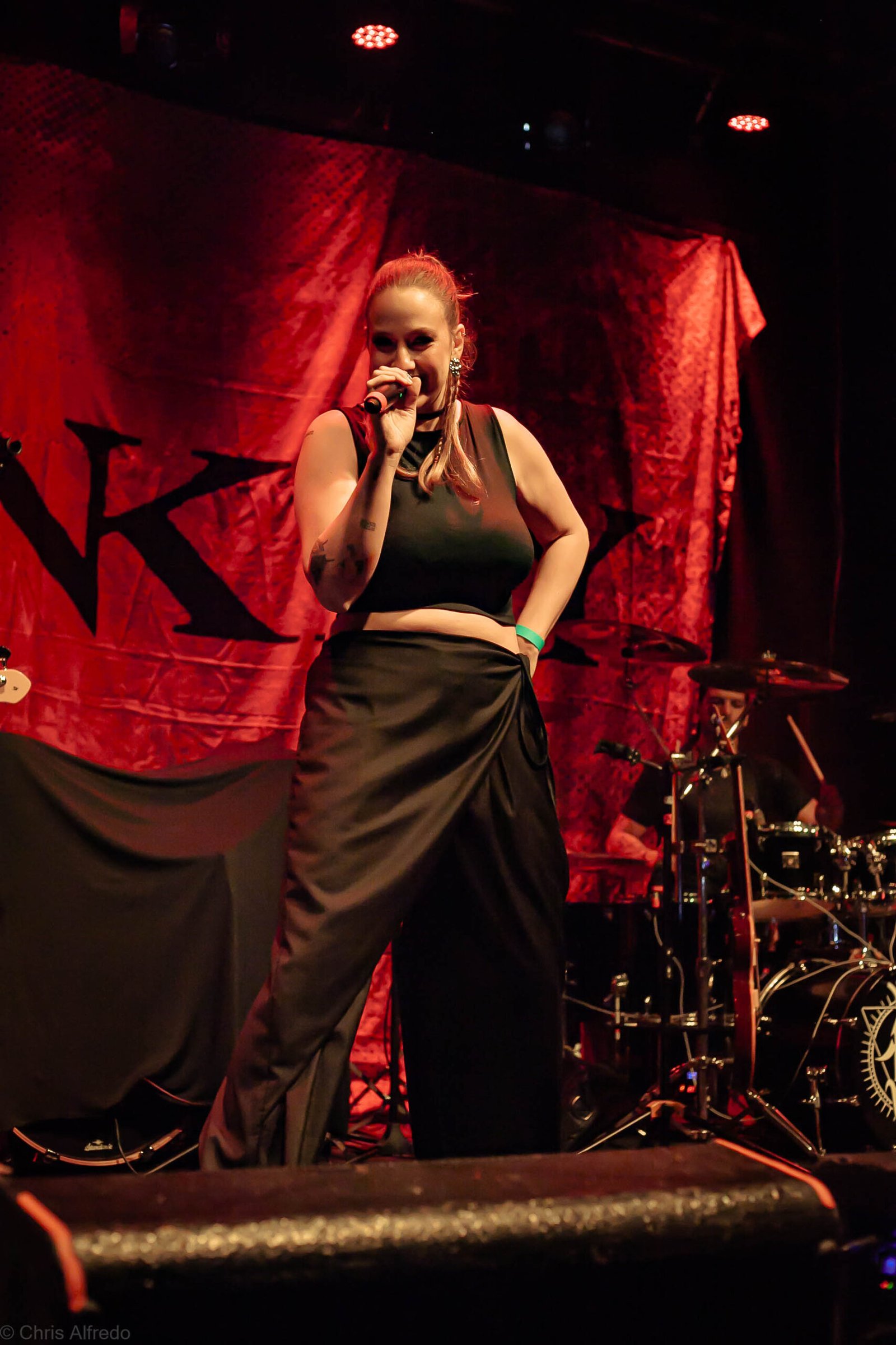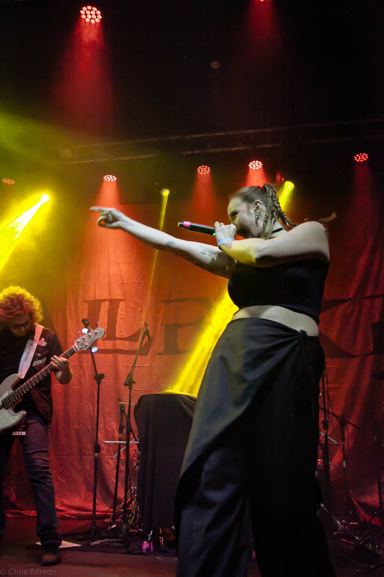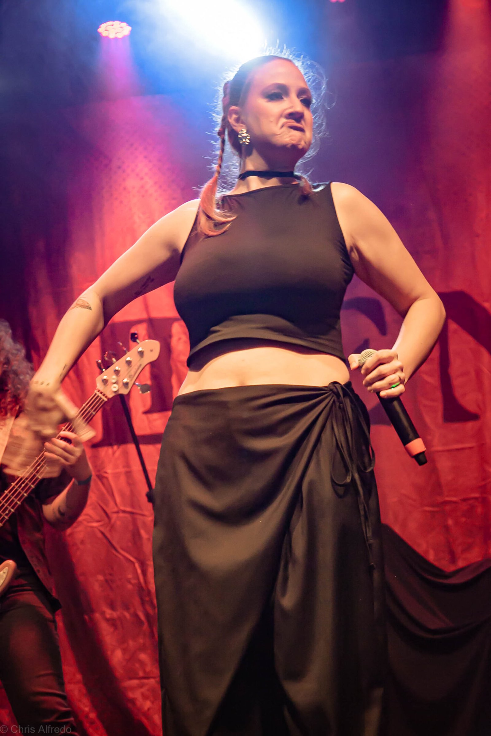 A vocalista Karina Menascé, sempre carismática, brincou com o clima: “Há um ano não vínhamos pra cá… e continua frio!”, disse entre risos, antes de se desculpar pelo atraso e agradecer pela paciência da plateia. Durante o show, fez todo mundo bater cabeça e até puxou uma death wall de respeito, daquelas que transformam qualquer espectador em fã instantâneo.