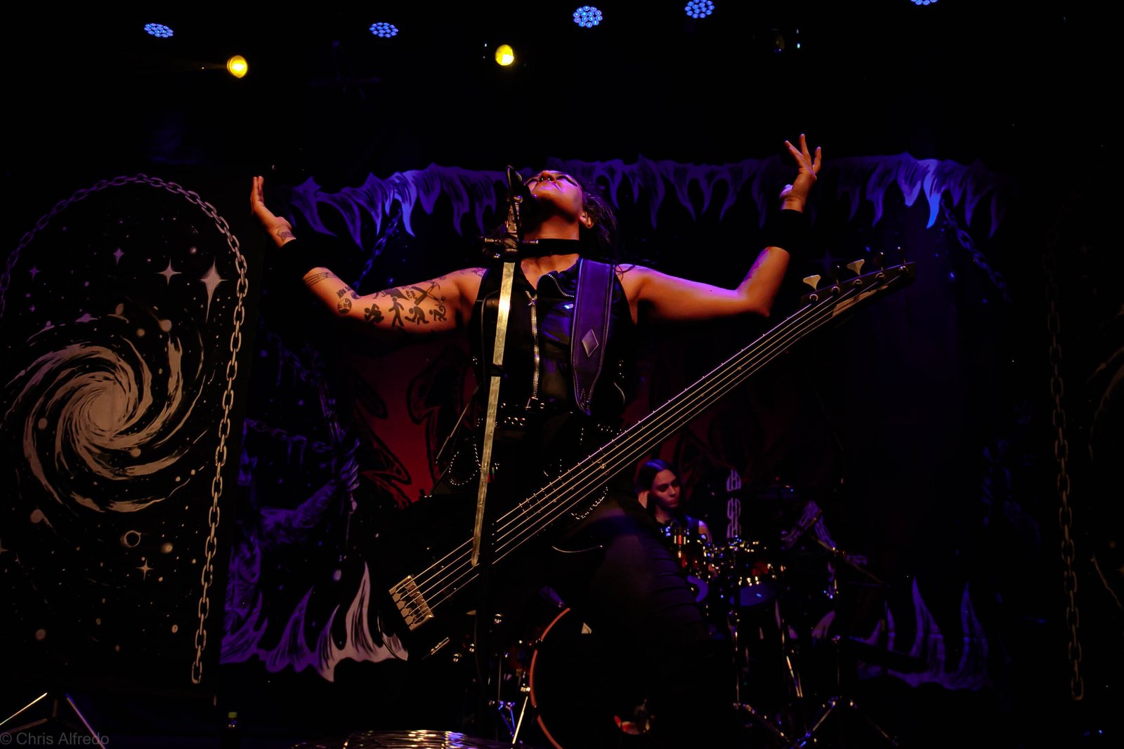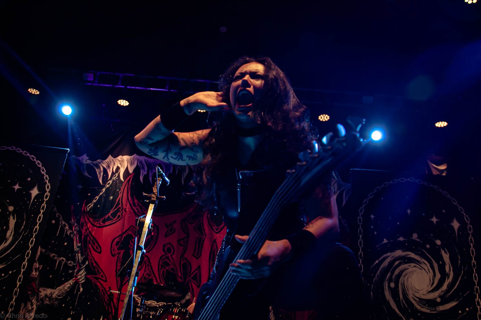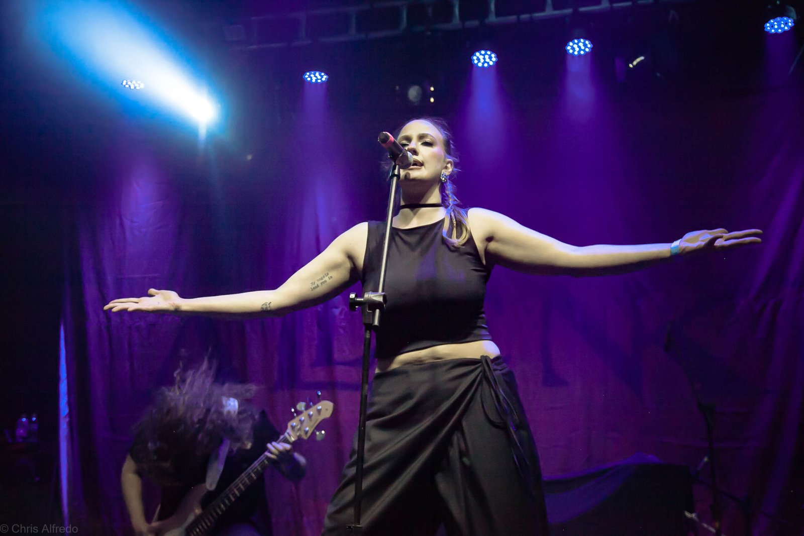 A Crypta entrou em cena por volta das 22h40, dominando o ambiente com sua sonoridade brutal, técnica impecável e presença de palco avassaladora. A atmosfera sombria e pesada (característica própria da banda) rapidamente tomou conta da casa.