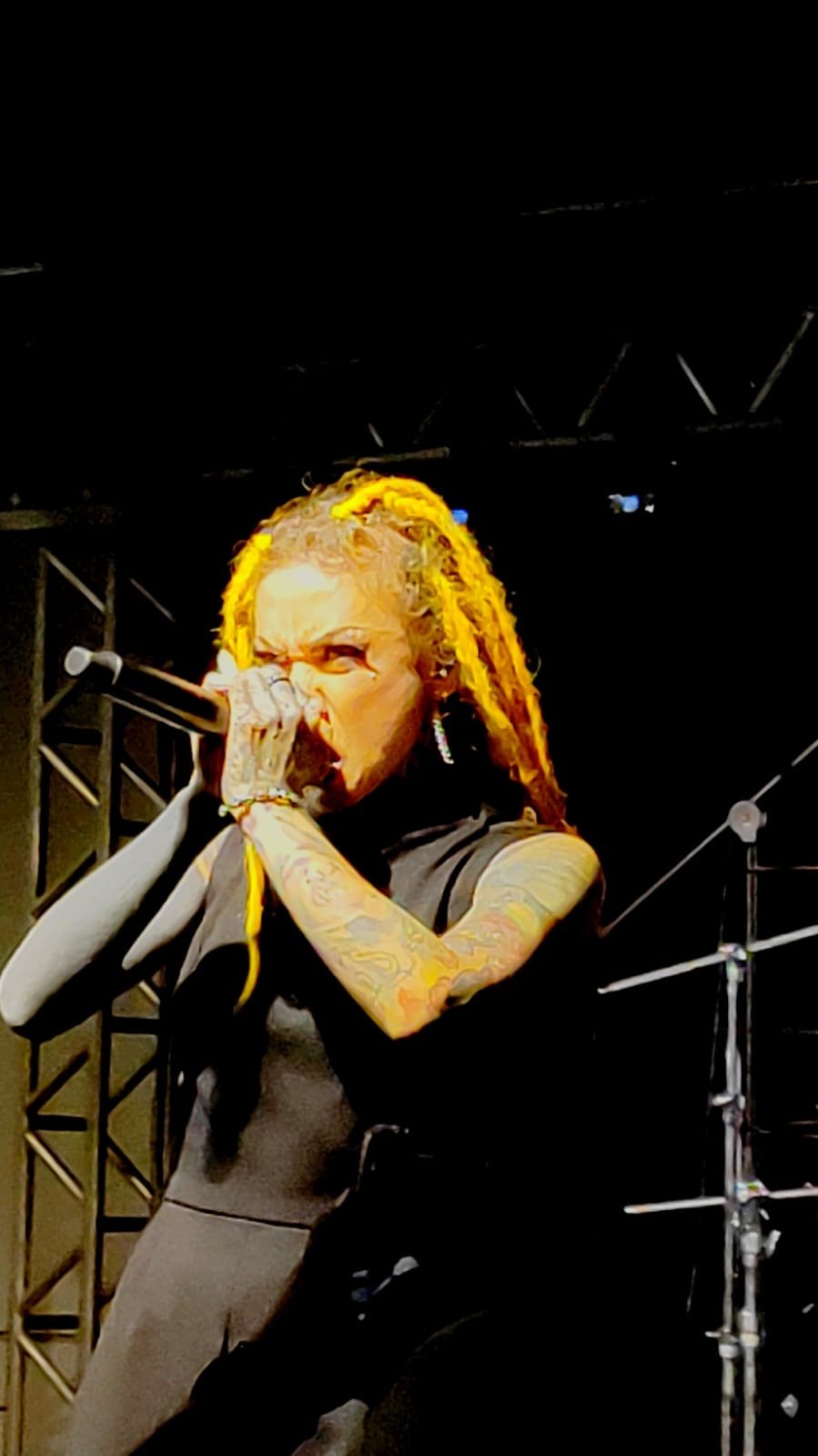 Com uma presença de palco forte, marcada pelo headbanging dos dreads amarelos de Lena e castanhos de Vidick, o show do Infected Rain impressiona pela combinação de atitude, gingado e momentos dramáticos. Lena é uma performer natural, alternando entre expressões intensas e gestos que capturam a atenção, enquanto comanda uma mescla entre voz limpa e gutural.