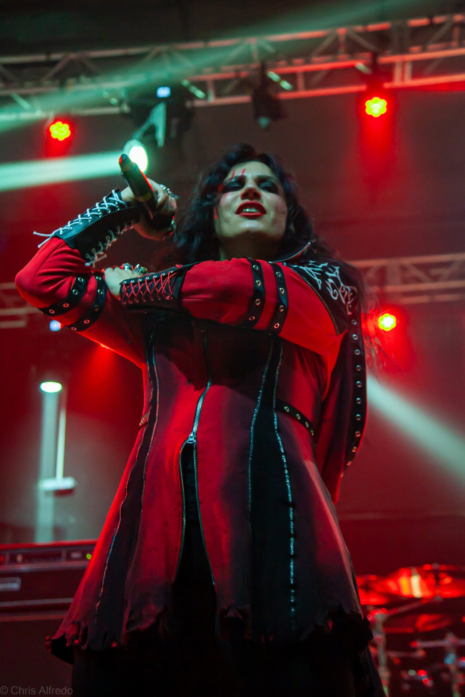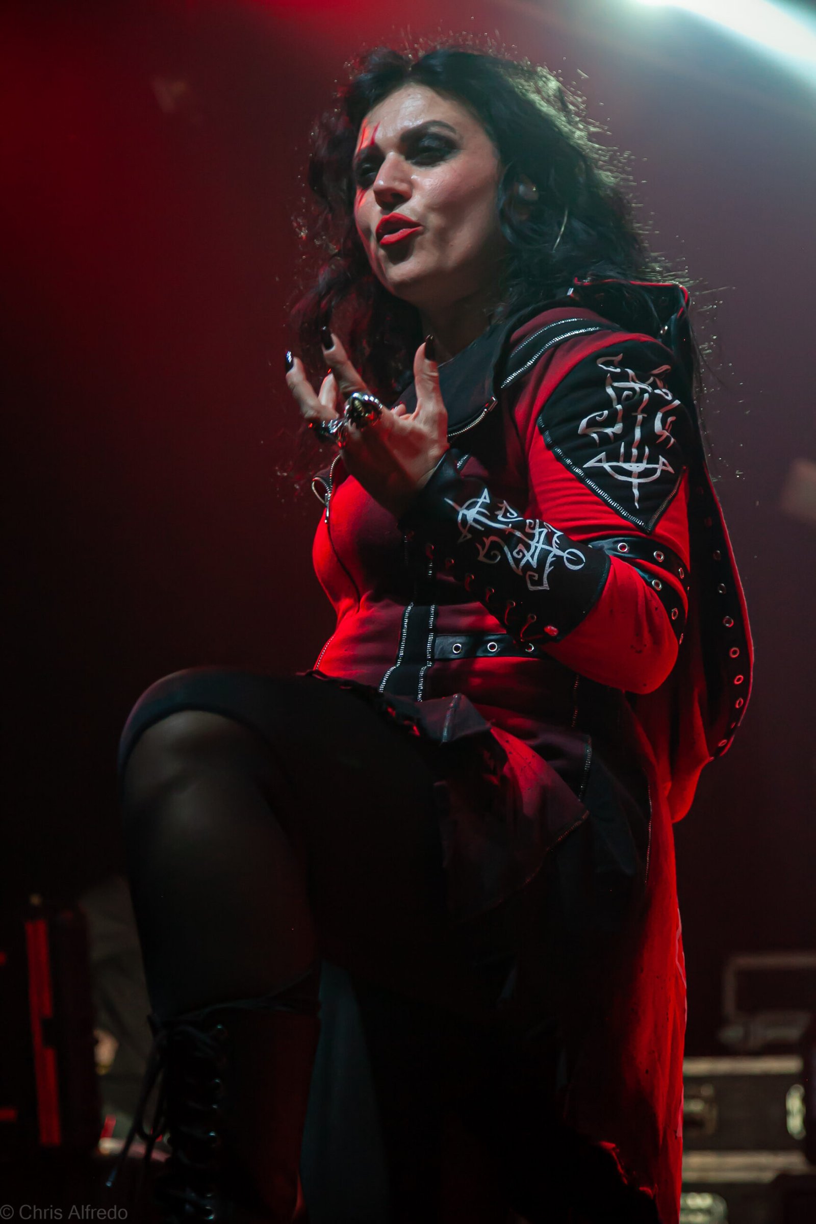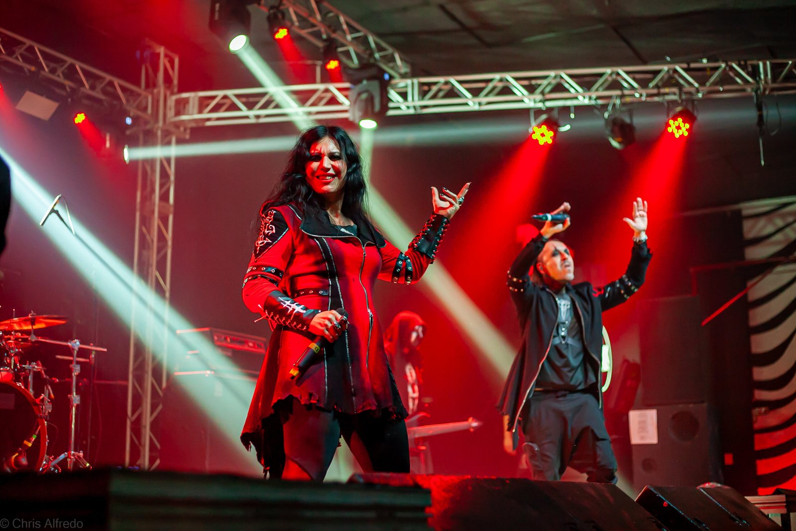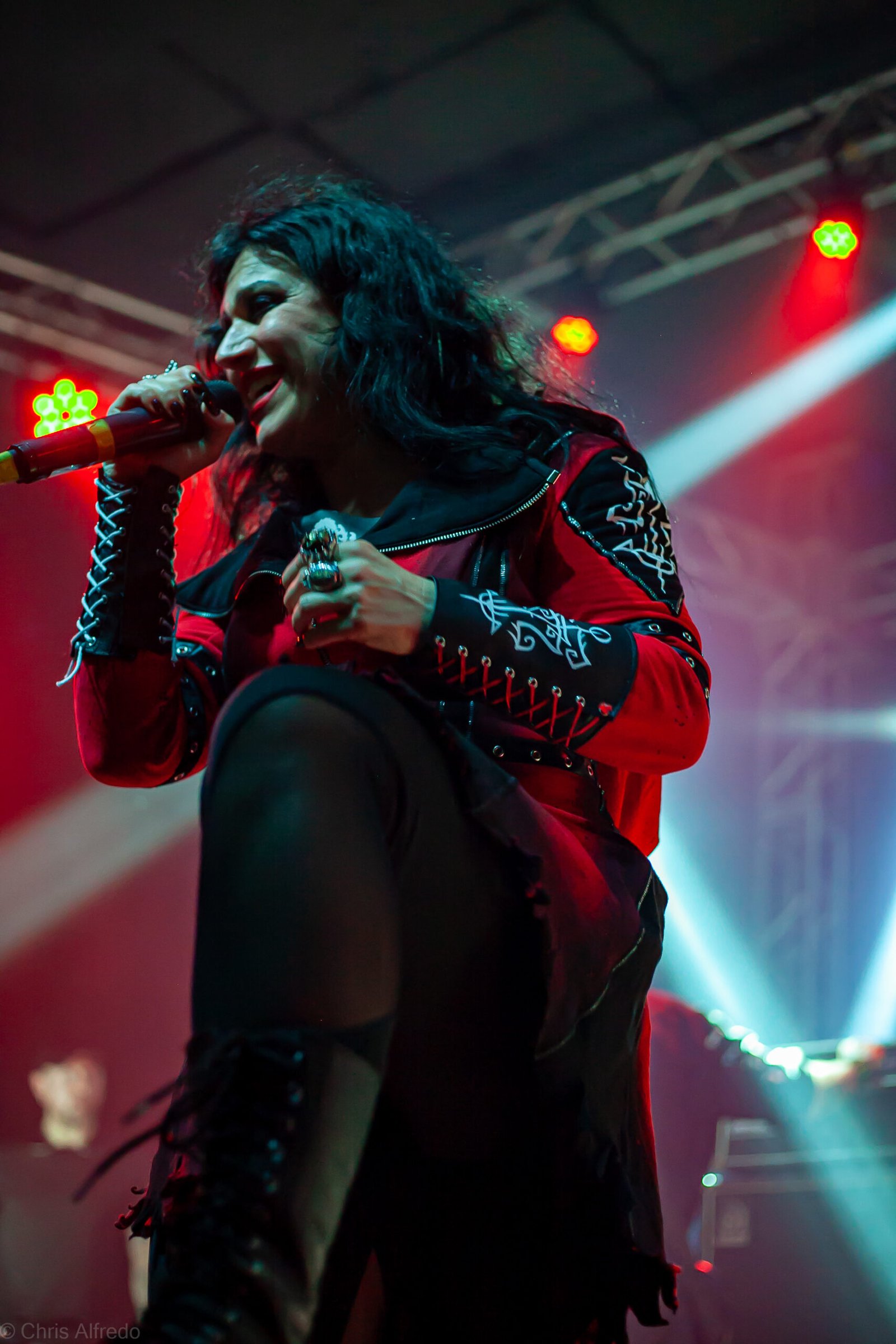 O acesso foi liberado próximo das 20h30, e a pista foi preenchida rapidamente. Quem ainda estava comendo teve que assistir ao show do fundo, pois não era possível se movimentar no meio da massa eufórica de fãs. Pouco tempo depois, a banda subiu ao palco sem nenhuma passagem de som mais elaborada, iniciando diretamente com a faixa Layers of Time, seguida de Reckless, ambas do álbum Black Anima de 2019 — ano da última passagem da banda pela cidade, que foi lembrada pela vocalista Cristina Scabbia, ansiosa para retornar desde então. Na sequência, veio um dos singles do último álbum de estúdio, Hosting the Shadows, que foi cantado do começo ao fim pelo público. A interação entre os vocalistas Cristina Scabbia e Andrea Ferro é hipnotizante; a presença de palco da banda é tamanha que, por vezes, me vi perdido sem saber quem fotografar primeiro.