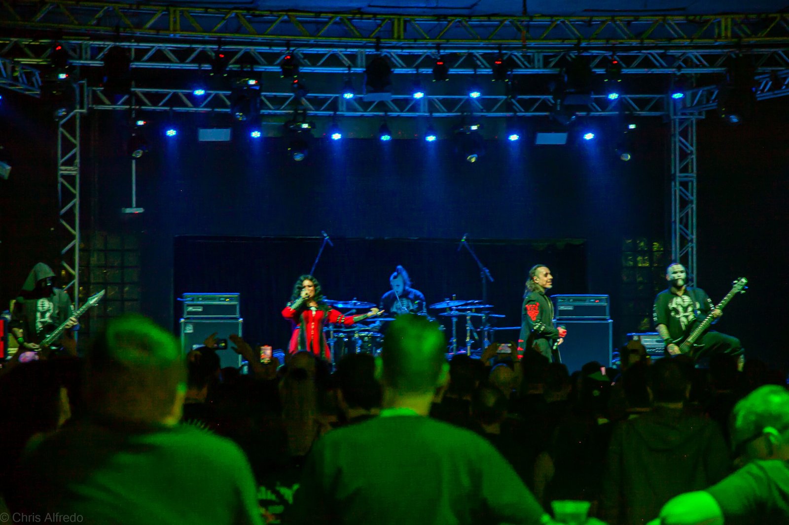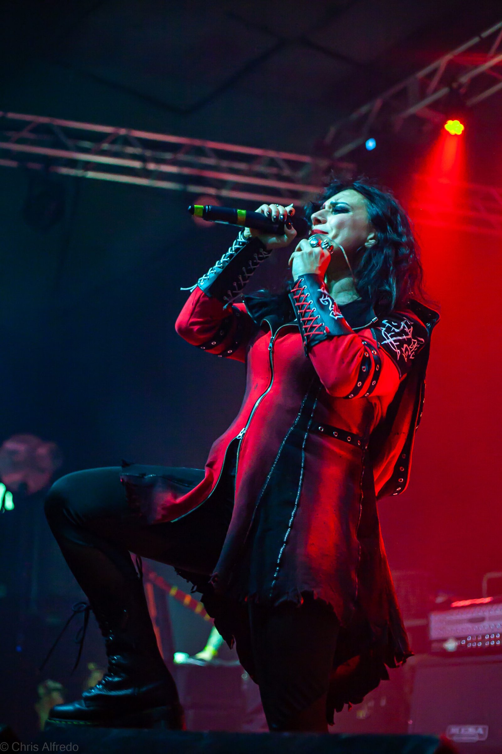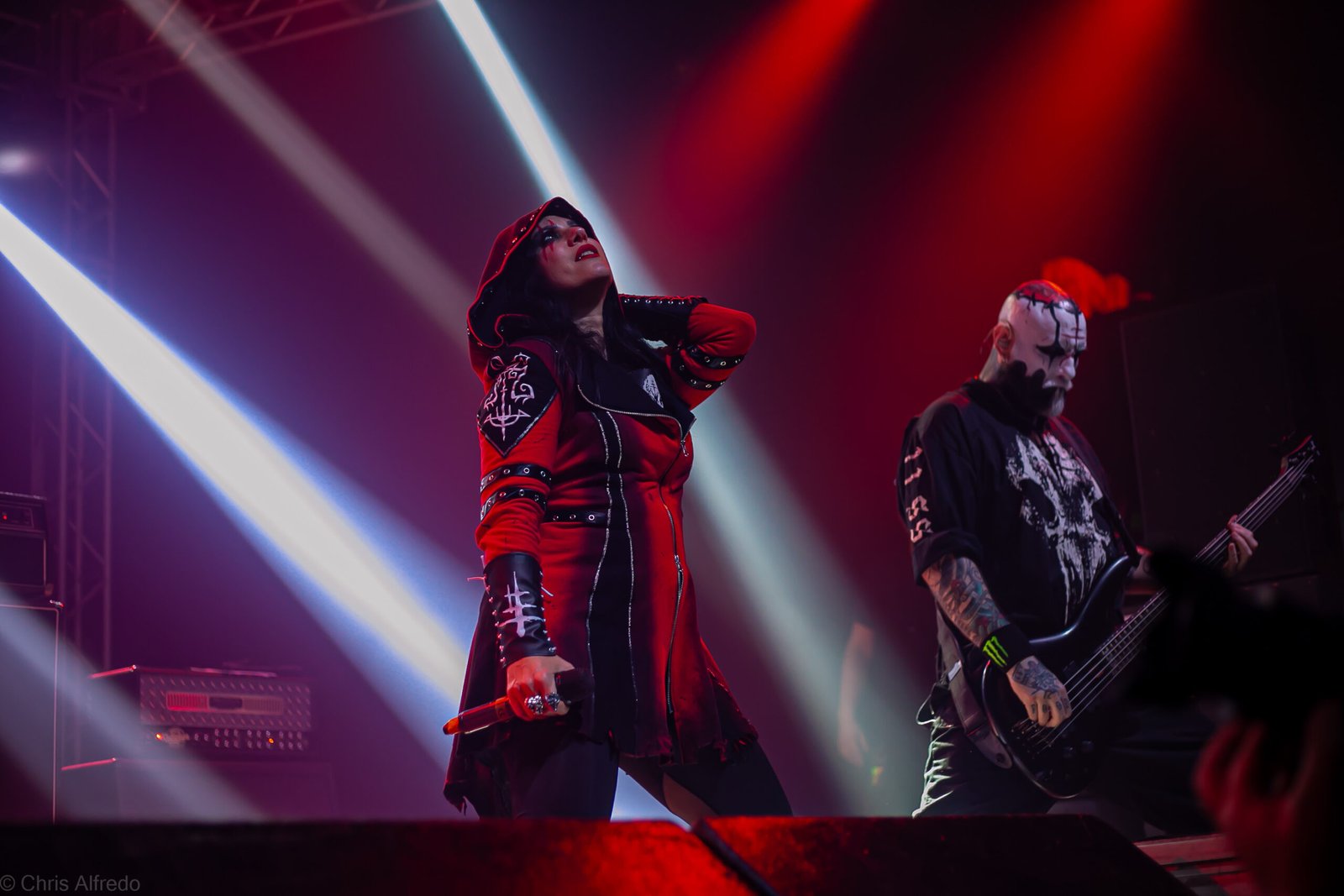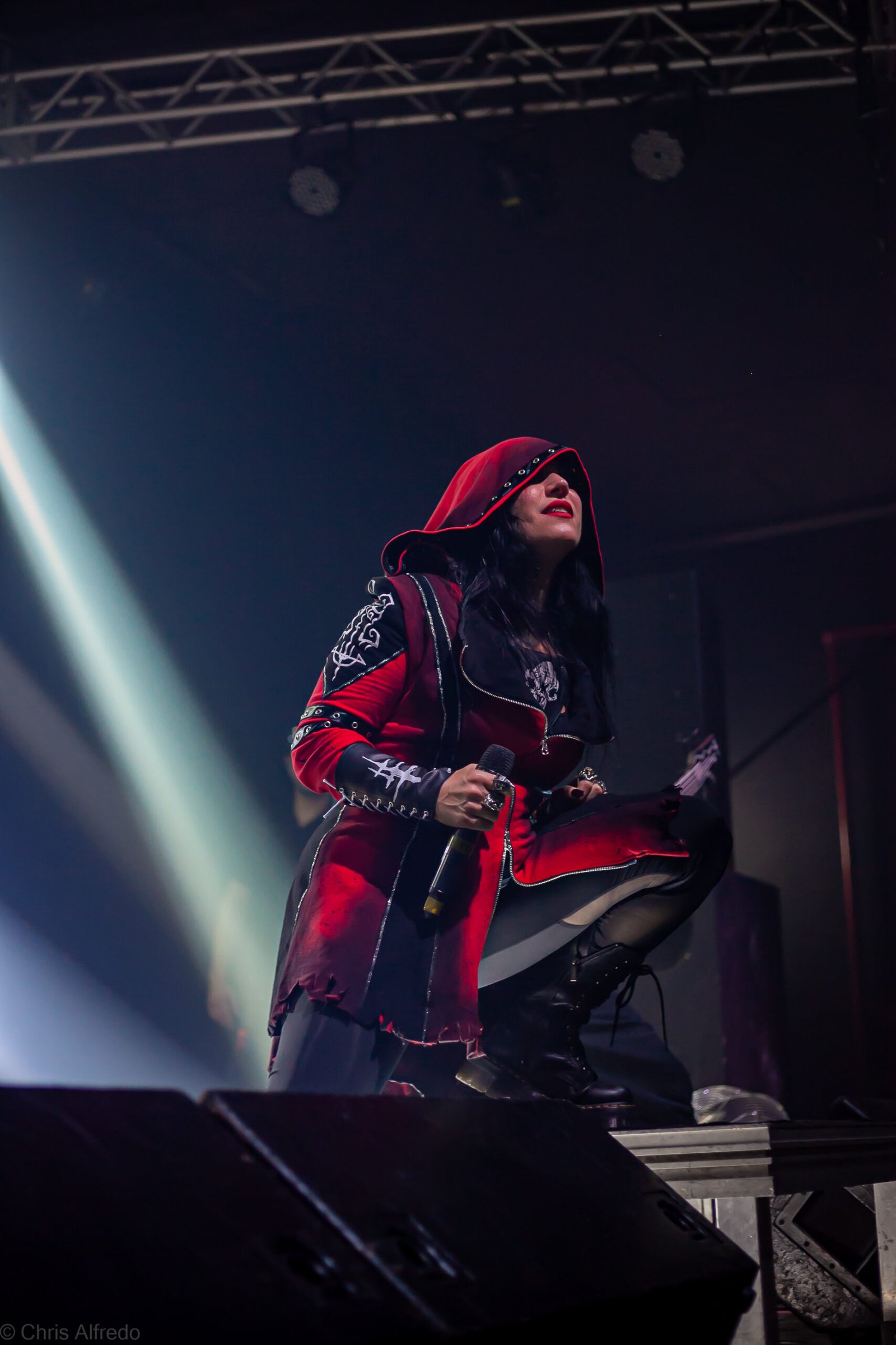 O acesso foi liberado próximo das 20h30, e a pista foi preenchida rapidamente. Quem ainda estava comendo teve que assistir ao show do fundo, pois não era possível se movimentar no meio da massa eufórica de fãs. Pouco tempo depois, a banda subiu ao palco sem nenhuma passagem de som mais elaborada, iniciando diretamente com a faixa Layers of Time, seguida de Reckless, ambas do álbum Black Anima de 2019 — ano da última passagem da banda pela cidade, que foi lembrada pela vocalista Cristina Scabbia, ansiosa para retornar desde então. Na sequência, veio um dos singles do último álbum de estúdio, Hosting the Shadows, que foi cantado do começo ao fim pelo público. A interação entre os vocalistas Cristina Scabbia e Andrea Ferro é hipnotizante; a presença de palco da banda é tamanha que, por vezes, me vi perdido sem saber quem fotografar primeiro.