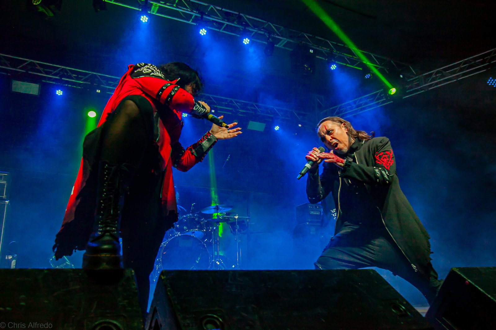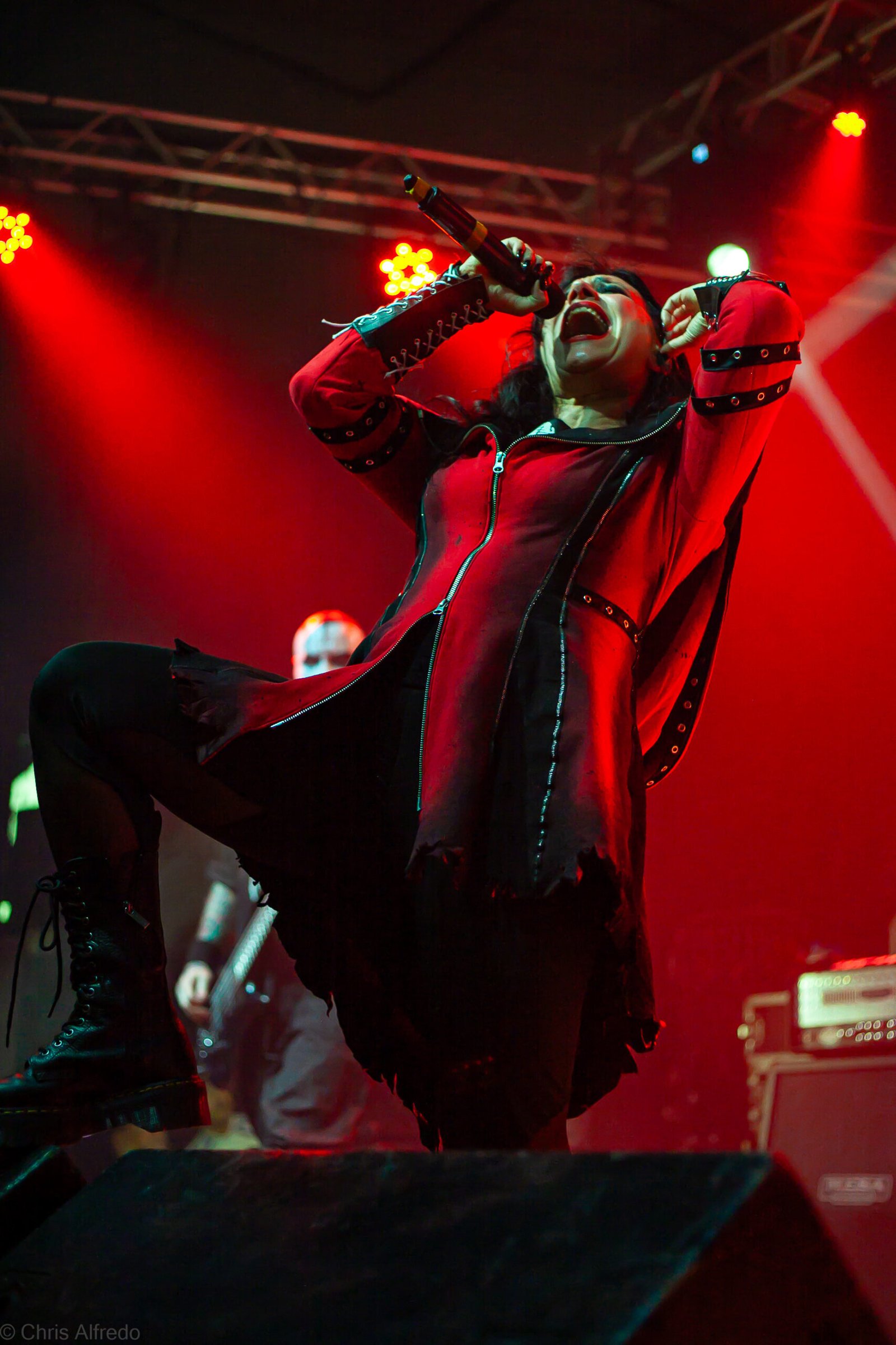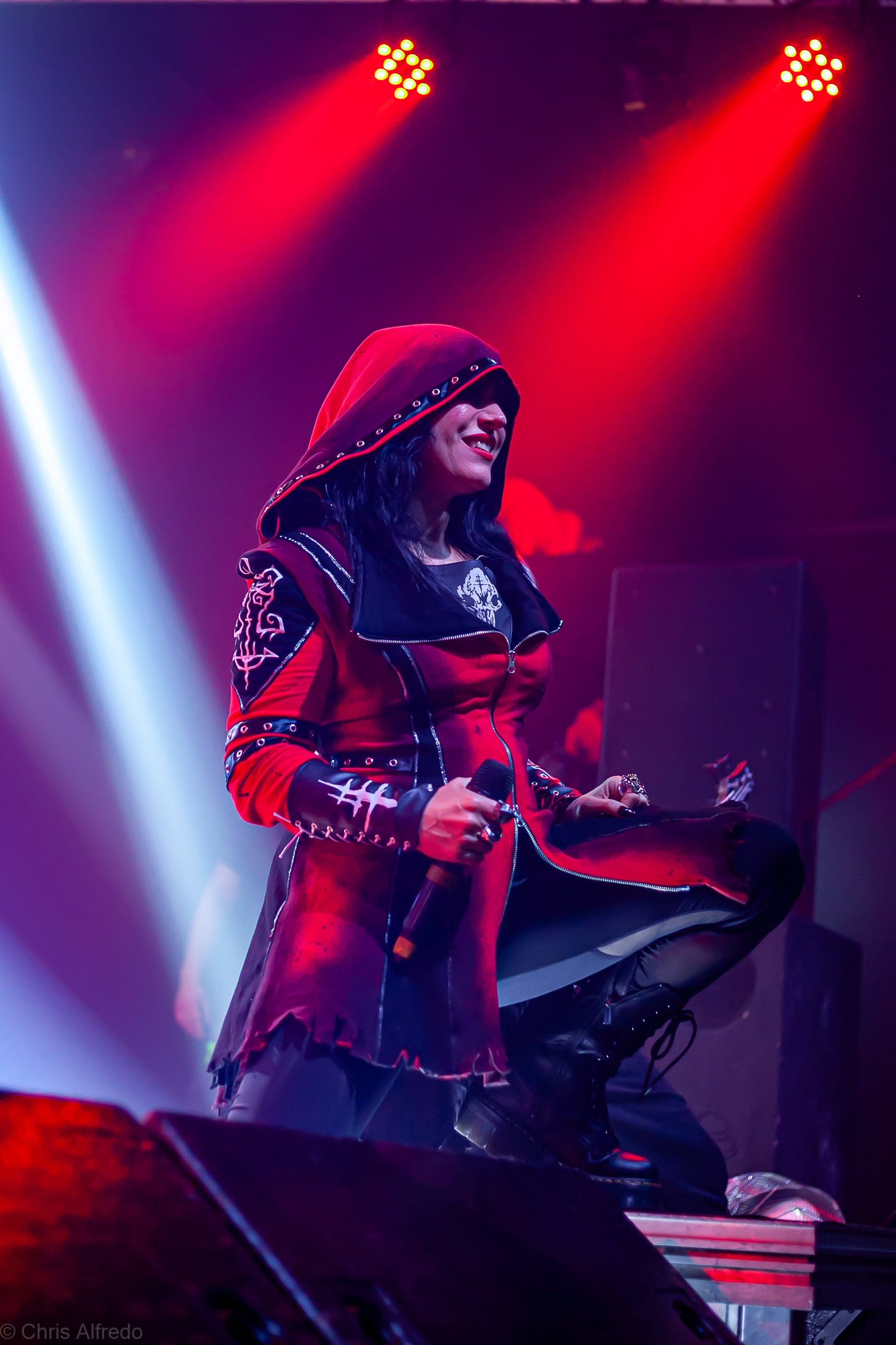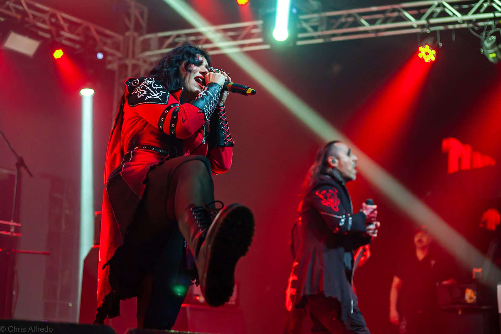 O acesso foi liberado próximo das 20h30, e a pista foi preenchida rapidamente. Quem ainda estava comendo teve que assistir ao show do fundo, pois não era possível se movimentar no meio da massa eufórica de fãs. Pouco tempo depois, a banda subiu ao palco sem nenhuma passagem de som mais elaborada, iniciando diretamente com a faixa Layers of Time, seguida de Reckless, ambas do álbum Black Anima de 2019 — ano da última passagem da banda pela cidade, que foi lembrada pela vocalista Cristina Scabbia, ansiosa para retornar desde então. Na sequência, veio um dos singles do último álbum de estúdio, Hosting the Shadows, que foi cantado do começo ao fim pelo público. A interação entre os vocalistas Cristina Scabbia e Andrea Ferro é hipnotizante; a presença de palco da banda é tamanha que, por vezes, me vi perdido sem saber quem fotografar primeiro.