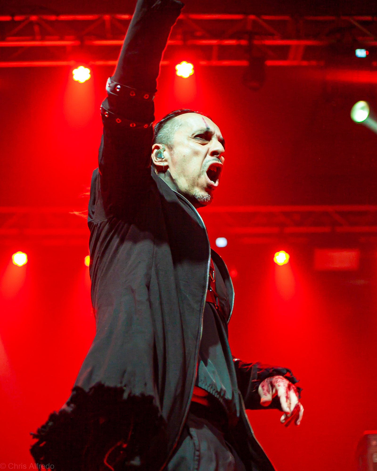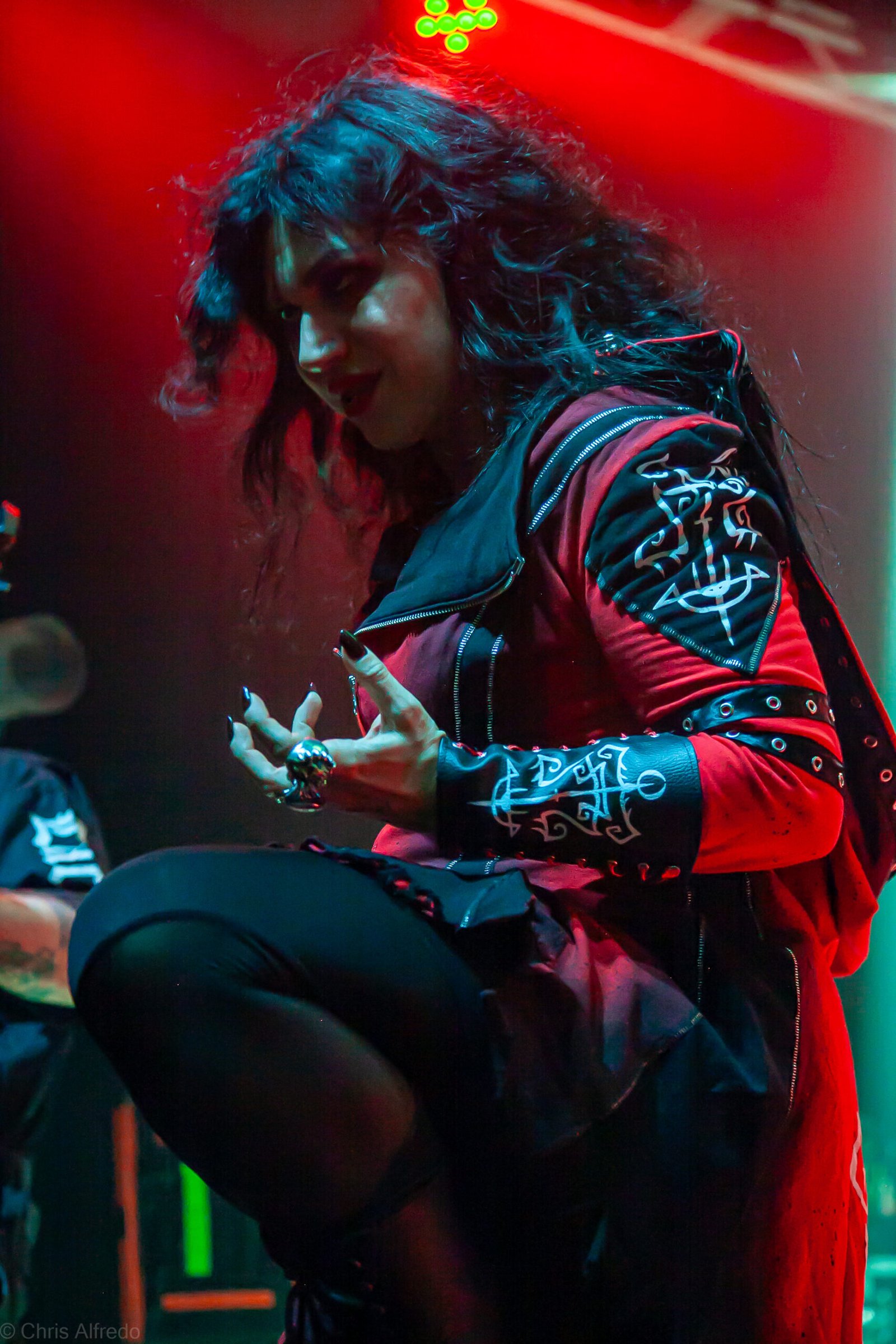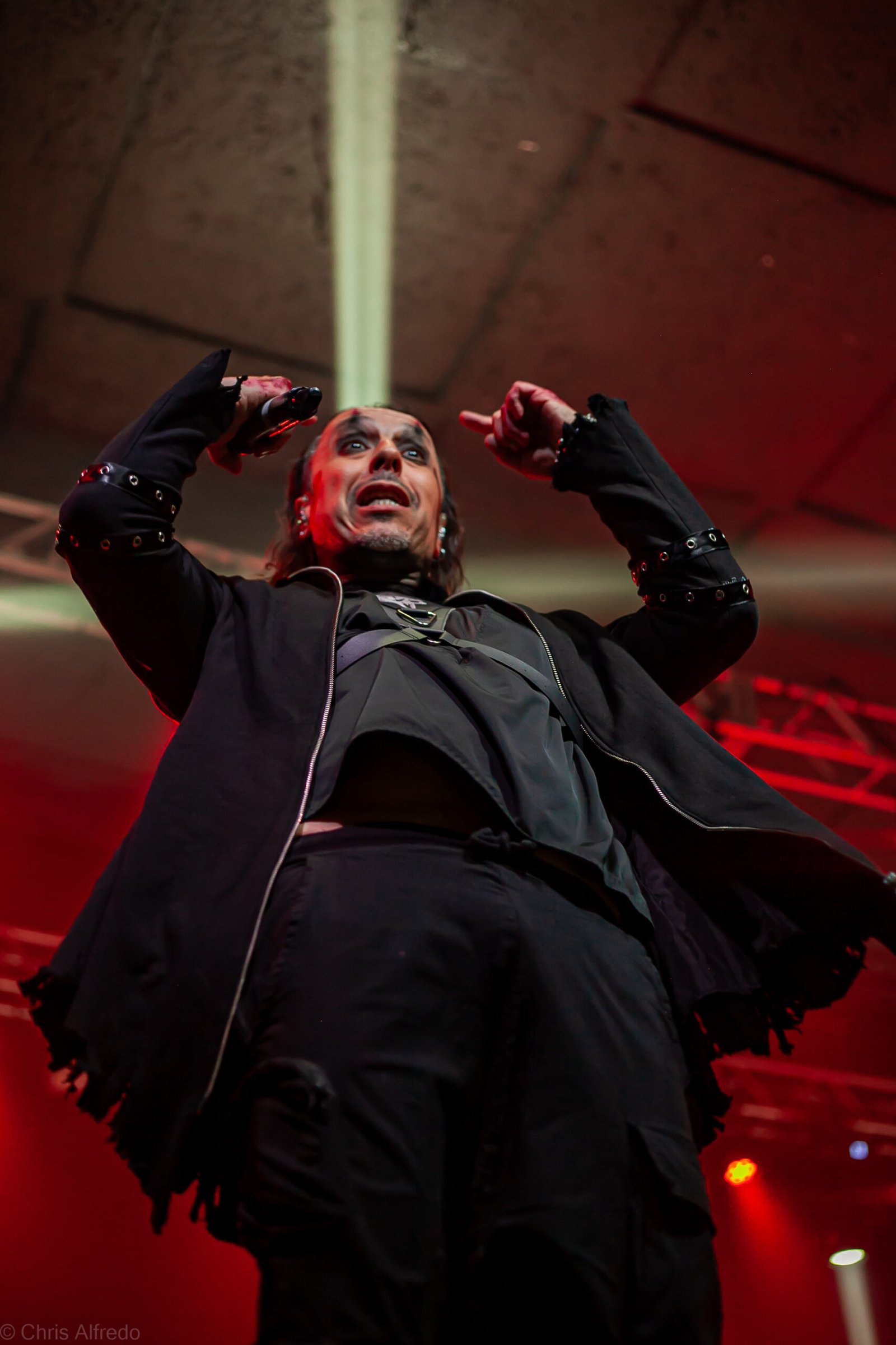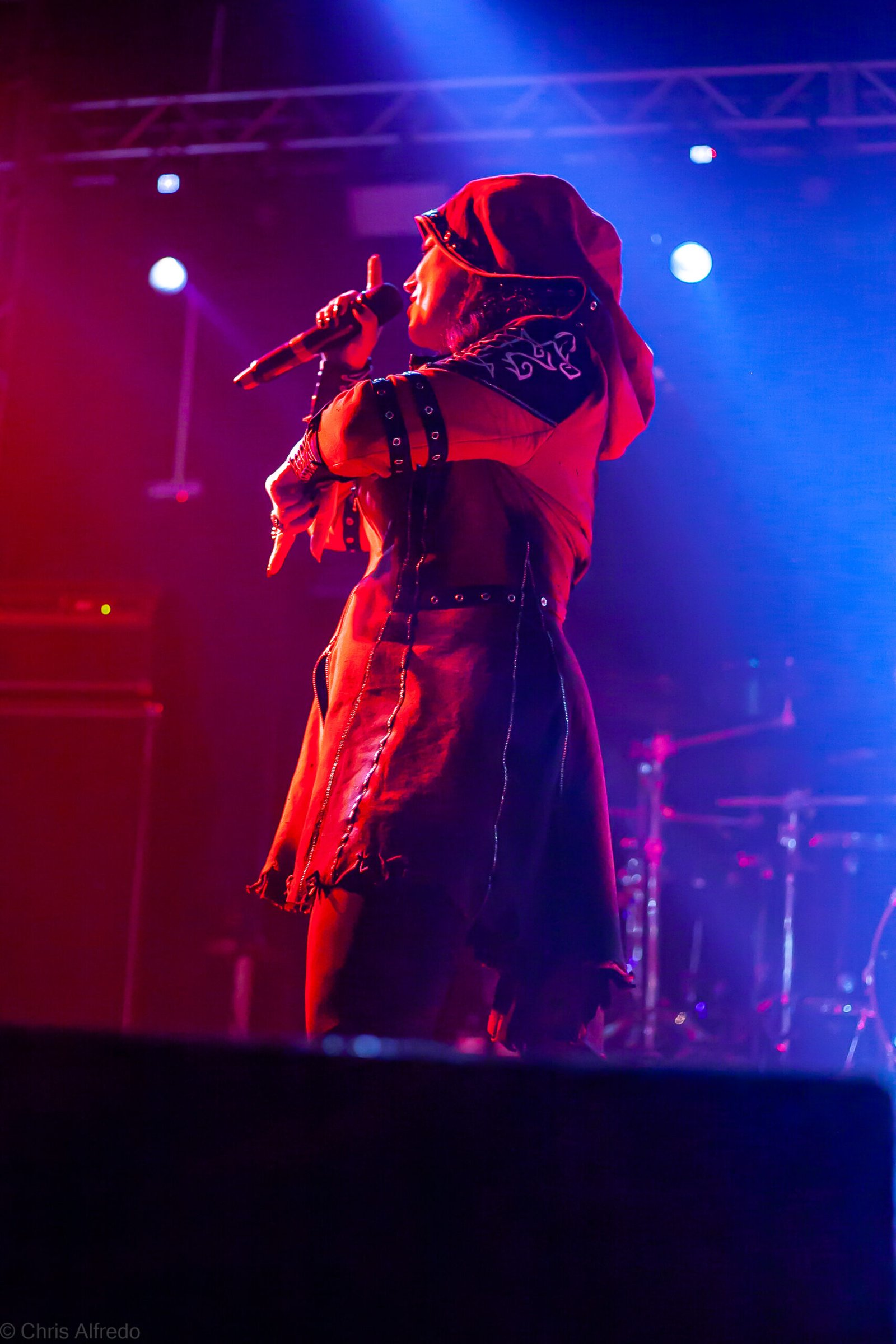 O acesso foi liberado próximo das 20h30, e a pista foi preenchida rapidamente. Quem ainda estava comendo teve que assistir ao show do fundo, pois não era possível se movimentar no meio da massa eufórica de fãs. Pouco tempo depois, a banda subiu ao palco sem nenhuma passagem de som mais elaborada, iniciando diretamente com a faixa Layers of Time, seguida de Reckless, ambas do álbum Black Anima de 2019 — ano da última passagem da banda pela cidade, que foi lembrada pela vocalista Cristina Scabbia, ansiosa para retornar desde então. Na sequência, veio um dos singles do último álbum de estúdio, Hosting the Shadows, que foi cantado do começo ao fim pelo público. A interação entre os vocalistas Cristina Scabbia e Andrea Ferro é hipnotizante; a presença de palco da banda é tamanha que, por vezes, me vi perdido sem saber quem fotografar primeiro.